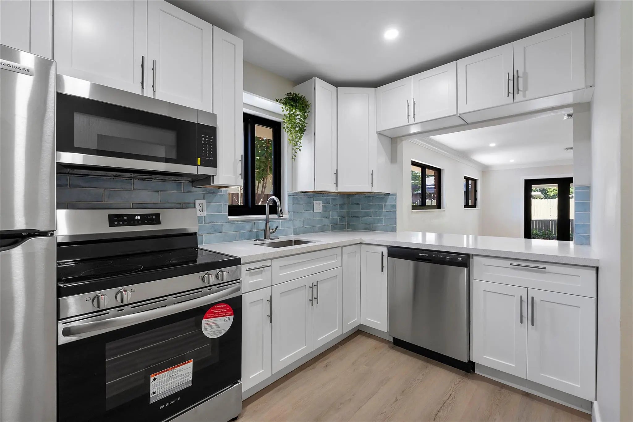 Rare opportunity for built-in flexibility in East Oakland Park. This fully renovated 3BD/3BA home features a unique layout with a private 500sqft front suite and a separate main residence behind it. The front suite has its own entrance & full bath, ideal for rental income (comps support ~$1300-$1500/mo), home office/studio, multigenerational living, or private guest space. Main home offers a 2BD/2BA layout & new kitchen with quartz counters, shaker cabinets, & SS appliances. Upgrades include a brand new roof & impact windows/doors (2025), newer AC & WH new flooring, walk-in closets, & ample storage. Exterior updates include fresh landscaping, paint, & fencing. Centrally located near parks, pickleball and tennis courts, and minutes to Downtown Oakland Park, Wilton Manors, & Fort Lauderdale.