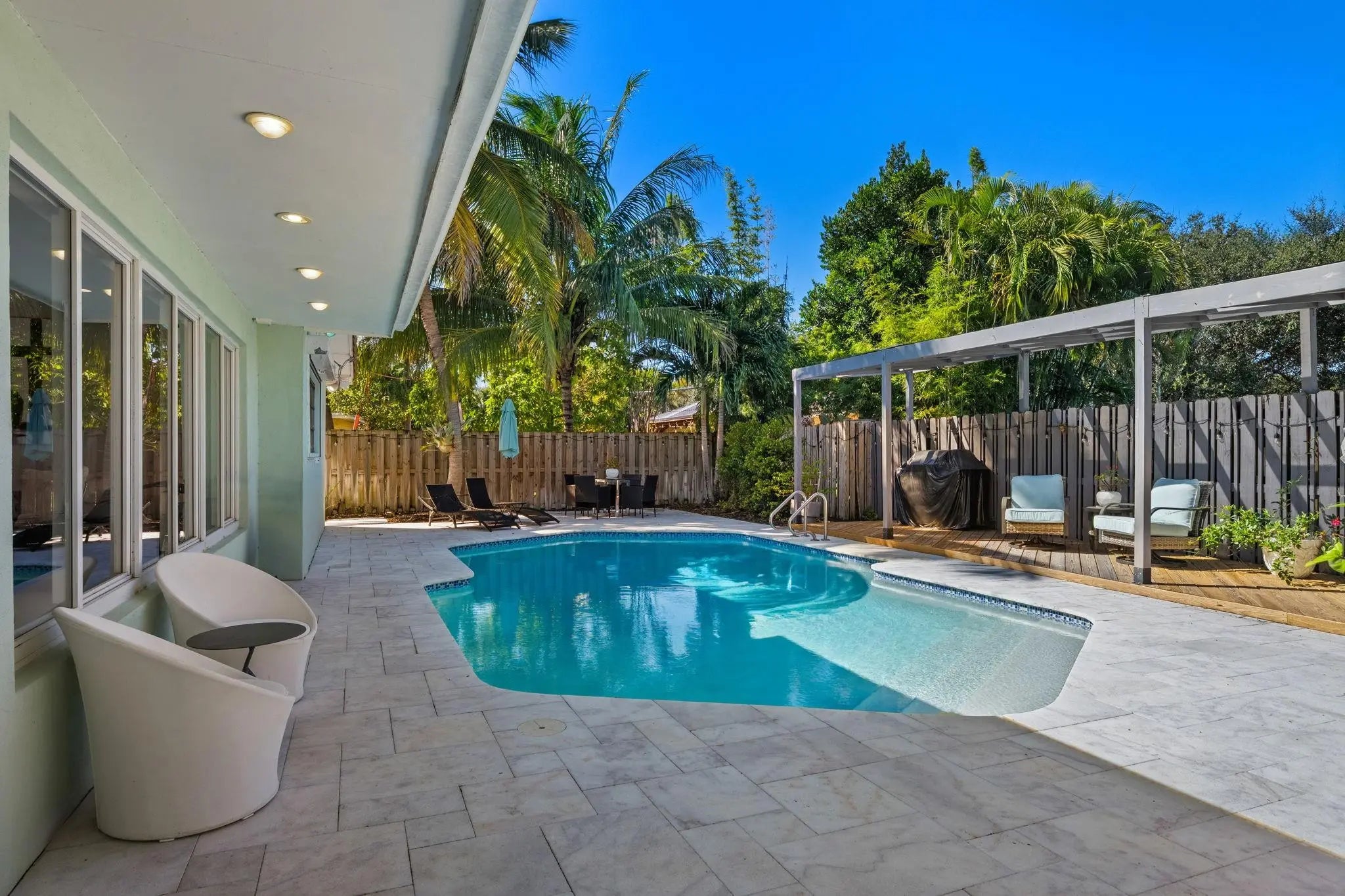 Beautiful 3-bed, 2-bath home in a highly desirable Hollywood neighborhood. Enjoy a private, fenced backyard oasis with a pool, deck, hot tub, and a new covered patio—ideal for relaxing or entertaining. Inside, a bright open layout flows to a modern kitchen with stainless steel appliances, while elegant marble tile floors run throughout. The spacious primary suite features dual sinks, stylish vanities, and a custom walk-in shower. Additional perks include a two-car garage and ample storage. Perfect for end-users or investors. Stellar location blocks from shops and dining on Hollywood Blvd and minutes to I-95. A rare find—schedule your showing today.