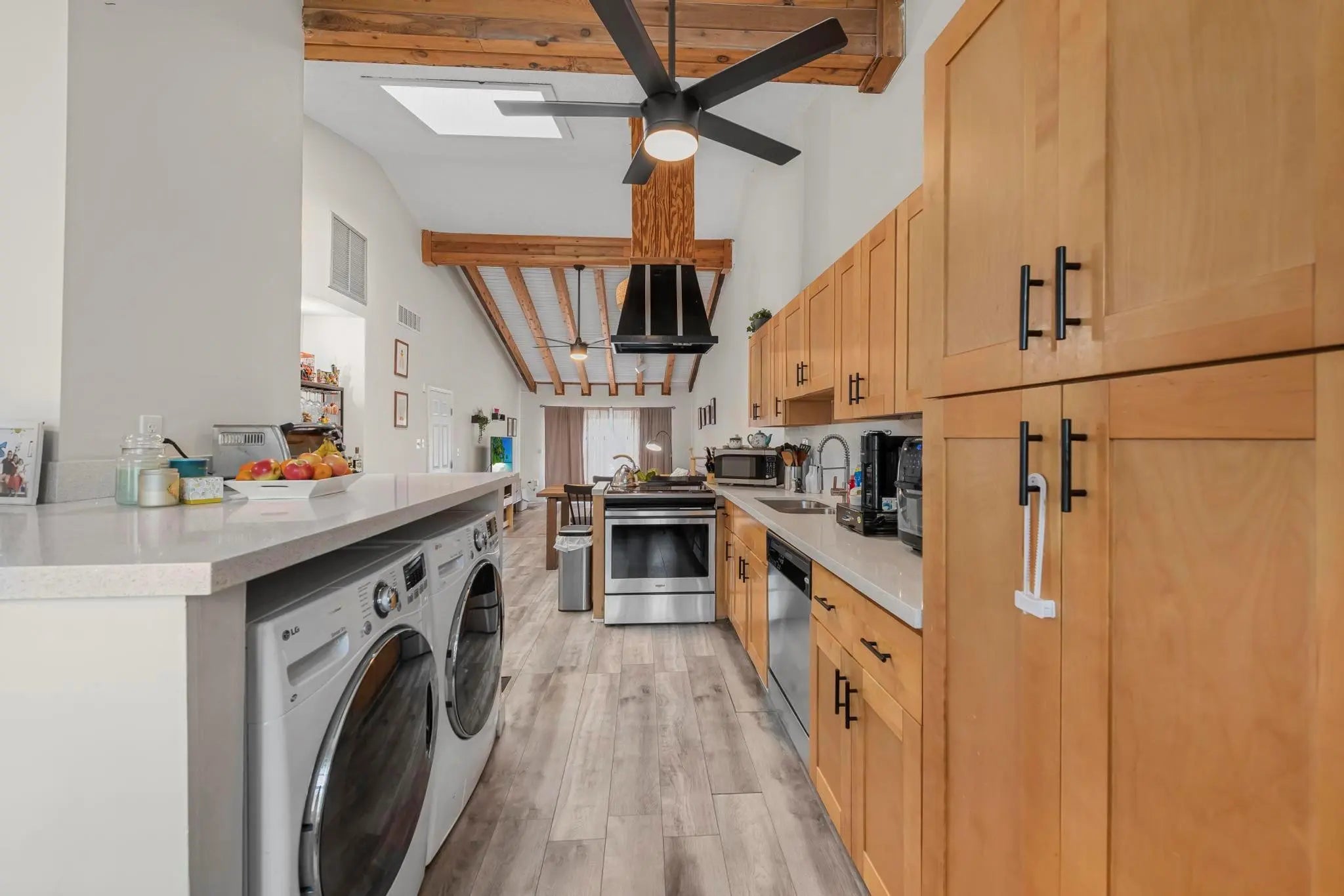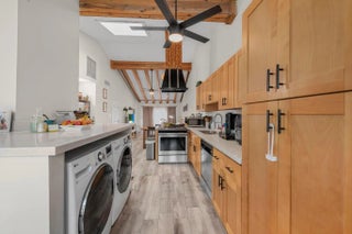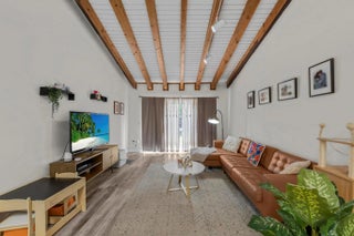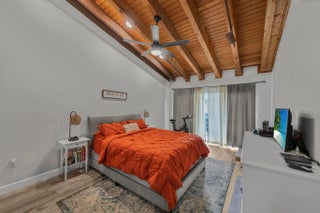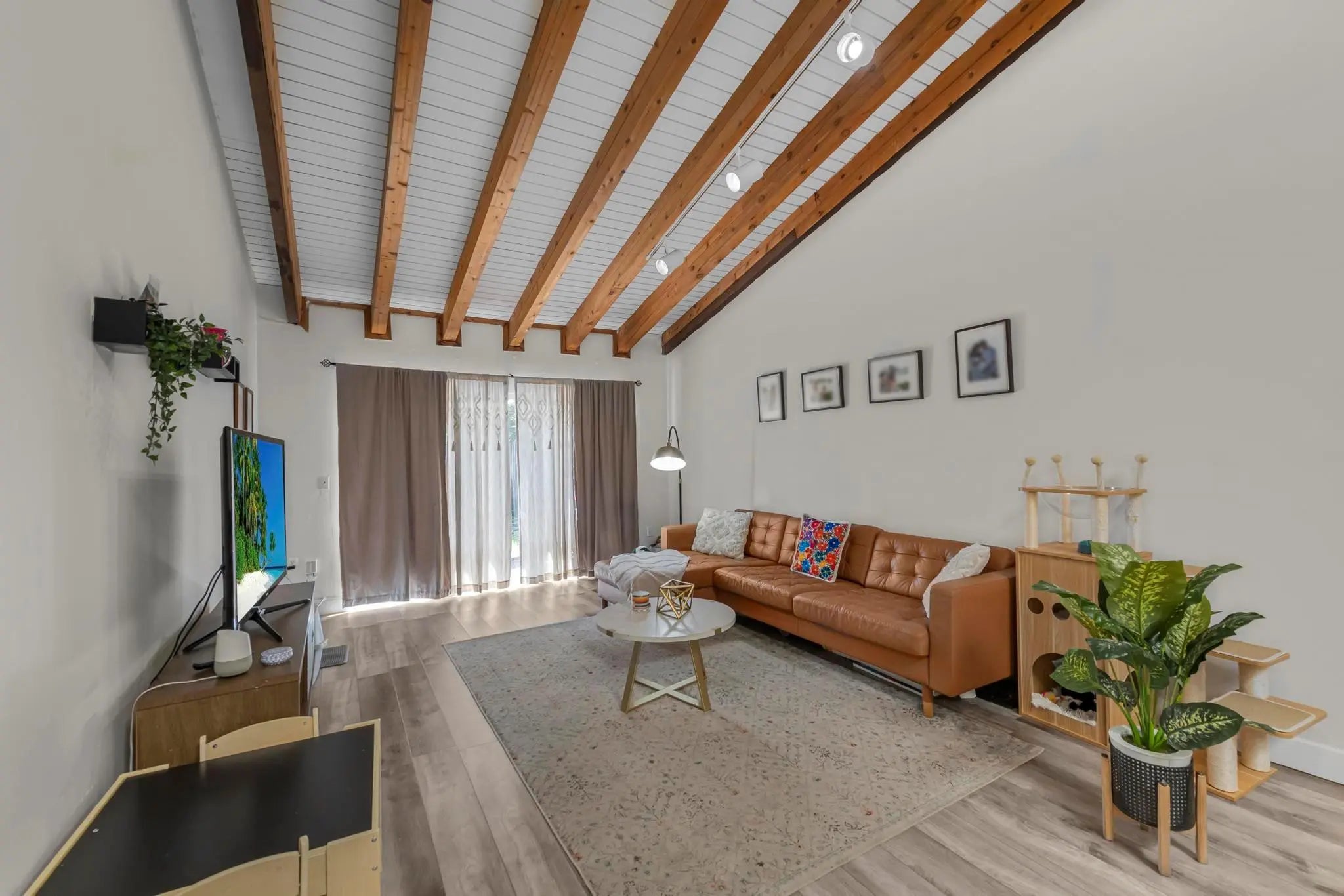 Beautiful 2-Bedroom, 2-Bath Villa on the Canal. Spacious and upgraded villa featuring oversized rooms and soaring cedar wood plank ceilings with exposed beams. Enjoy beautiful modern flooring throughout, 2 huge walk-in closets, and two convenient parking spaces. The home also boasts a good-sized backyard perfect for relaxing or entertaining, with peaceful canal views. Located in a quiet community with a low HOA — this home offers comfort, charm, and value in one perfect package.