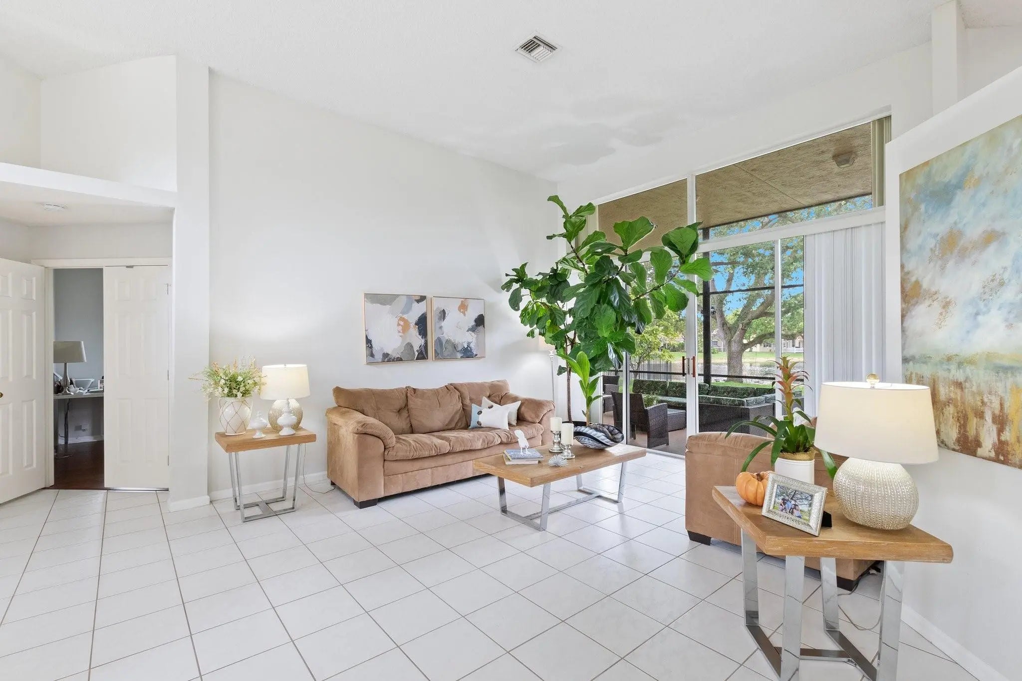 Fabulous Location!! Lakefront, Cul-de-sac 4 Bedroom/2.5 Bath home in "Orchid Island"! Updated kitchen features wood cabinets, granite counters, stainless steel appliances and separate breakfast area. Split floor plan, large open living spaces, formal living/dining rooms, neutral tile/laminate and no carpet. Huge covered screen patio overlooking the peaceful lake. Front loading washer/dryer, laundry tub with utility stand and a 2 car garage. Full hurricane protection with accordion shutters and a long driveway. Gated community with tennis/pickle ball court, basketball court and tot lot. Close to schools, shopping and restaurants. Rent includes lawncare.