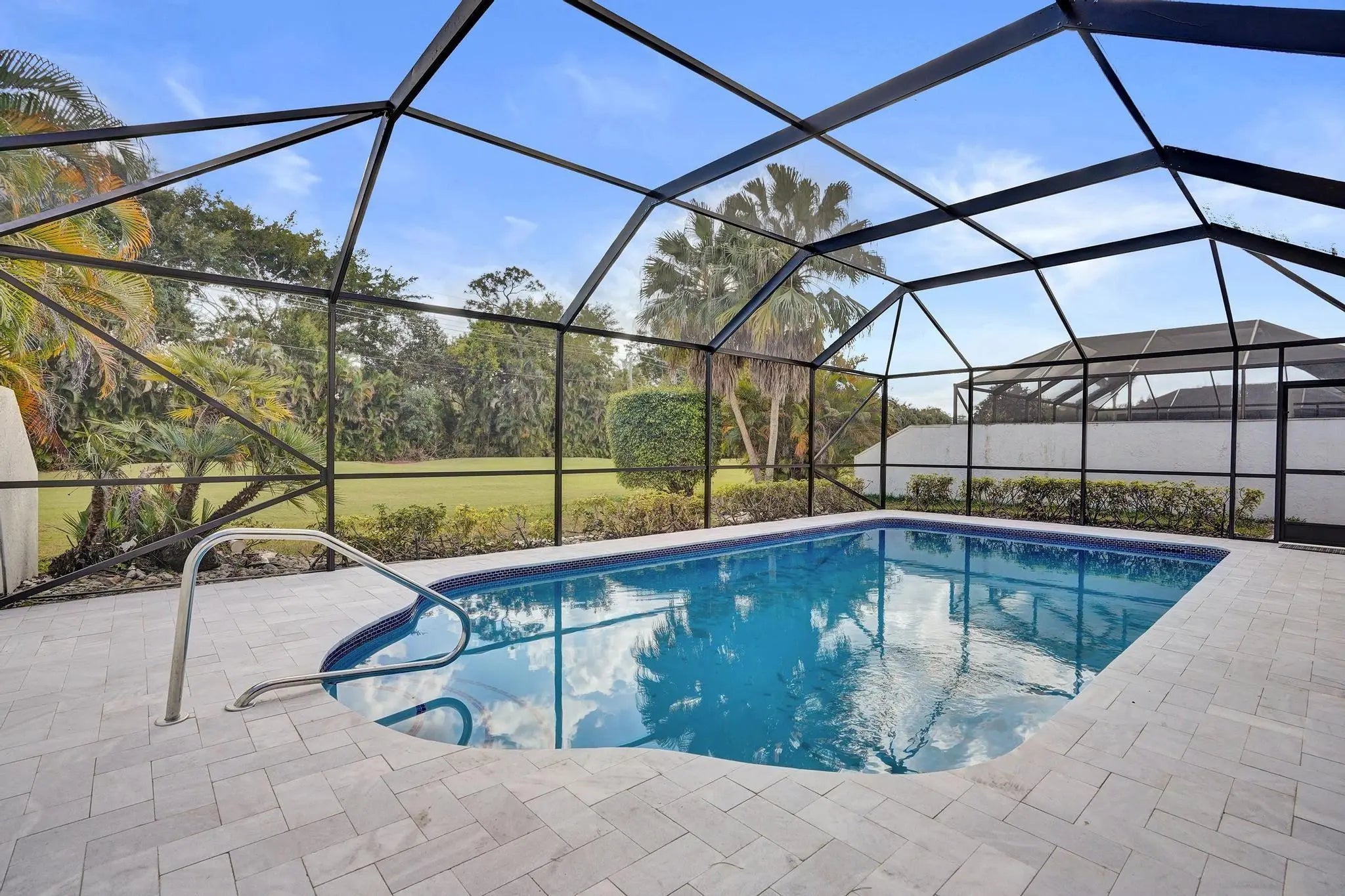 Exceptional 3 bedroom, 3 full bath residence is a private retreat offering the perfect balance of luxury, space, with modern convenience and design. Step into a newly designed open-concept floor plan filled with natural light and neutral tones. The kitchen impresses with beautiful quartz countertops, smart appliances, and a large center island. The home showcases elegant custom cabinetry throughout, a hidden pantry, new impact windows/doors, a resurfaced pool, travertine patio, new screen enclosure overlooking the golf course and solar panels. Residents enjoy two 18-hole championship golf courses, pickleball, tennis, fitness center, spa, game room, fine dining, etc. Mandatory club membership applies: $120,000 initiation fee plus annual dues (increasing to $150,000 on 03/01/2026).