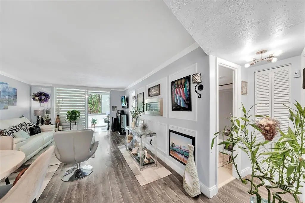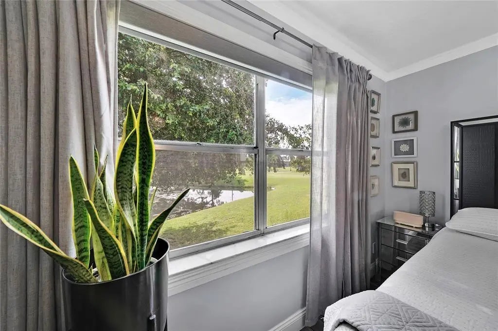 WOW look no further! Beautiful corner unit featuring a serene water view and a fully enclosed patio with impact windows, perfect for relaxing year-round. This home offers a remodeled kitchen and bathrooms, stainless steel appliances, and newer flooring throughout. Enjoy modern touches including no popcorn ceilings and custom blinds that provide exceptional privacy. Truly move-in ready and meticulously maintained.(partially furnished) WOW look no further! Beautiful corner unit featuring a serene water view and a fully enclosed patio with impact windows, perfect for relaxing year-round. This home offers a remodeled kitchen and bathrooms, stainless steel appliances, and newer flooring throughout. Enjoy modern touches including no popcorn ceilings and custom blinds that provide exceptional privacy. Truly move-in ready and meticulously maintained.(partially furnished)
