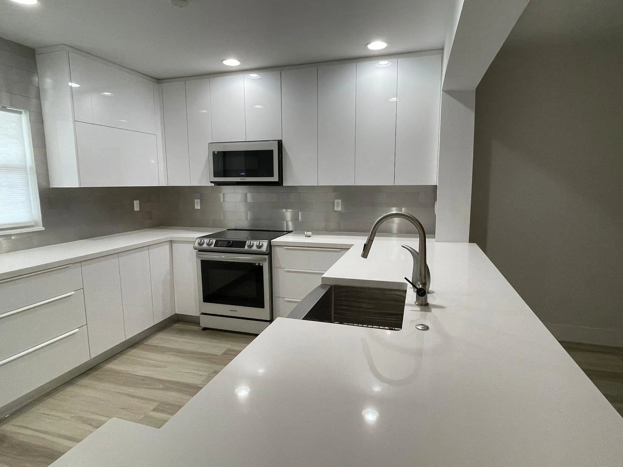 2/2 fully remodeled spacious condo in a 55 + community. This unit comes with a2 years old remodeled open floor plan kitchen with white contemporary style cabinets, quartz countertop, SS appliances 7 brand newer Bespoke refrigerator with French doors, new wood like anti scratch vinyl floor through the entire unit, new best lookin vanities in both bathrooms, new tile in shower and refinished bathtub, great views to the gardens and pool area from the large screen in balcony, impact windows and door. Roller Shutters in the balcony, freshly painted inside. Community pool and spa, clubhouse, kitchen facility & shuffleboard amenities along with assigned parking & plenty of guest parking. Great location on East Boca Raton, close to Mizner Park, shopping, restaurants, beaches, downtown and more !!