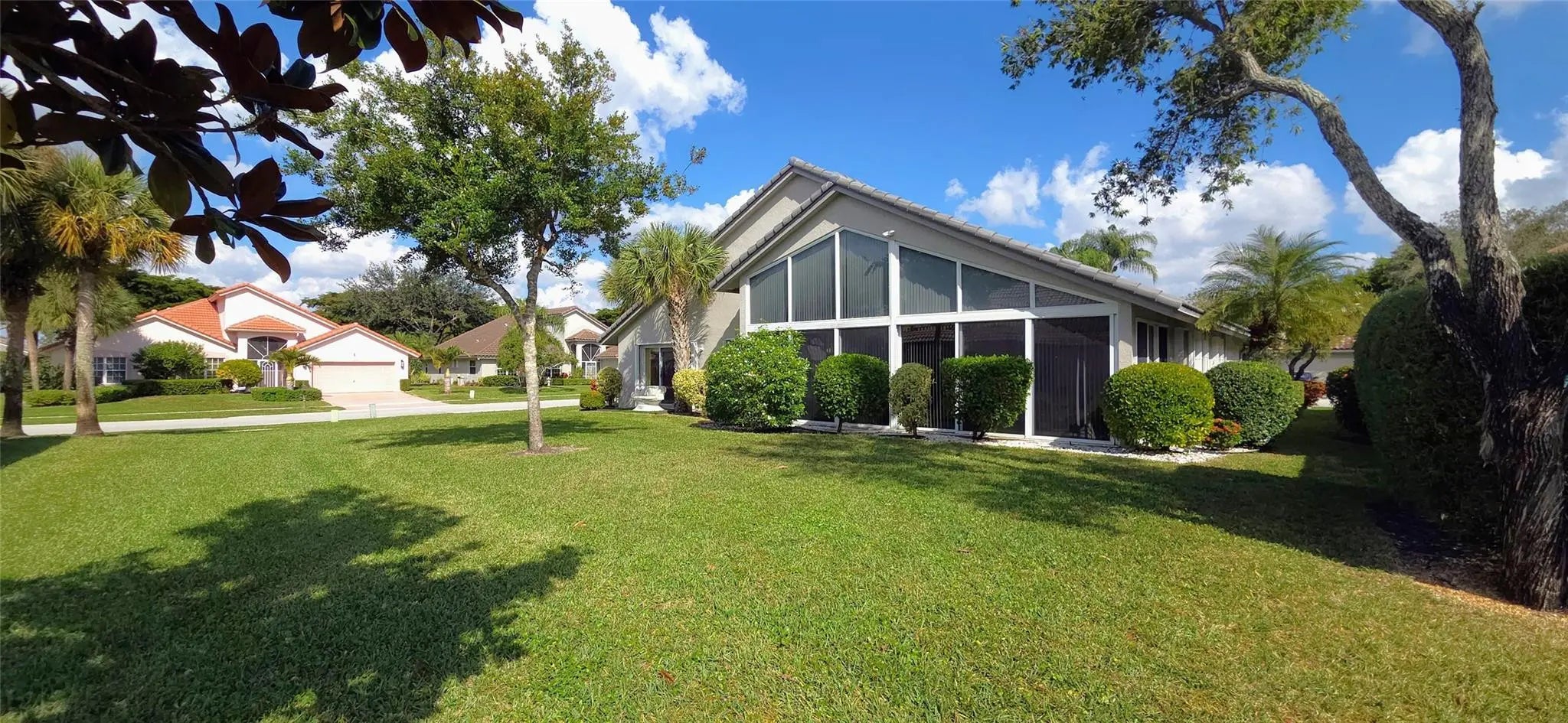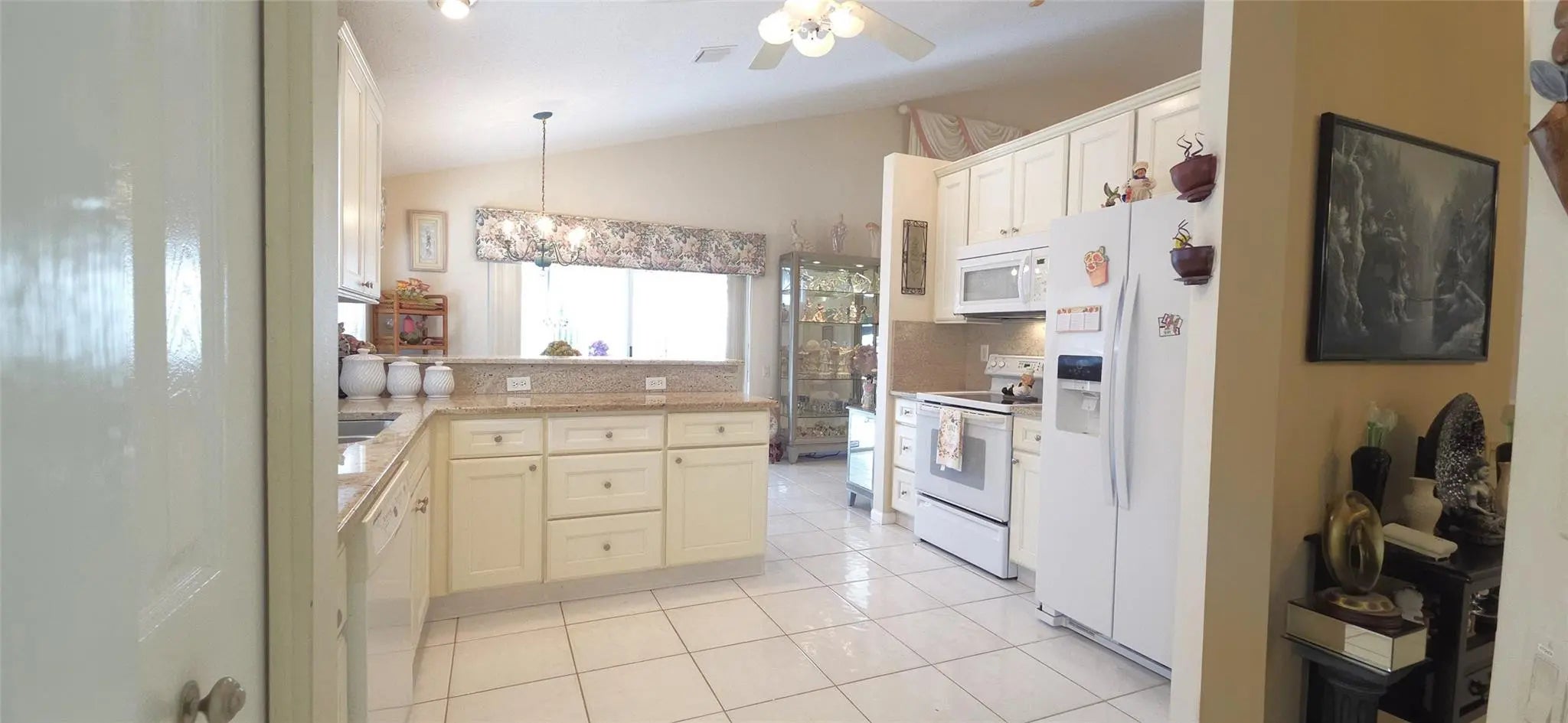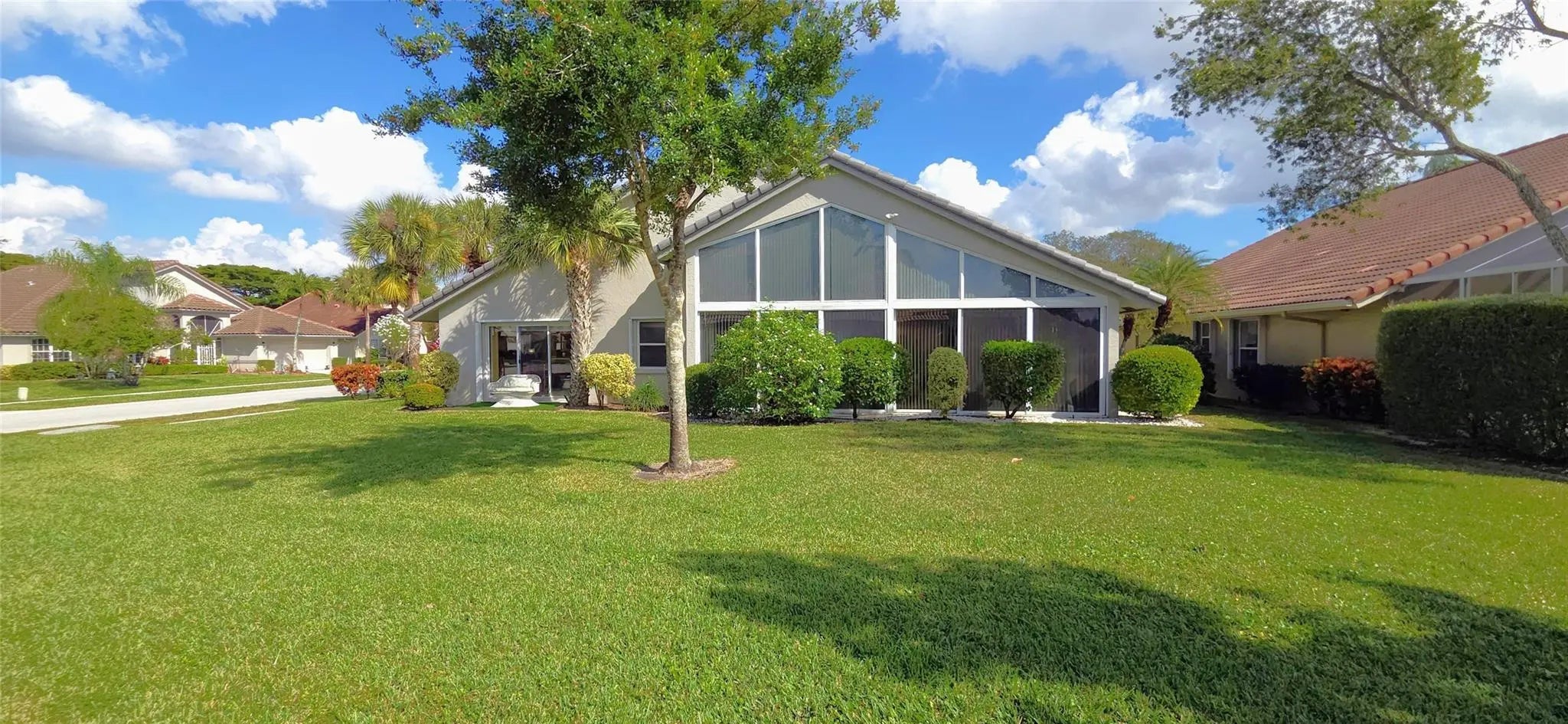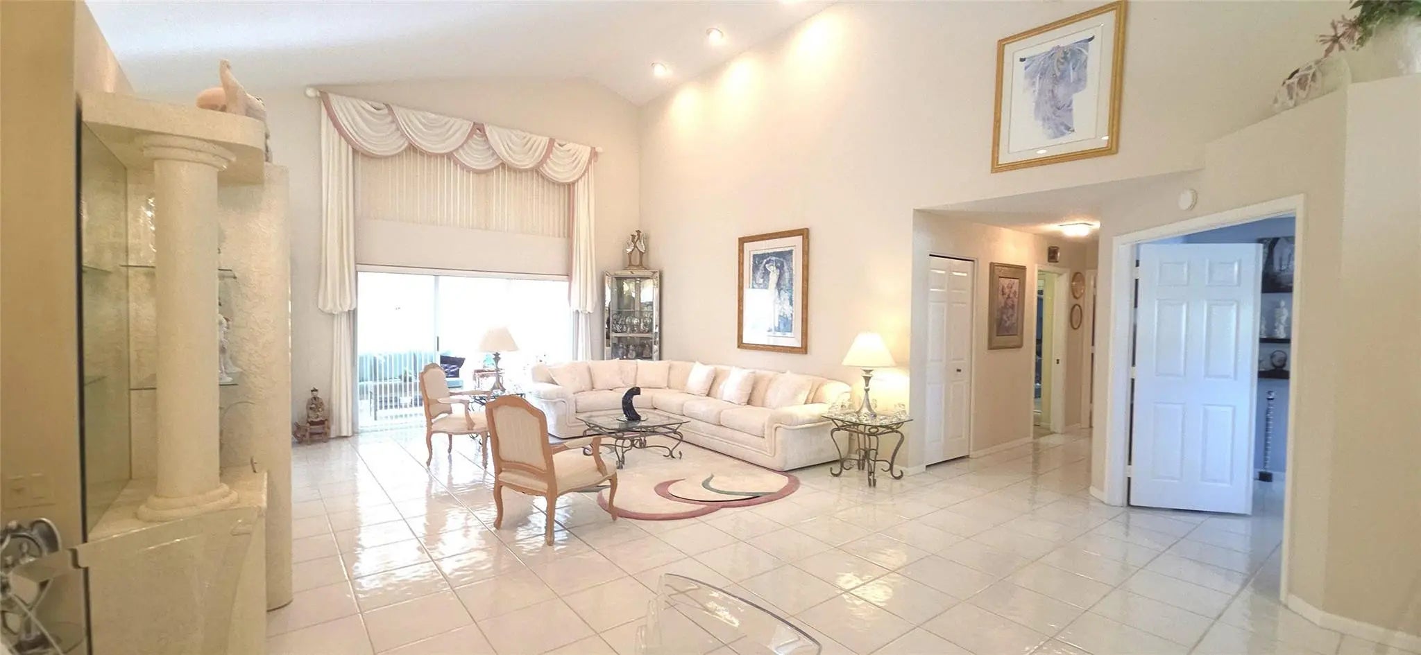 PRICE IMPROVEMENT!! WOW elegant home where comfort meets style in every detail. New Roof completed in the last 2 years. Soaring vaulted ceilings create an open, airy ambiance throughout the main living spaces. The beautifully updated kitchen features modern finishes, sleek countertops, & plenty of storage; perfect for everyday living or entertaining. Your spacious glass-enclosed Florida room offers the ideal bonus space to relax, work, or gather year-round. From here, enjoy a stolen lake view that adds a touch of tranquility & charm to the home’s atmosphere. 24/7 Security w/ resort-style amenities and activities; including a stunning pool area, tennis pickleball, clubhouse w/ a ballroom for events & shows, catering kitchen, card room, billiard room, fitness room and arts and crafts.