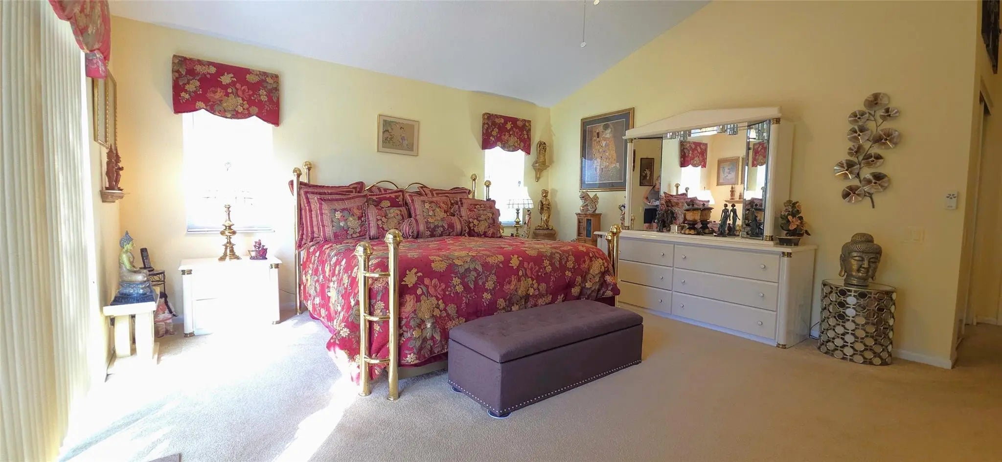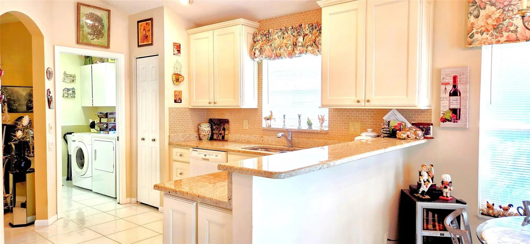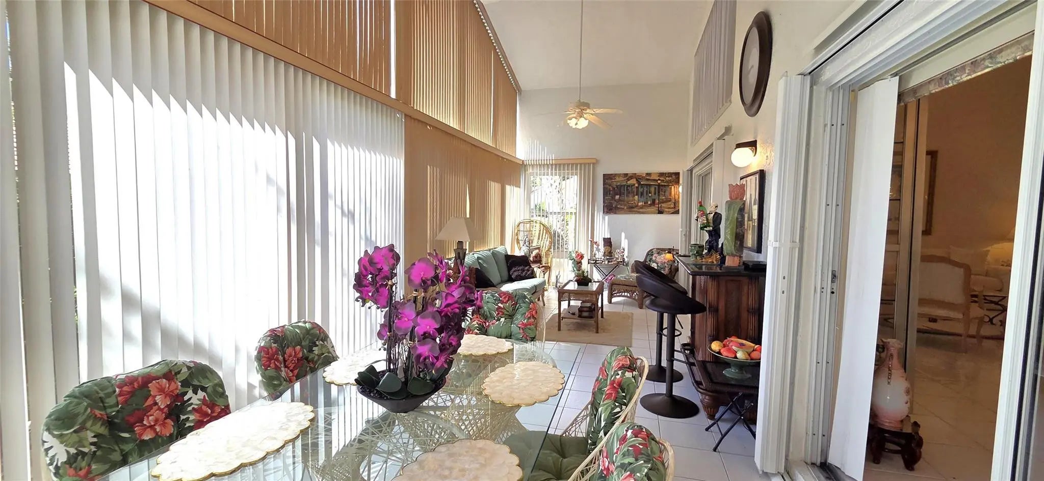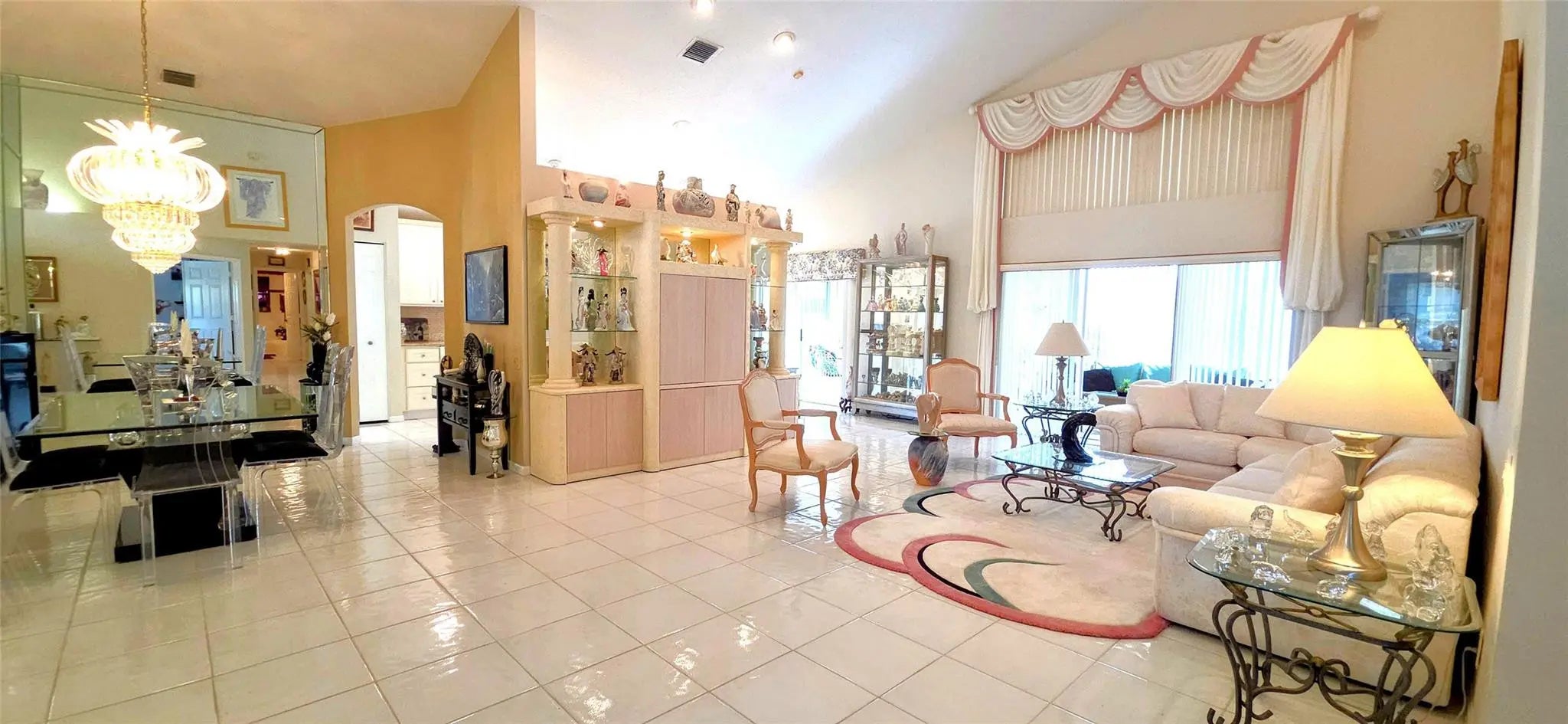 PRICE IMPROVEMENT!! WOW elegant home where comfort meets style in every detail. New Roof completed in the last 2 years. Soaring vaulted ceilings create an open, airy ambiance throughout the main living spaces. The beautifully updated kitchen features modern finishes, sleek countertops, & plenty of storage; perfect for everyday living or entertaining. Your spacious glass-enclosed Florida room offers the ideal bonus space to relax, work, or gather year-round. From here, enjoy a stolen lake view that adds a touch of tranquility & charm to the home’s atmosphere. 24/7 Security w/ resort-style amenities and activities; including a stunning pool area, tennis pickleball, clubhouse w/ a ballroom for events & shows, catering kitchen, card room, billiard room, fitness room and arts and crafts.
