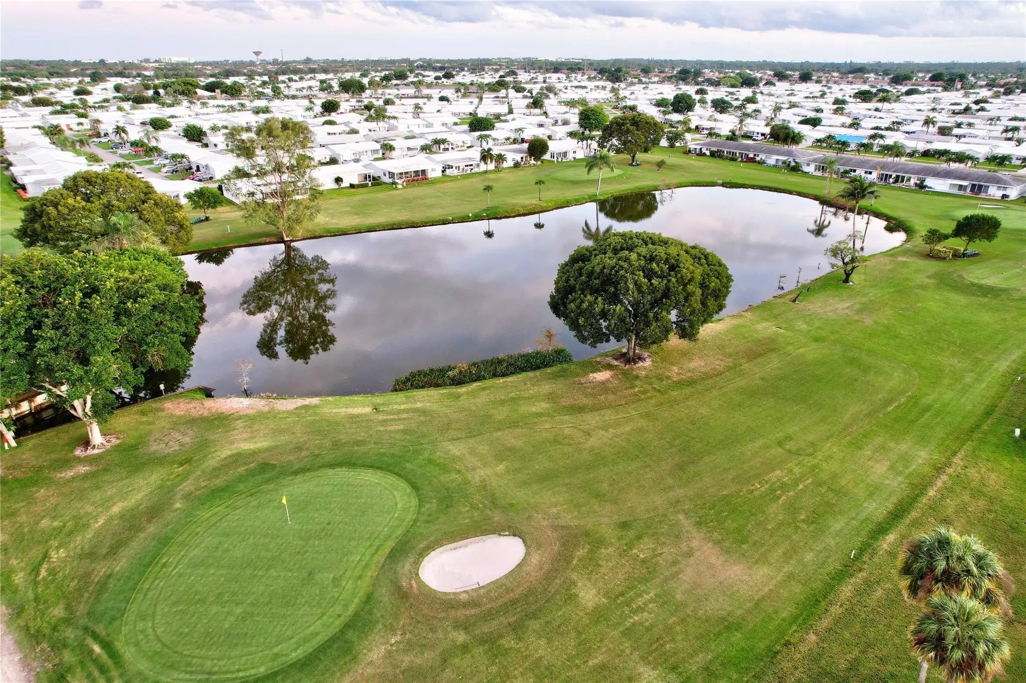 Perfectly situated to provide exceptional golf course and lake views from both the front and back, this inviting 2-bedroom, 2-bath first-floor villa captures the charm of Palm Beach Leisureville living. Overlooking the lush greens of the community’s Par-3 course, this home is ready for your personal touch and offers endless potential to make it your own.Enjoy serene, panoramic views from your patios where the beauty of the golf course and shimmering lake serve as your daily backdrop.Indulge in the amenities this vibrant 55+ community offers: three clubhouses/pools, a fitness center, and a wide variety of activities for every interest. Located just minutes from I-95 and major shopping, this home delivers the ideal blend of recreation, relaxation, and convenience. Small-pet friendly!