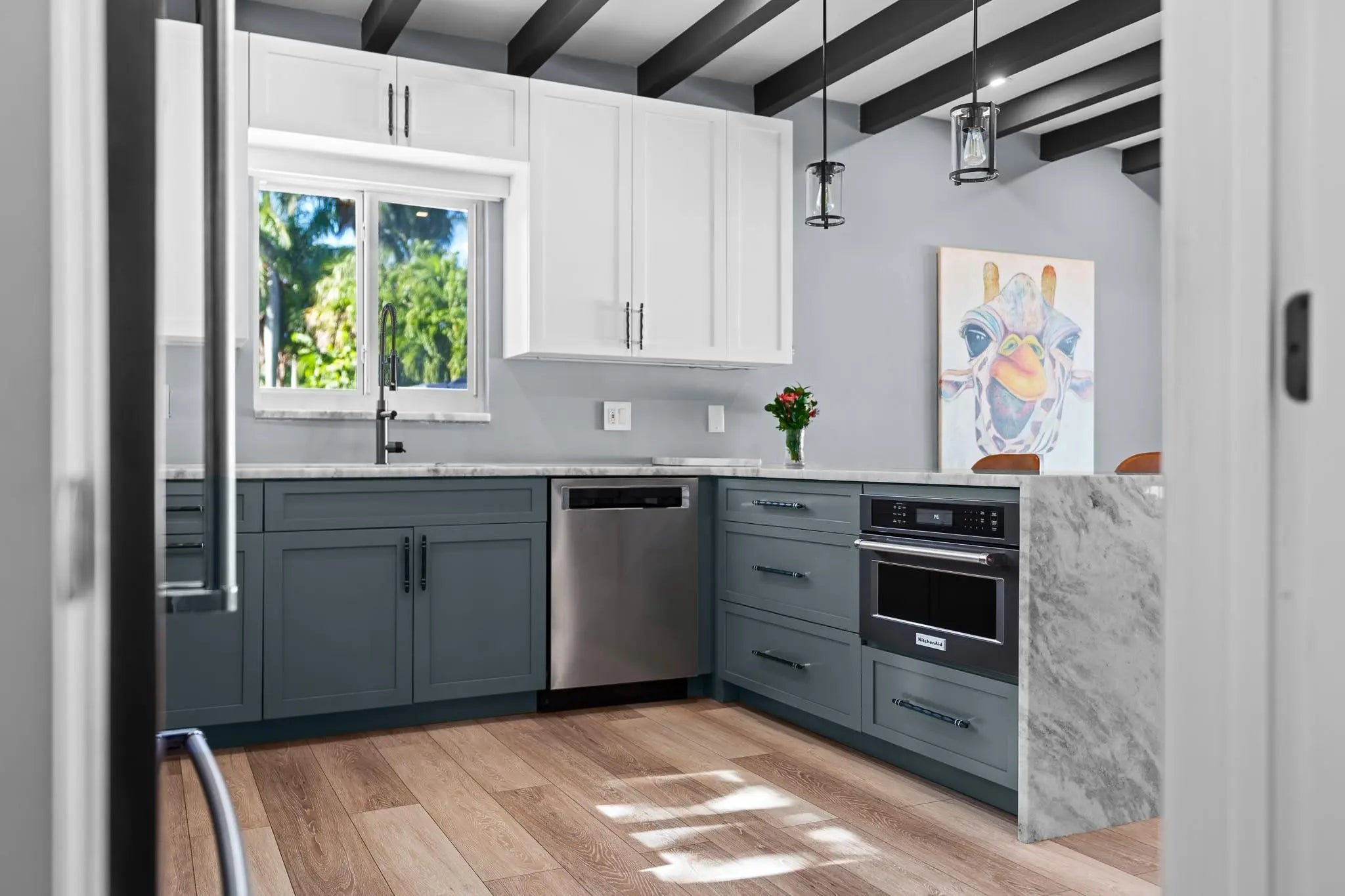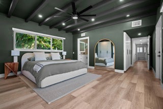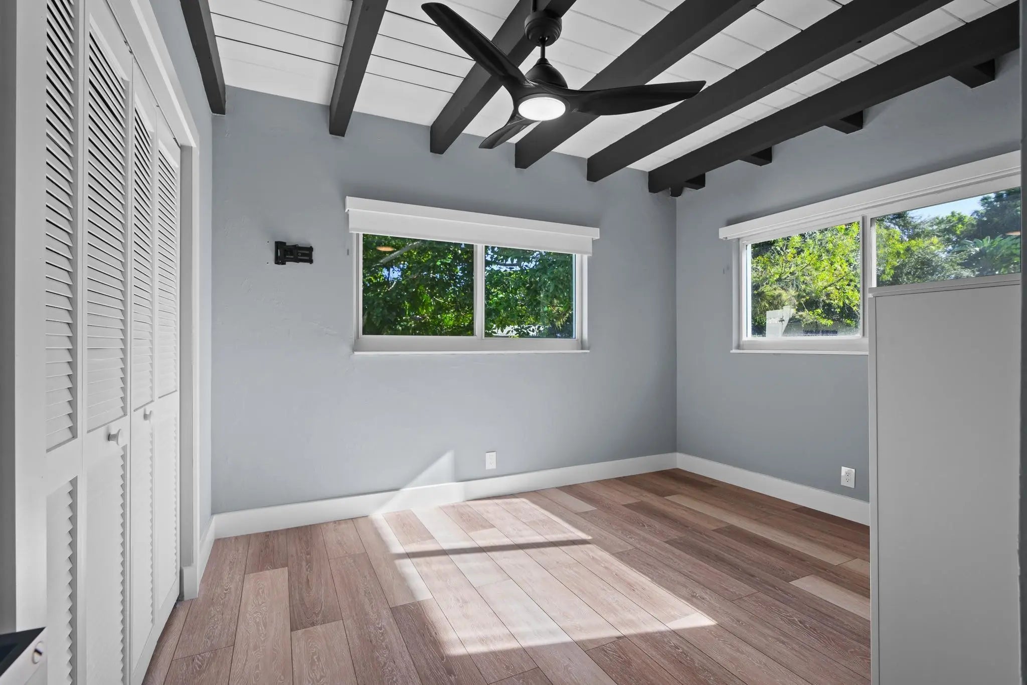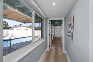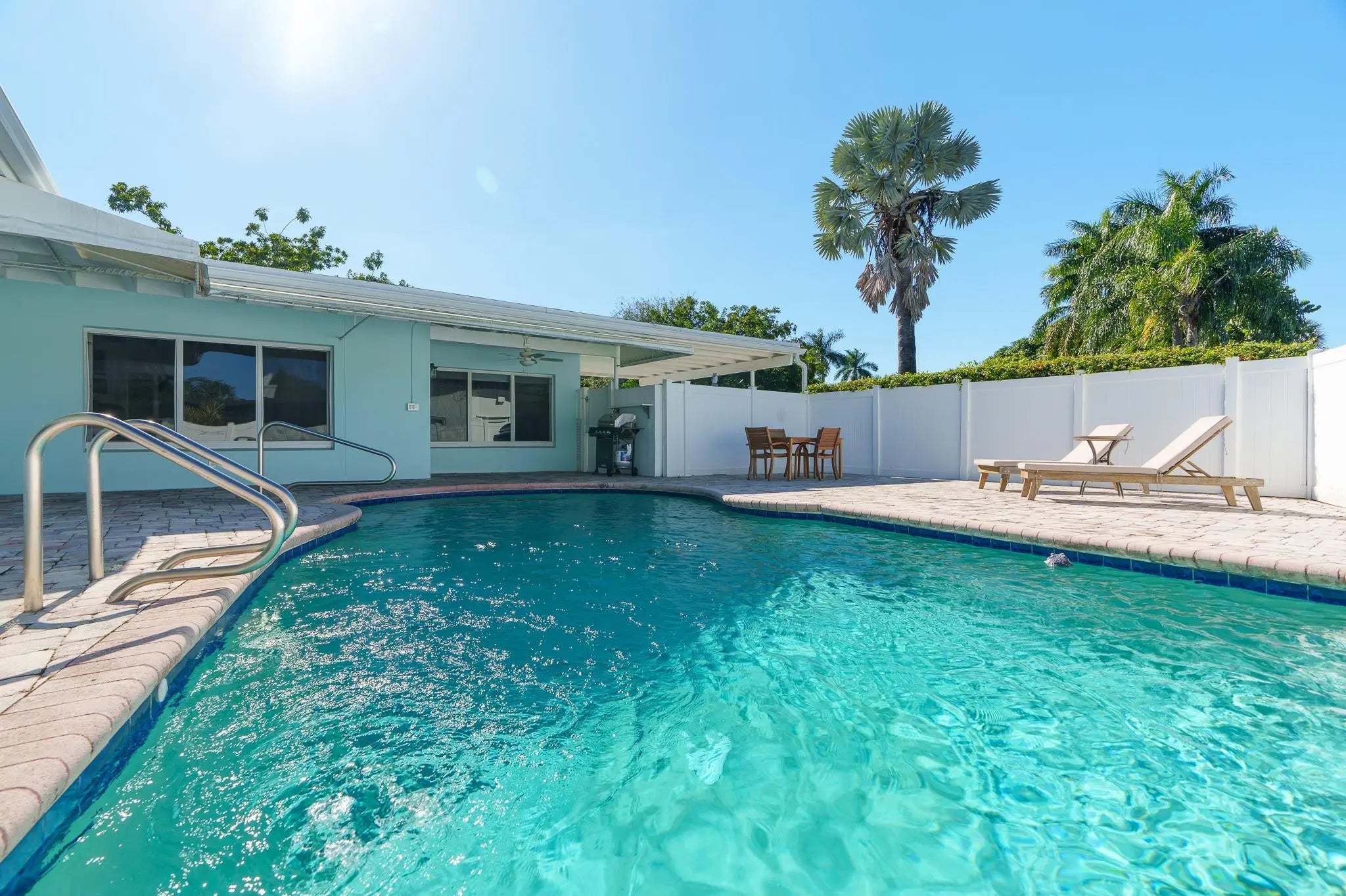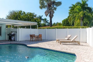 Beautifully updated and full of character, this Wilton Manors corner-lot pool home offers 3 bedrooms, 2 baths, and a warm modern aesthetic. The open living, dining, and kitchen areas are tied together with wood flooring and striking exposed beams. The designer kitchen features quartzite counters, custom cabinetry, soft-close drawers, and under-cabinet lighting. The spacious primary suite easily accommodates a king bed and includes a custom closet system and a spa-like bath with marble floors, a trough sink with dual faucets, and a rainfall shower. Additional perks include a tankless water heater and gas-powered dryer and cooktop. Outside, the property has a fenced in pool and patio and extra side yard that is framed by mature tropical fruit trees including mango, and avocado.
