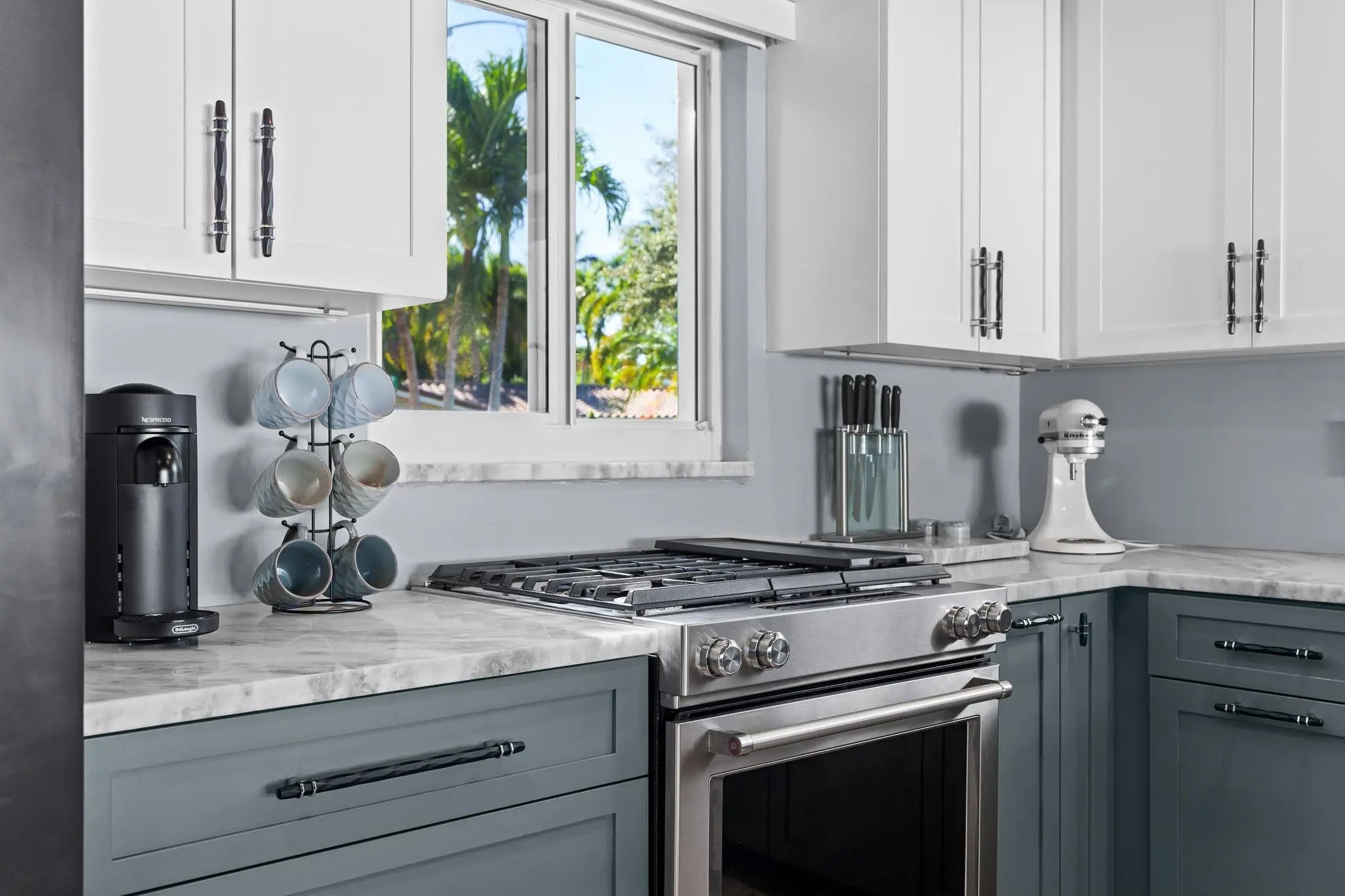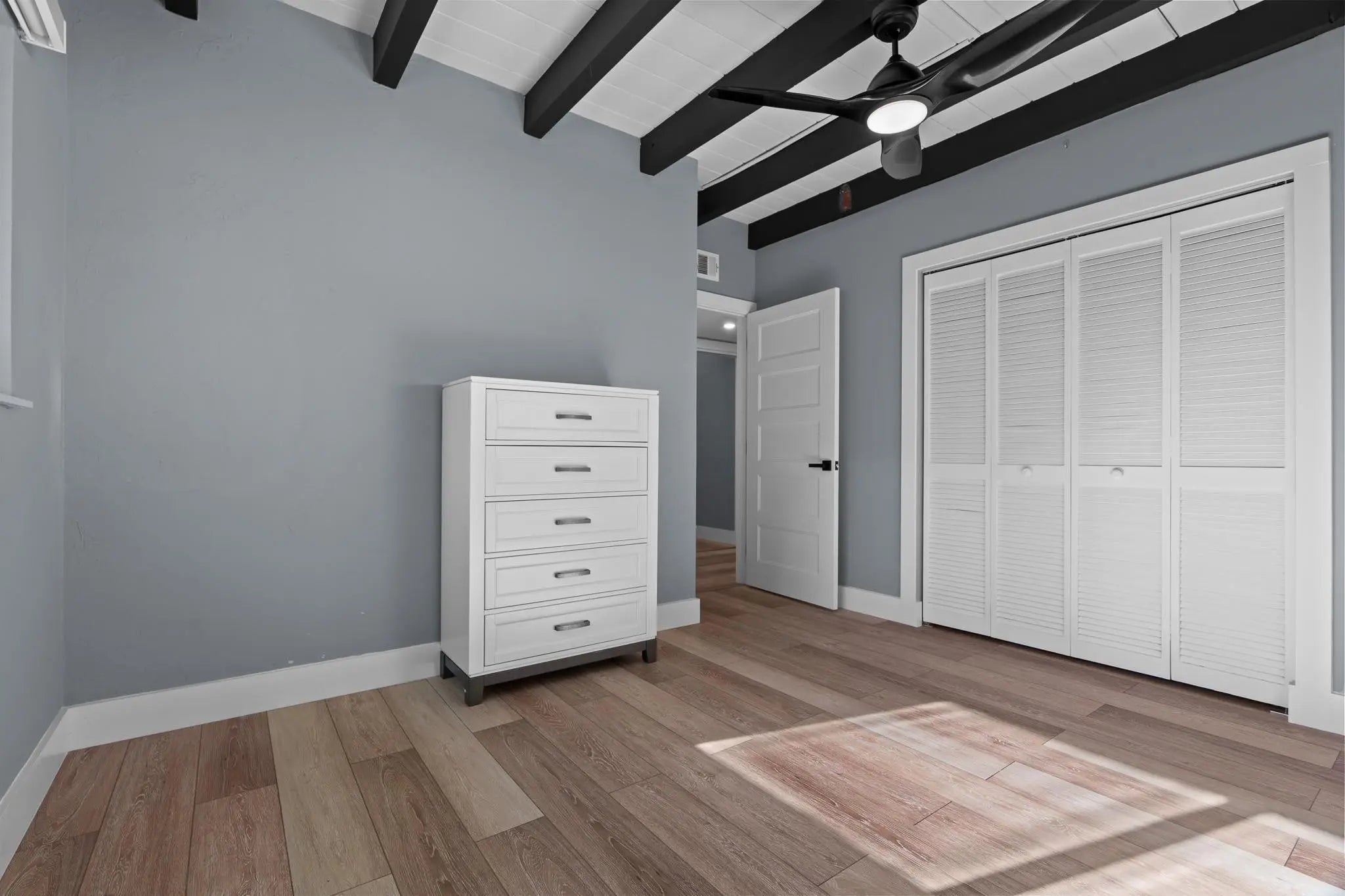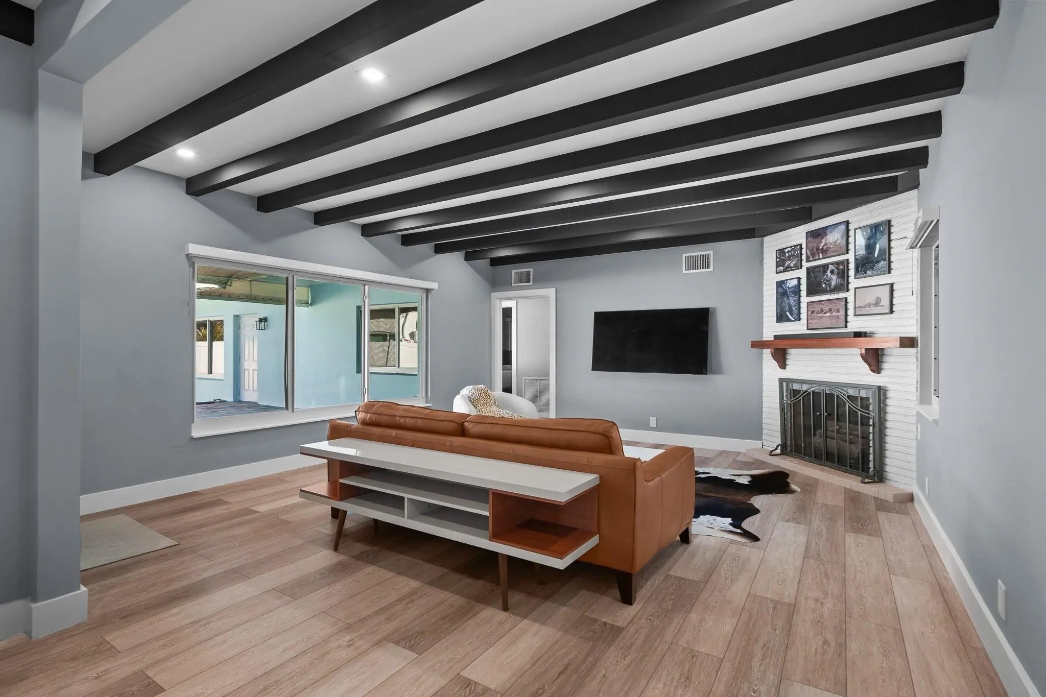 Beautifully updated and full of character, this Wilton Manors corner-lot pool home offers 3 bedrooms, 2 baths, and a warm modern aesthetic. The open living, dining, and kitchen areas are tied together with wood flooring and striking exposed beams. The designer kitchen features quartzite counters, custom cabinetry, soft-close drawers, and under-cabinet lighting. The spacious primary suite easily accommodates a king bed and includes a custom closet system and a spa-like bath with marble floors, a trough sink with dual faucets, and a rainfall shower. Additional perks include a tankless water heater and gas-powered dryer and cooktop. Outside, the property has a fenced in pool and patio and extra side yard that is framed by mature tropical fruit trees including mango, and avocado.
