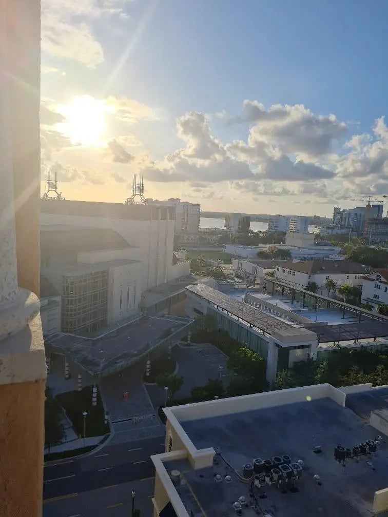 PENTHOUSE 11th floor, FULLY FURNISHED! BRAND NEW FURNITURE! KING SIZE BED AND QUEEN SIZE LEATHER SLEEPER SOFA. SLEEPS 4. Renovated in 2023, ALL TILE flooring and new air conditioning unit and toilet. Ceilings over 10' high, Granite countertops, stainless steel appliances, washer/dryer IN the unit. Covered parking. Walk-in shower. Lots of storage closets, extra room. Facing NW, Downtown/ocean views from large balcony. Located in Downtown West Palm Beach CITYPLACE. Across from Convention Centre, RH, Hilton, Kravis Centre, Cheesecake Factory, Ruth Chris Steakhouse, near Pura Vida, Publix, Starbucks, Brightline, Milos, Eataly, Okeechobee Steakhouse, etc. NEW HURRICANE IMPACT WINDOWS AND DOORS. Pool, jacuzzi, gym, lounge area, business center. REALLY FUN PLACE TO LIVE! AVAILABLE 05/09/26