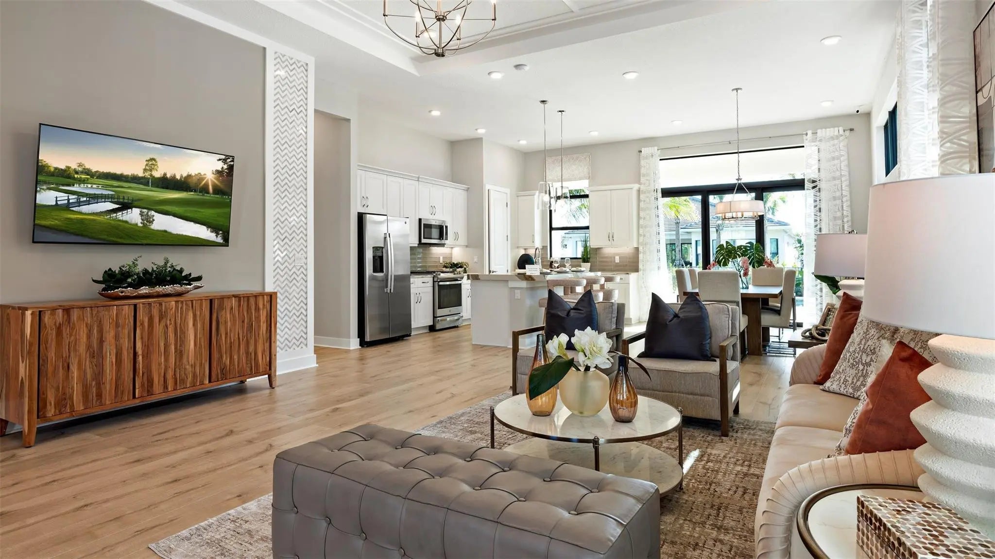 Discover Cresswind Palm Beach, a premier 55+ community in Westlake, FL. Enjoy new, energy-efficient homes, an Adventure Park, dog park, and daily conveniences. Minutes from beaches, golf, arts, shopping, and dining, this vibrant neighborhood offers low-maintenance living and plenty of social, wellness, and recreational opportunities for active adults. Grace floorplan: modern home with rear island kitchen, open dining/great room, private owner's suite with tray ceiling, dual vanities, and convenient laundry access. Flexible options include bonus room, extra owner’s suite, fitness/study, third bedroom, rear extension, attic storage, and garage expansion. Photos of decorated model home are for reference only.