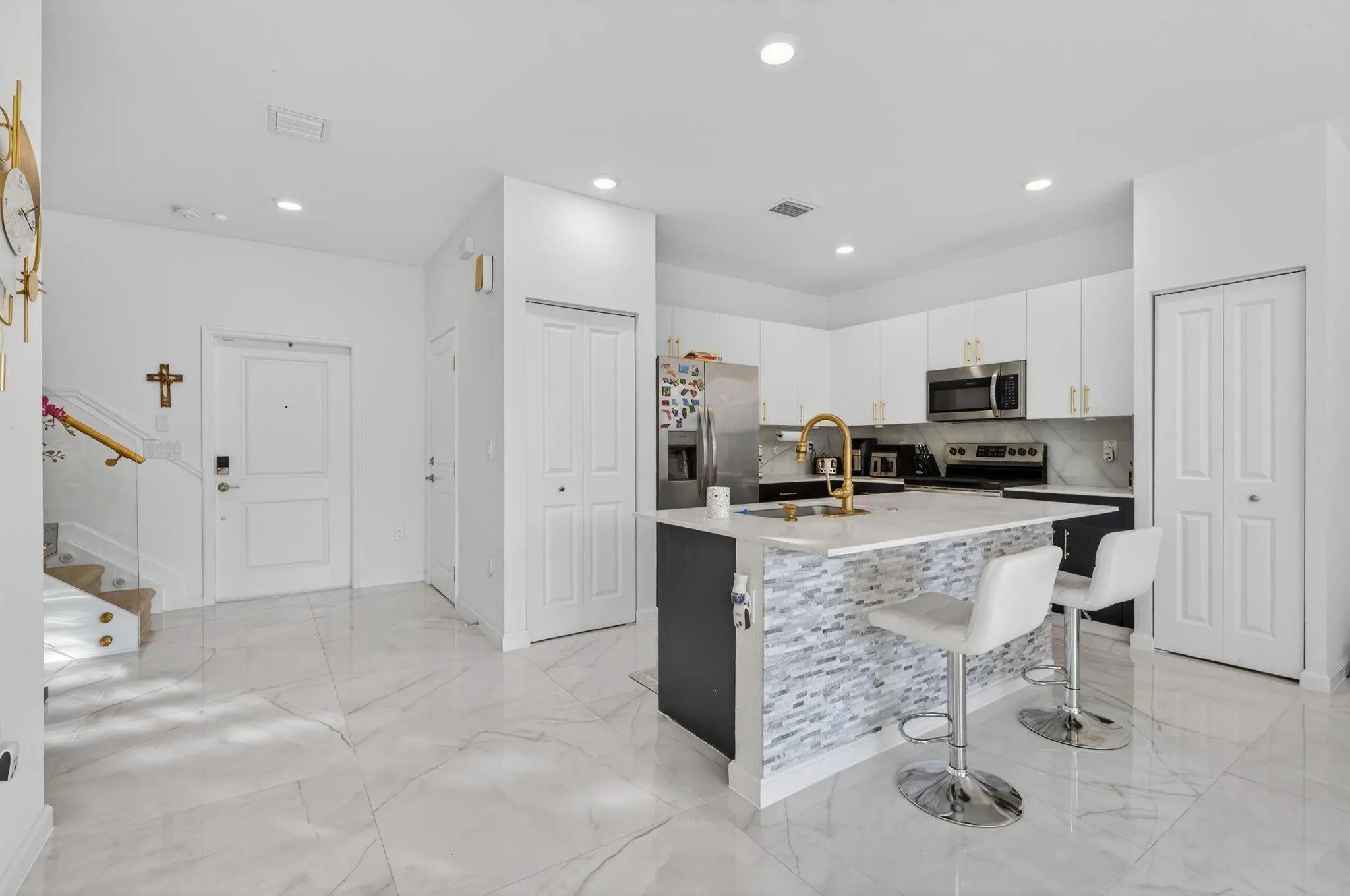 Beautiful New Townhome, built in 2023, offering the perfect combination of style and functionality. The first floor features: White porcelain flooring Impact-resistant windows for safety and comfort, fully equipped kitchen with gold accents and a beautiful island, Spacious living and dining areas,Half bathroom with black porcelain finishes, Staircase with glass railing and gold details. Garage converted into a “man cave” with an 80 Sony TV,plus a 42 m² fenced backyard finished with stones and artificial grass ideal for relaxing with family and pets. The second floor offers: 3 bedrooms, including a master suite 2 bathrooms The gated community offers,Low association fees A beautiful 3 km walking trail surrounded by lush gardens, perfect for a healthier lifestyle. Close to top-rated schools.