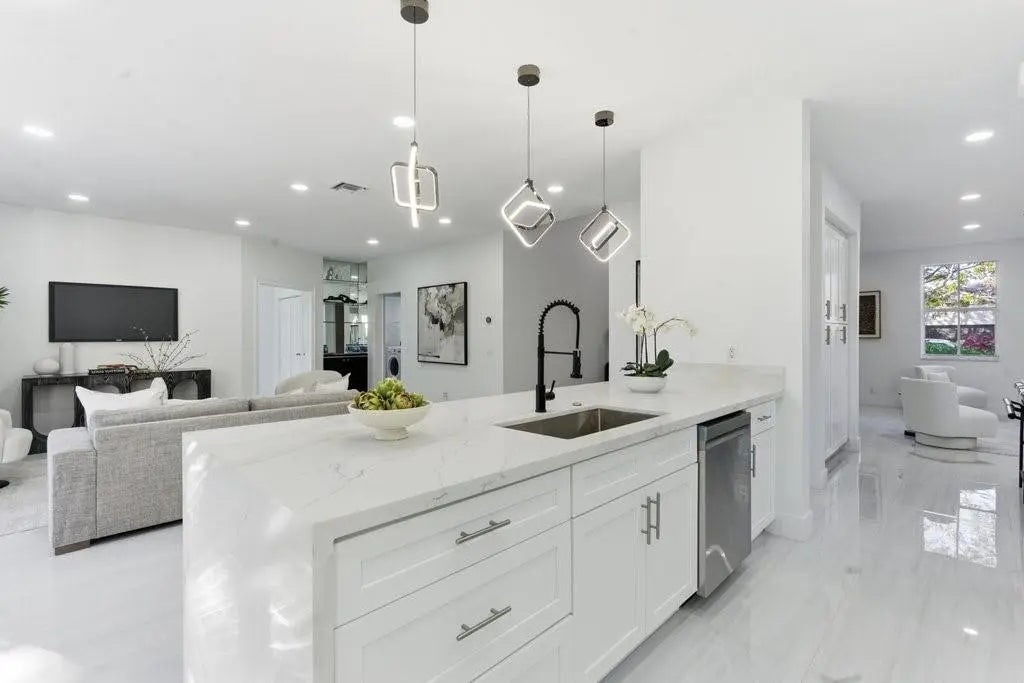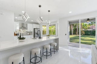 This exquisitely renovated 5-bedroom, 4-bathroom residence boasts stunning 12x36 porcelain tile flooring and a fully updated kitchen featuring quartz countertops, a waterfall island, and a cohesive backsplash, all paired with new shaker-style cabinets. The primary suite has been reimagined with a spa-like bathroom, equipped with dual sinks, an LED mirror, and a contemporary soaking tub. Upon entering, you are welcomed by a grand foyer adorned with a chandelier, soaring 18-foot ceilings, and refined wood paneling that overlooks the staircase. With its modern elegance and premium finishes throughout, this home is ideal for growing families, entertaining guests, or indulging in everyday luxury. The roof was updated in 2021, and the A/C units were replaced in 2019 and 2022!