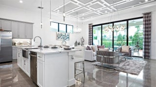 Discover The Cove at Park Trace in Stuart, Fl. A gated new home community with a pool, sundeck, shaded lanai, and on-site restrooms. Enjoy access to beaches, golf, shopping, dining, and top-rated schools. Minutes from Downtown Stuart, Jensen Beach, and Palm City for vibrant Florida living. The Kitchen serves as the command center of the Julia floorplan. A gourmet kitchen with substantial countertop area, cabinetry and pantry. From the island, the view opens up light & bright across the Dining area and Great Room out to the covered Lanai. Owner's Suite highlights include a tray ceiling, spacious walk-in closet and separate vanities in the Owner’s Bath. Disclaimer: Photos of a decorated model home are for reference only. Actual home will differ.