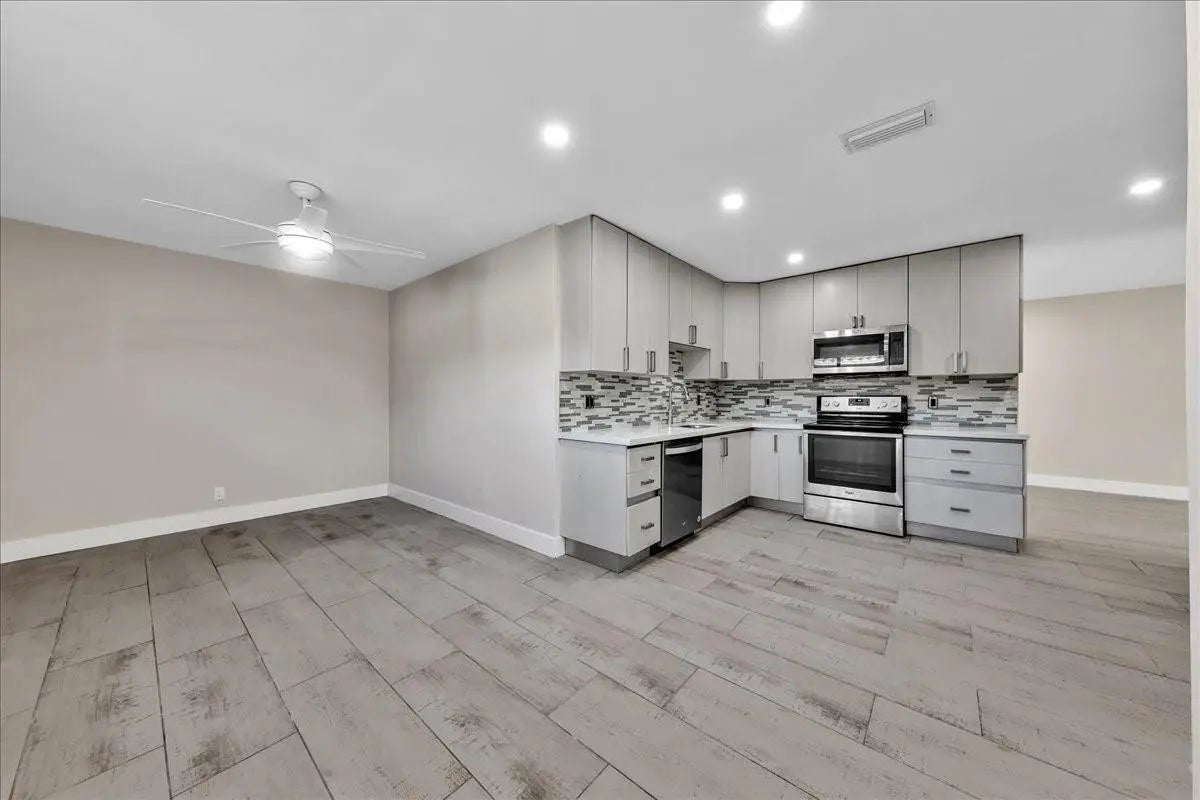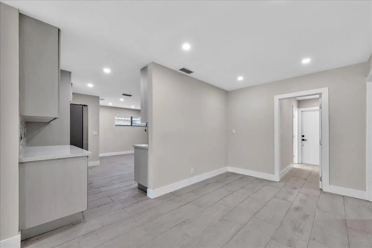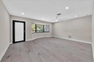 Stunning, large 5 bedrooms, 3 bathroom, in a special area, across from park, only blocks from the beach and brand new golf course! No HOA. Completely remodeled with newer roof, impact windows, tile throughout living areas and vinyl floors in bedrooms, beautiful open and large kitchen remodeled with quartz countertops, stainless steel appliances, and modern cabinets. Bathrooms upgraded with beautiful finishes. Backyard completely fenced in for privacy with 2 large storage sheds. Walking distance to the park, beach, golf, restaurants, and shops. Can't miss this beautiful home.