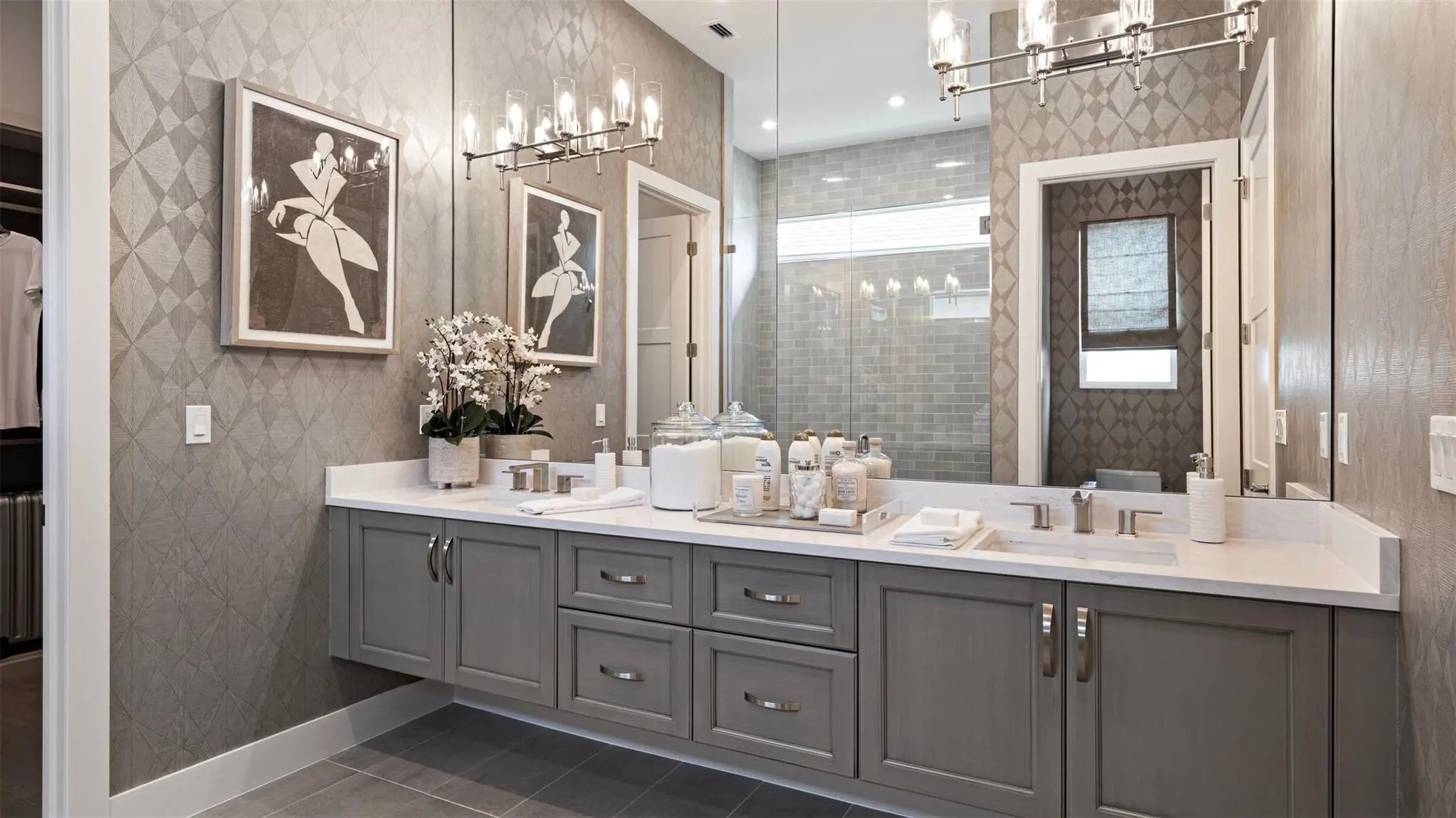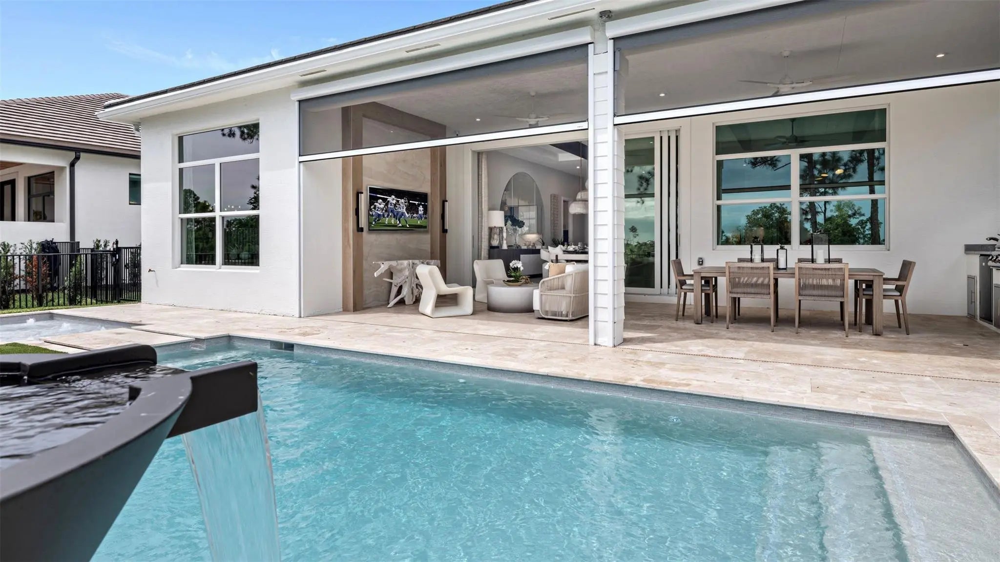 *NEW CONSTRUCTION* Fully Furnished, Decorated Paige Model for sale. This professionally designed and decorated builders' model is being offered for sale with everything you see included. A custom pool overlooking a preserve view, within the gated community of L'Ambiance. This Paige model, built by Kolter Homes has custom trim work and lighting throughout the home. A built-in closet and built-in pantry, as well as an upstairs bonus room with an additional bathroom and closet complete this 3-bedroom, 4 bathroom, 3-car garage, bonus room home. The owners' suite and lanai have been extended 4'. The lanai opens up through a 16' wide slider to a built-in outdoor summer kitchen and a custom pool.