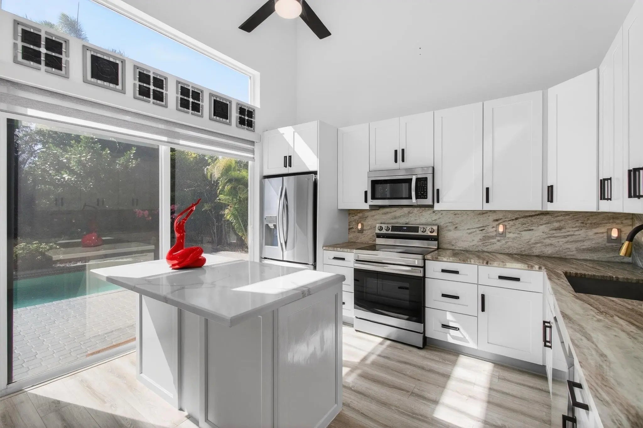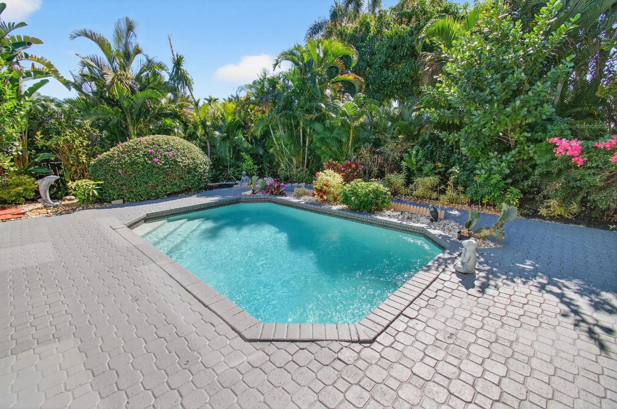 Welcome to Newport Bay centrally located in Boca Raton near Delray Beach. Experience country club living WITHOUT the equity fees. Move right into a freshly painted 3BR, 2BA home situated on a "private corner lot" with backyard OASIS and POOL. Newly renovated kitchen with white shaker cabinets, gorgeous quartz countertops, spacious island and ss appliances. Both bathrooms are renovated! Natual light...very HIGH CEILINGS that enhance the airy feel. New AC 2024! New impact windows and shutters. New pool pump 2025. New pool deck resurface. Newport Bay is located across from The Polo Club and next to Morikamil Park. Community offers; 7 har-tru tennis courts, 4 pickleball courts, por-shop, heated swimming pool, fitness center, along with newly renovated fitness center and clubhouse.