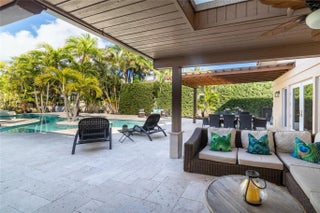 Impressive 5 bedroom home with loft and ocean access waterfront in prestigious Seven Isles-an upscale security-patrolled waterfront/beach community and just minutes to the ocean! Concrete dock with 80 ft of waterfront & 100 amps of power. This home boasts a large foyer which opens to the living and dining areas, open eat-in kitchen & family room with cathedral ceilings. 5 bedrooms with 5 ensuite baths, Primary bedroom plus 2 additional bedroom suites located on the first floor and 2 bedroom suites upstairs plus Loft. Large Laundry area & 2 car garage. Multiple french doors open onto large travertine patio with pergola and roll out awning. Resort like freeform style salt pool. Fantastic location! Enjoy all upscale restaurants, shops & day/nightlife of Las Olas. Long term rental preferred