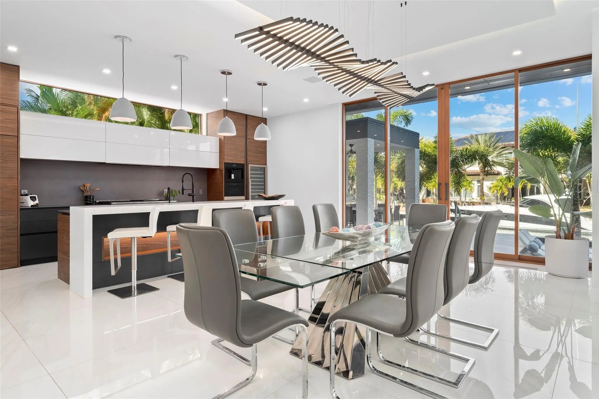 Experience unparalleled modern waterfront luxury in prestigious Lighthouse Point at 2631 NE 48th Ct. This stunning new contemporary estate offers nearly 5844 SF under AC, 80’ prime deep-water frontage, brand-new private dock, direct Intracoastal-to-ocean access (no fixed bridges). On a serene waterfront street, the 5-bed, 5.5-bath home is designed for seamless entertaining, effortless living, and top security. Highlights: resort-style pool & spa, expansive indoor-outdoor flow with soaring ceilings, versatile 3-car garage (2+1) with lift-ready high ceilings for up to 6 cars. Advanced Control4 smart-home system with voice control manages lighting, shades, locks, audio, TVs, and security. $200k+ in premium upgrades make this exceptional property a bespoke, future-ready waterfront sanctuary. Over $200,000 in premium post-purchase upgrades transform this already exceptional home into a fully bespoke, future-ready sanctuary:Control4 whole-home automation with advanced voice controlLutron RadioRA 3 automated shades throughoutEnterprise-grade Unifi 10GB network with five 10GB WiFi access pointsUnifi 4K HDR surveillance with NVR/DVR and AI facial recognitionFingerprint-enabled smart doorbellSonos whole-home audio (5 Amps) plus Sonos Ultra surround sound in the Club Room, Loft, and Primary SuiteViking 7 Series professional oven/rangeCustom Florense Miami built-in closets in all bedroomsTOTO Neorest LS luxury bidets in every bathroomWhole-home commercial water filtration, softener, and reverse-osmosis pH 10 taps (kitchen & bar)Air-conditioned garages48V EV charging stationUnderwater canal lighting for dramatic evening ambianceRarely does a turnkey, ultra-secure waterfront residence in one of Lighthouse Point’s most coveted neighborhoods become available—fully equipped for today’s luxury lifestyle and tomorrow’s innovations. This is more than a home; it’s an elevated way of life on the water.