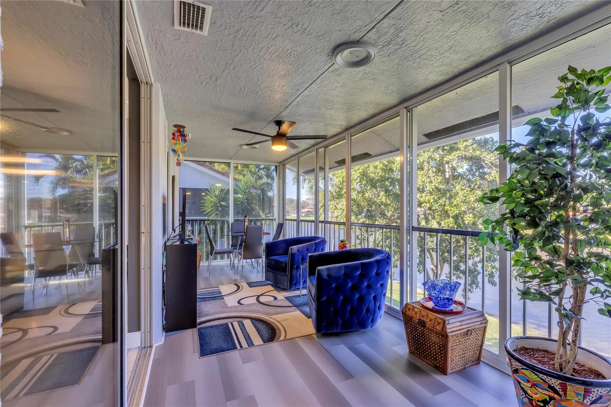 Spacious 2-bedroom, 2-bath condo offering 1,822 square feet of fully remodeled living space in Palm Isles III. This residence features an in-unit elevator, quartz countertops, new appliances, upgraded LED lighting, and a rarely found fully air conditioned and glassed in family room with tranquil lake views. Open and functional layout with abundant natural light and vaulted ceilings. The satellite pool for Palm Isles III is a short distance from the unit. The community boasts a 50,000 sq ft clubhouse which includes a 600 seat theatre where live entertainment will perform monthly. Additionally, the property has beautifully landscaped grounds, a stunning main pool, basketball courts, tennis, pickleball & spa for your active lifestyle. ALL assessments have been paid in full by the seller.
