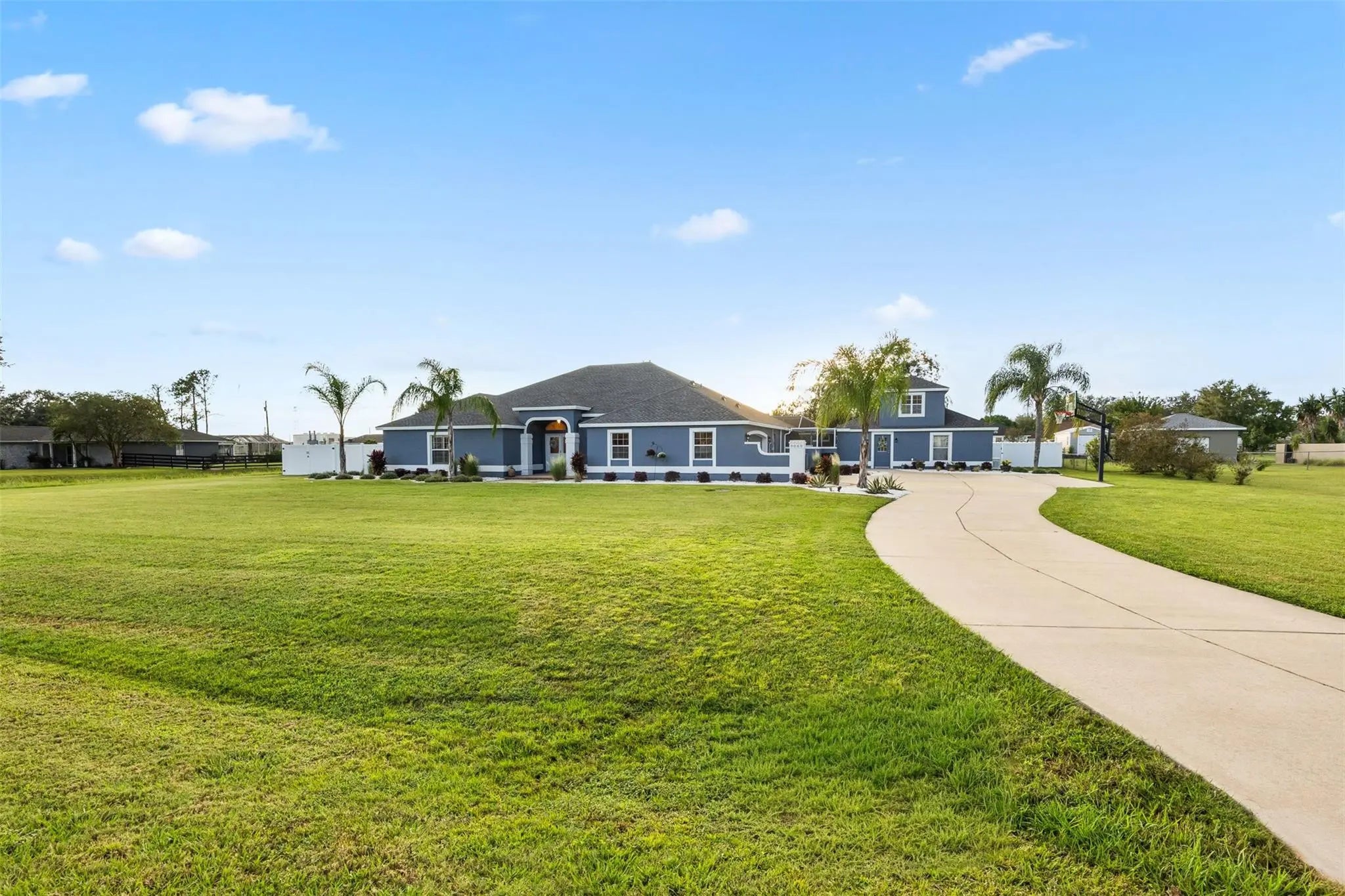 Stunning, fully updated home in the desirable Fox Hollow neighborhood. This 6-bedroom, 4-bath residence features an attached 2-car garage plus a 30x30 detached garage added in 2024. Designed for entertaining, the property includes a 30x36 game room and a 61x47 screened, lighted pool and spa area with gas hookups for outdoor cooking. The attached garage offers epoxy flooring and mini-split wiring and can function as a gym or garage. Extensive upgrades include new roof (2024), interior and exterior paint, flooring, fixtures, appliances, landscaping, tankless water heater, whole-house generator, underground propane tank, and 6' vinyl privacy fence. Conveniently located near The Villages with easy access to I-75 and the Florida Turnpike. Stunning home now available in the desirable Fox Hollow Neighborhood. Looking for a beautifully updated home that checks all of your boxes??? Look no further. This 6 Bedroom, 4 Bathroom, 2 Car Garage, Pool and Spa home is sure to fulfill all your desires and needs. Complete with a very large 30 x 36 Game Room that allows for endless entertaining possibilities. As well as the adjacent 61 x 47 lighted screen cage pool and spa area, that includes 2-quick disconnects for your gas grills/pizza oven. Currently has an electric heater for spa, but a gas line was added for a pool/spa gas heater if desired. The attached garage is currently being used as a gym. Garage door is insulated and pre-wired for a mini-split and has epoxy blue fleck flooring. - However, it can still be used as a garage. An additional 30 x 30 detached garage was added in 2024, located at the rear of the property. The detached garage has epoxy blue fleck flooring, 4 ceiling fans, laundry tub and storage above accessible by pull down stairs. So many upgrades in this home. New paint inside and out. New flooring. New light fixtures, fans, plumbing fixtures, door hardware, security cameras, kitchen and laundry appliances. Landscaping completely redone in October 2024 around entire home, detached garage, game room and shed. New roof shingles installed on home, game room, shed and detached garage in 2024. New tankless recirculating water heater added 12/2024. Whole house generator installed 9/2025. 500G underground propane tank installed 12/24. Backyard of home is completely fenced in with 6' vinyl privacy fence that was installed in 11/24. There is a drive thru gate on left side and a walk thru gate on right side. Ideally situated minutes from The Villages, you'll have easy access to shopping, restaurants and medical doctors and facilities. Plus you'll be conveniently located between Orlando and Ocala with less than a 10-minute drive to the Florida Turnpike and I-75. Don't miss out on this incredible opportunity to own this beautiful home in a sought-after neighborhood! See realtor remarks.