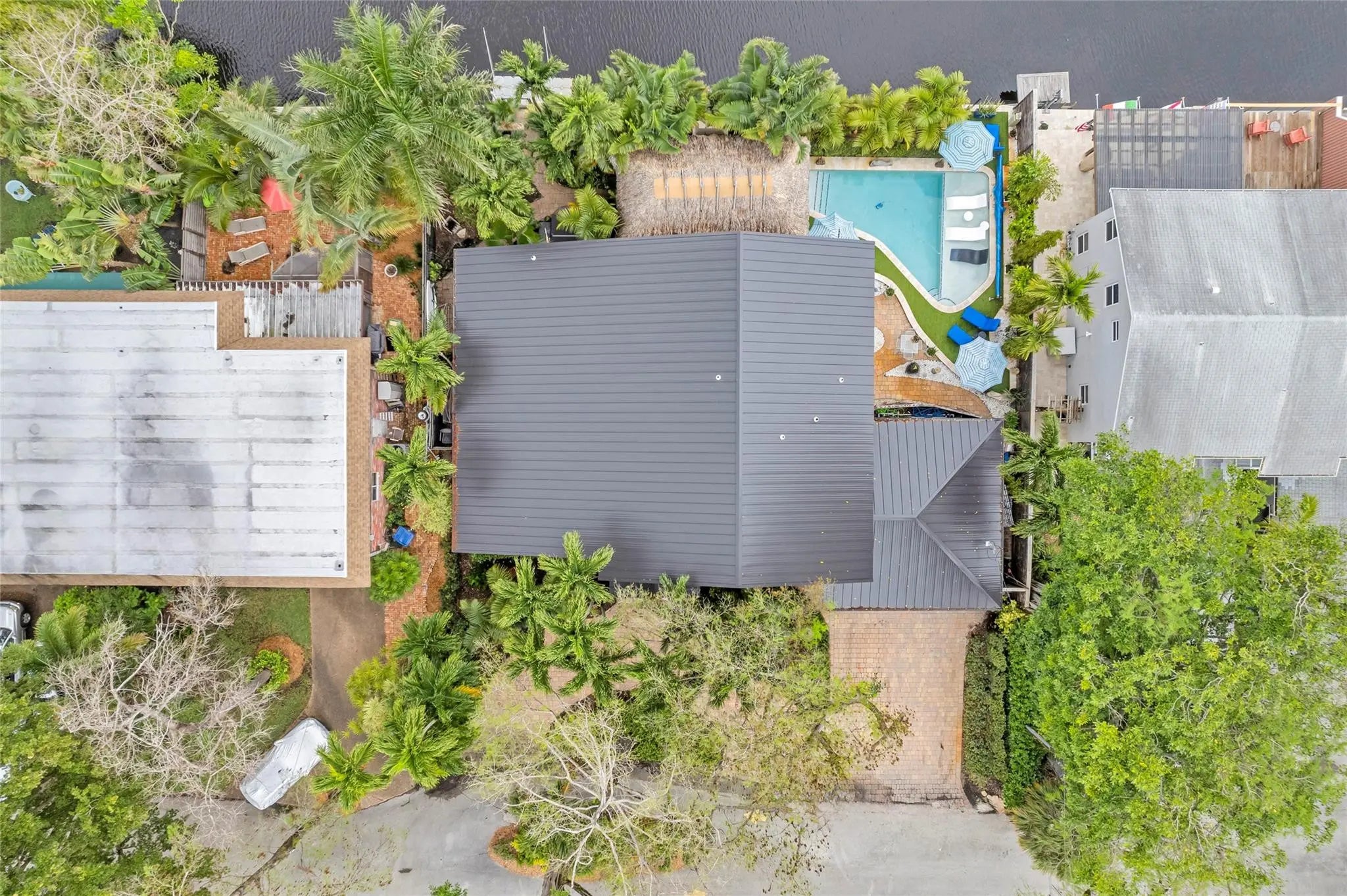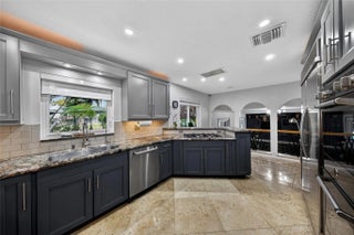 Unique mansion in Central Wilton Manors - just 4 blocks to Wilton Drive. This majestic home has 4 bedrooms, 3.5 baths PLUS a separately metered 1 bedroom / 1 bath apartment for rental or multi-generational family living. Nice flow from the Living Room with theater projector, to formal dining room, and a relaxing Family Room. Exotic granite in the Kitchen with Bertazzoni appliances. Located on the waterway with wonderful outdoor living areas - extra large Tiki hut at 384sf covers the outdoor Kitchen, overlooking the salt heated (and chilled!) pool with Travertine pool deck. Air-conditioned 2 car garage, NEW METAL roof 2023 with double straps, all PGT windows and doors, including the garage door. All sewer pipes have been relined. Whole house Generex generator with 500 gal buried tank.