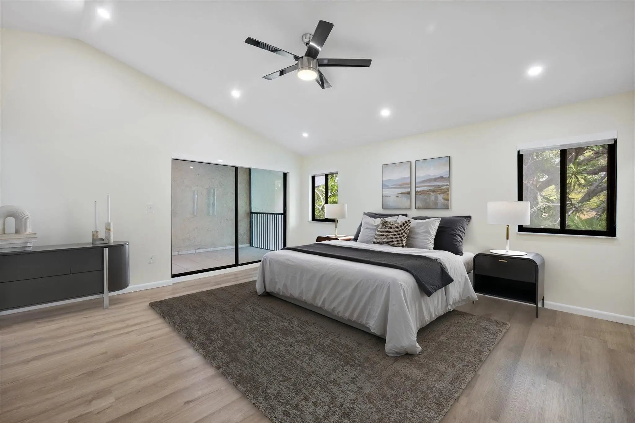 NEW PRICE and for rent at $3,500. Beautifully renovated condo in Sandpiper at the California Club offers 2 beds, 2 baths, and 1,700 Sq Ft of carefully crafted living space with quality finishes throughout. The interior features a clean, modern look and an open layout where the living and dining areas connect seamlessly, creating a refined and inviting atmosphere. The AMAZING vaulted primary bedroom serves as a true retreat with an updated en-suite bath and a private balcony that fills the space with natural light. A second bedroom opens to its own private terrace, ideal for quiet mornings or evening relaxation. A rare fenced backyard adds valuable outdoor space for entertaining or unwinding at home. Community amenities include a pool, spa, and gated entry, both convenient and peaceful.