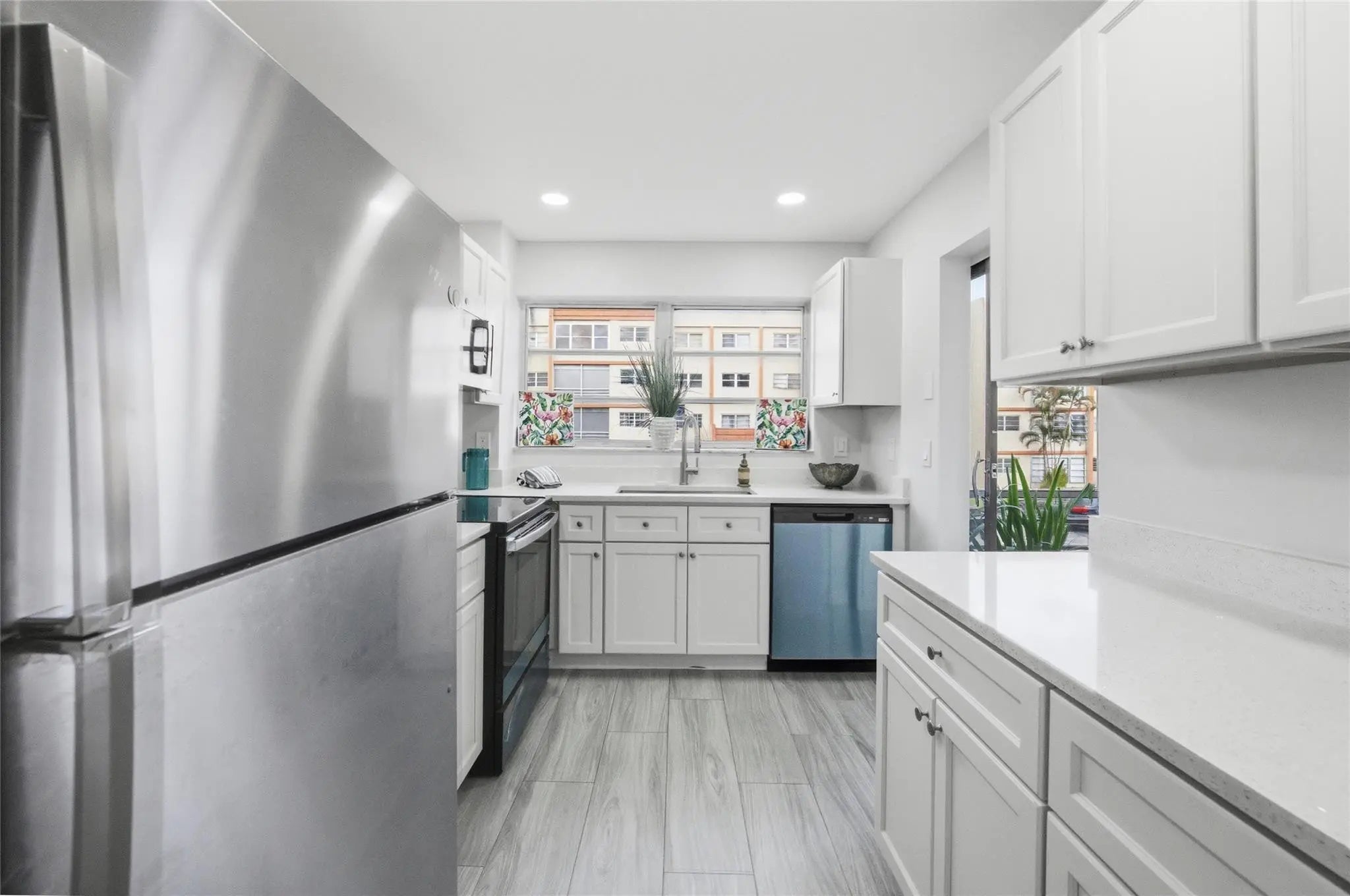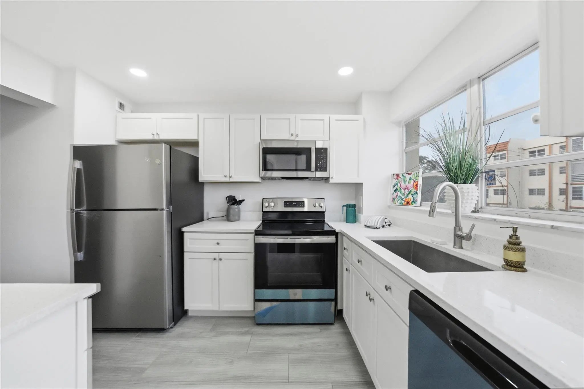 Welcome home to this gorgeous unit, Highly upgraded and completely remodeled to perfection!! Priced to sell quickly! New Tile floors throughout, New Kitchen cabinets, New Appliances, Quartz countertops, New Bathroom, Large bedroom with 2 closets one is a walk-in. Open floor plan with a screened terrace, Laundry by unit, Parking spot in front. Secured building, unit is by the Elevator. Ideally located close to A rated school and middle school. Nothing to do, just move in and enjoy!! Ideal for year around or a winter getaway!! Renovations underway in hallways and new roof.**SELLER WILL PAY SPECIAL ASSESSMENTS AT CLOSING**