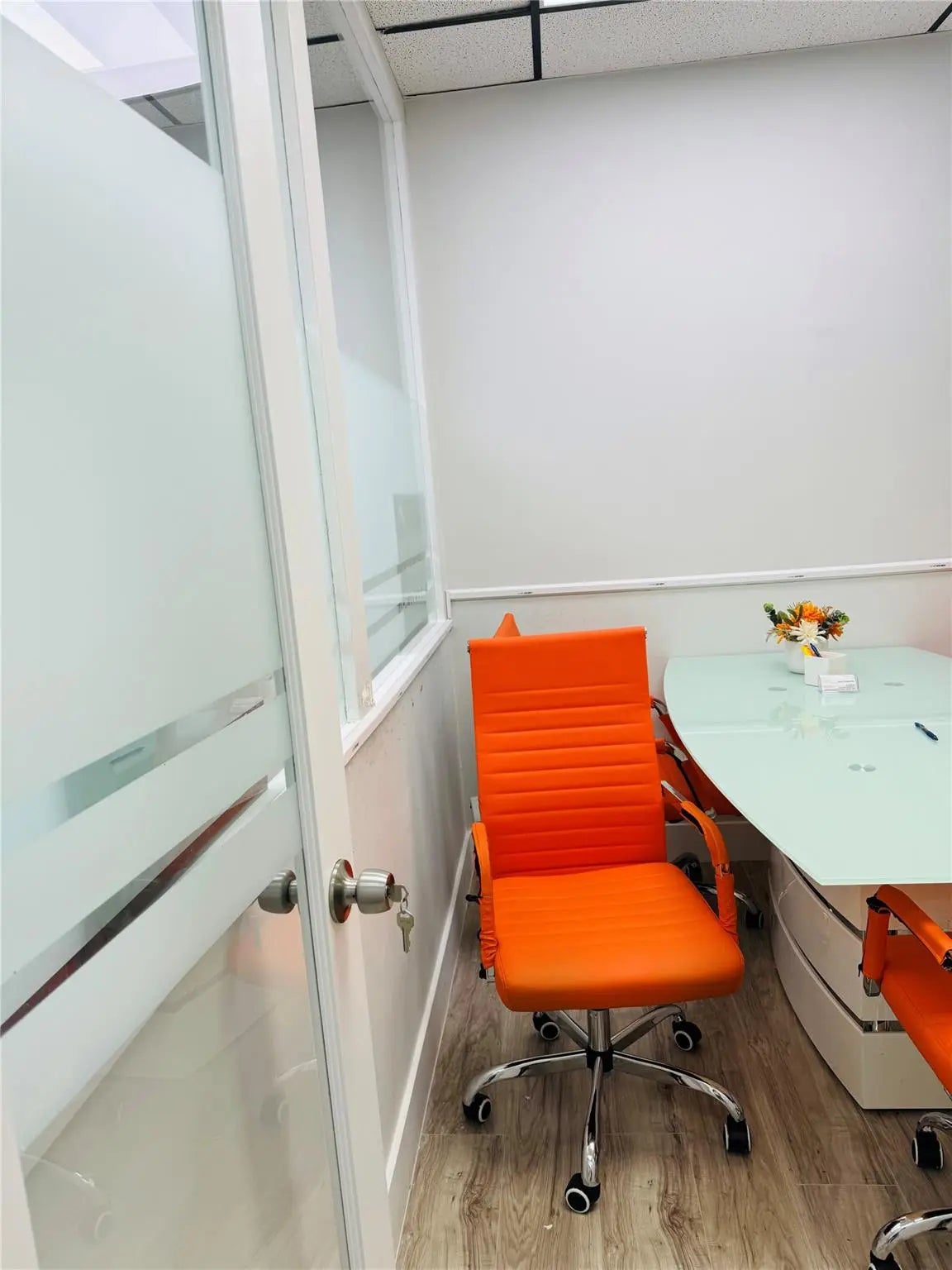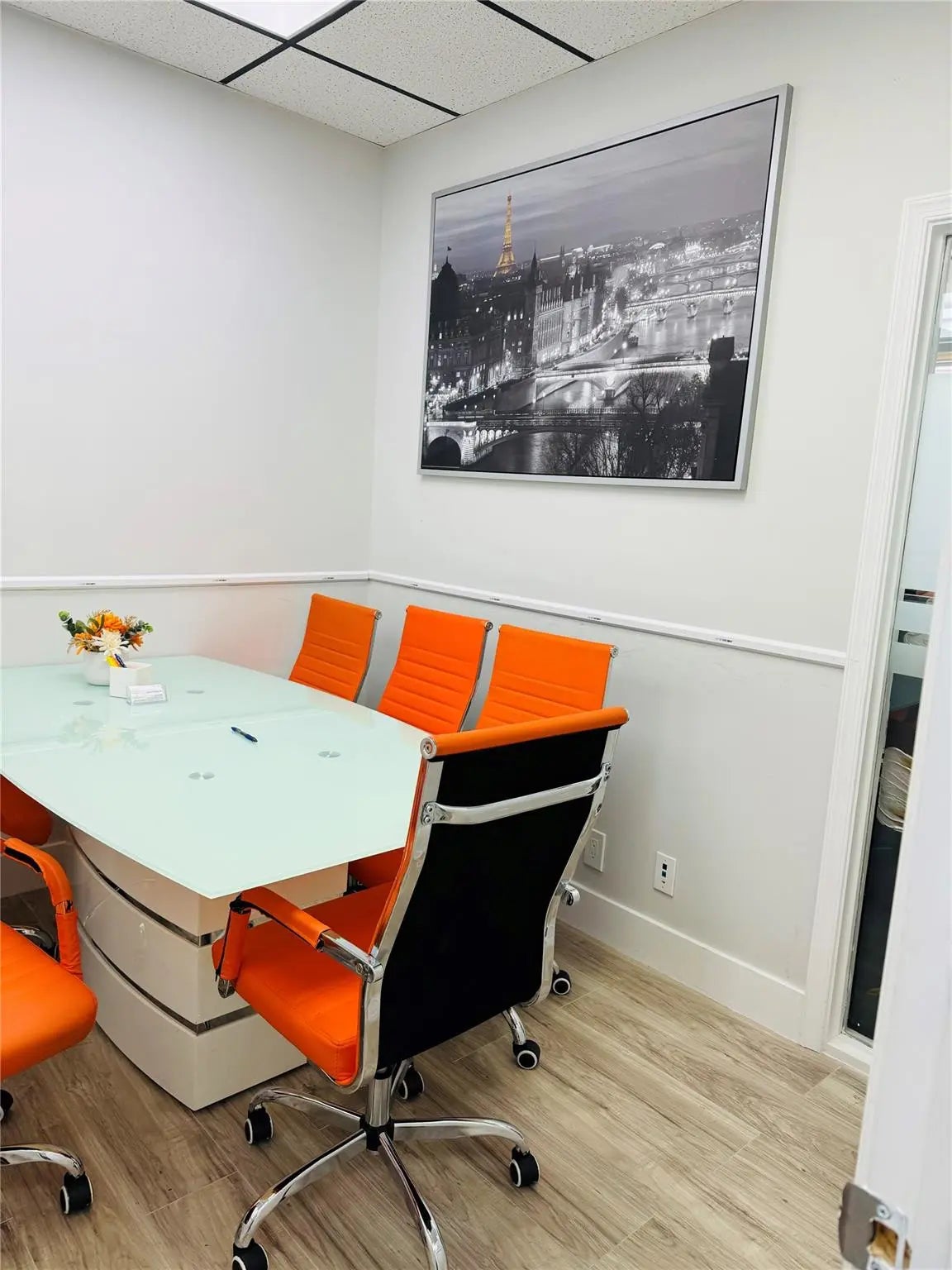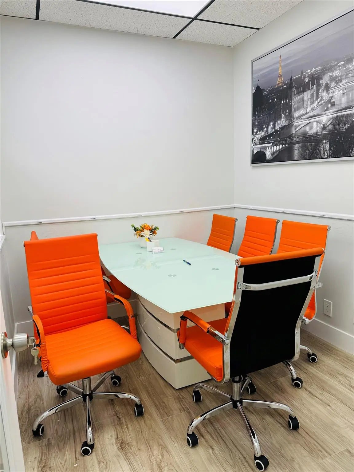 Professional office suite featuring a welcoming reception area, main conference room, and threeprivate offices with window views. Freshly painted throughout and conveniently located near theelevator. Ample parking available with the flexibility of an additional conference room if needed.Secure building with 24-hour access—ideal for growing or established businesses. Professional office suite featuring a welcoming reception area, main conference room, and threeprivate offices with window views. Freshly painted throughout and conveniently located near theelevator. Ample parking available with the flexibility of an additional conference room if needed.Secure building with 24-hour access—ideal for growing or established businesses.