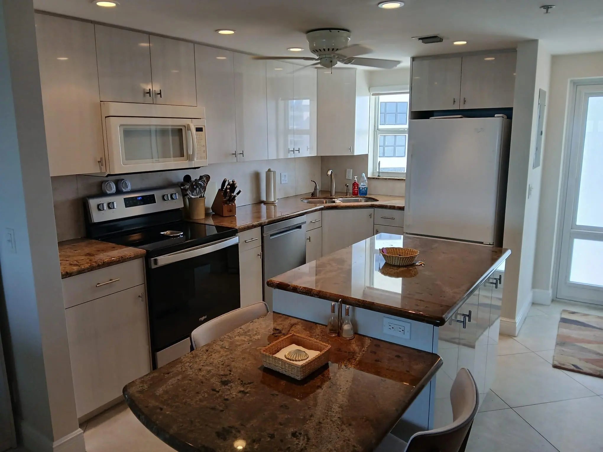 Oceanfront condo with amazing, direct Ocean views in Highland Beach. This condo is special because it does not get direct sun in the evening which makes the huge veranda such an enjoyable space to watch the waves! Unit is fully furnished, so just bring your clothes and toothbrush. Master bedroom has a walk-in closet and ensuite bath. Second bedroom is a office with morph beds, a large closet and ensuite bath. Close to Delray Beach and the vibrant nightlife and shopping. Condominium has a fantastic pool and direct beach access. Unit available Jan 1st 2026. **A $300 cleaning fee applies to both seasonal and annual rentals. annual rental is welcome please contact me for price.