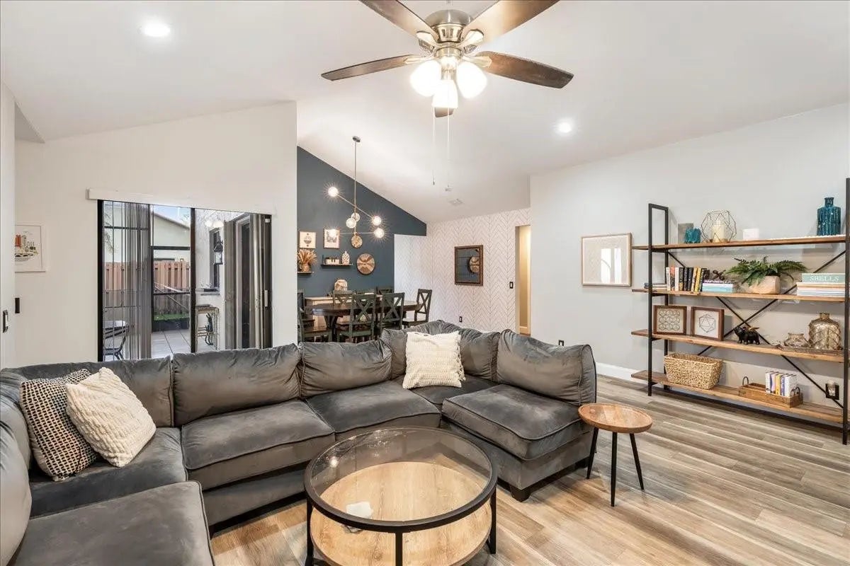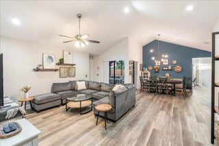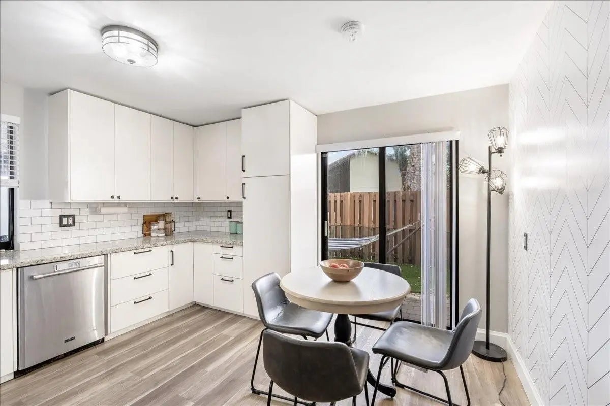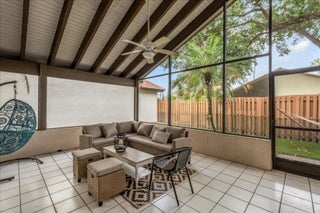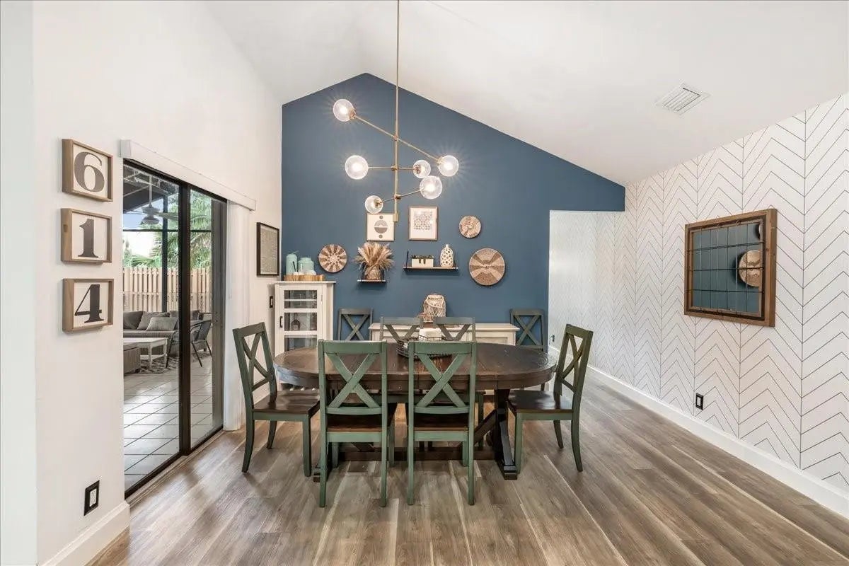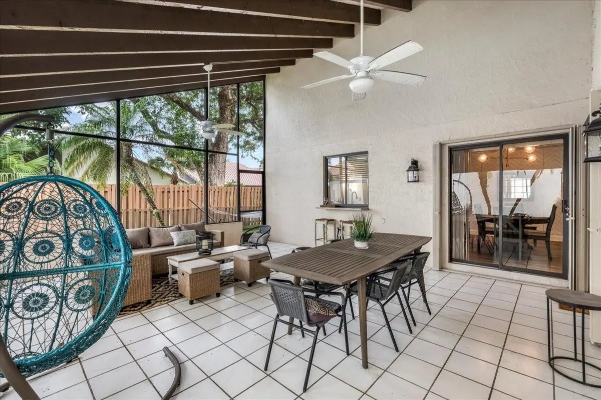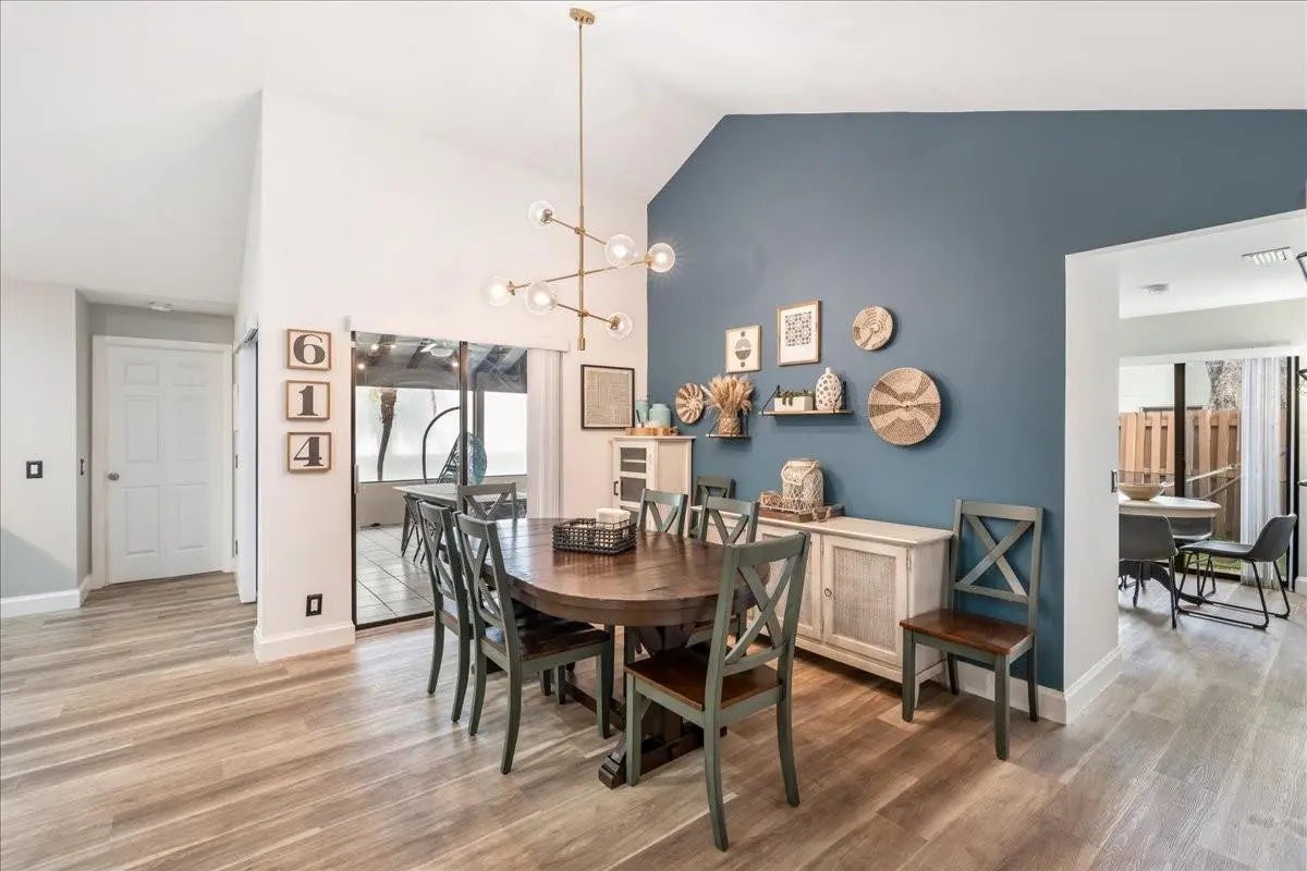 Beautifully curated and effortlessly livable, this 3 bed 2 bath home blends warmth, comfort, and modern updates. The updated floors, kitchen and baths anchor the home with style and function. Natural light, cozy textures, and thoughtful details create spaces that feel calm and welcoming. Step outside to an enormous screened patio that expands your living area and sets the stage for relaxing mornings and easy entertaining. Here you'll find flexible space for living, working, relaxing, and hosting. Smart home conveniences include upgraded electrical panel with Level 2 (240V) EV charging outlet, Nest thermostat, Ring doorbell, and accordion shutters, delivering efficiency and peace of mind. Welcome home to a space that feels collected, inviting, and quietly special from the moment you arrive.