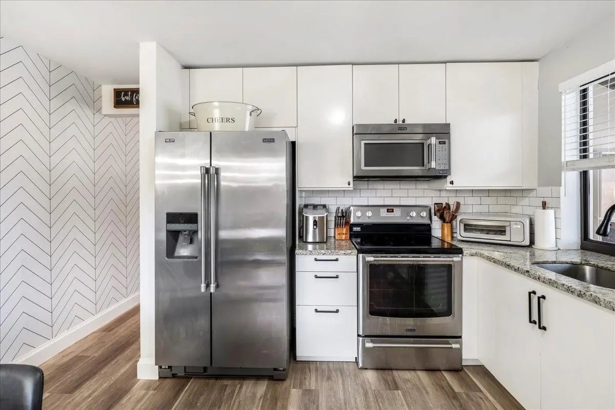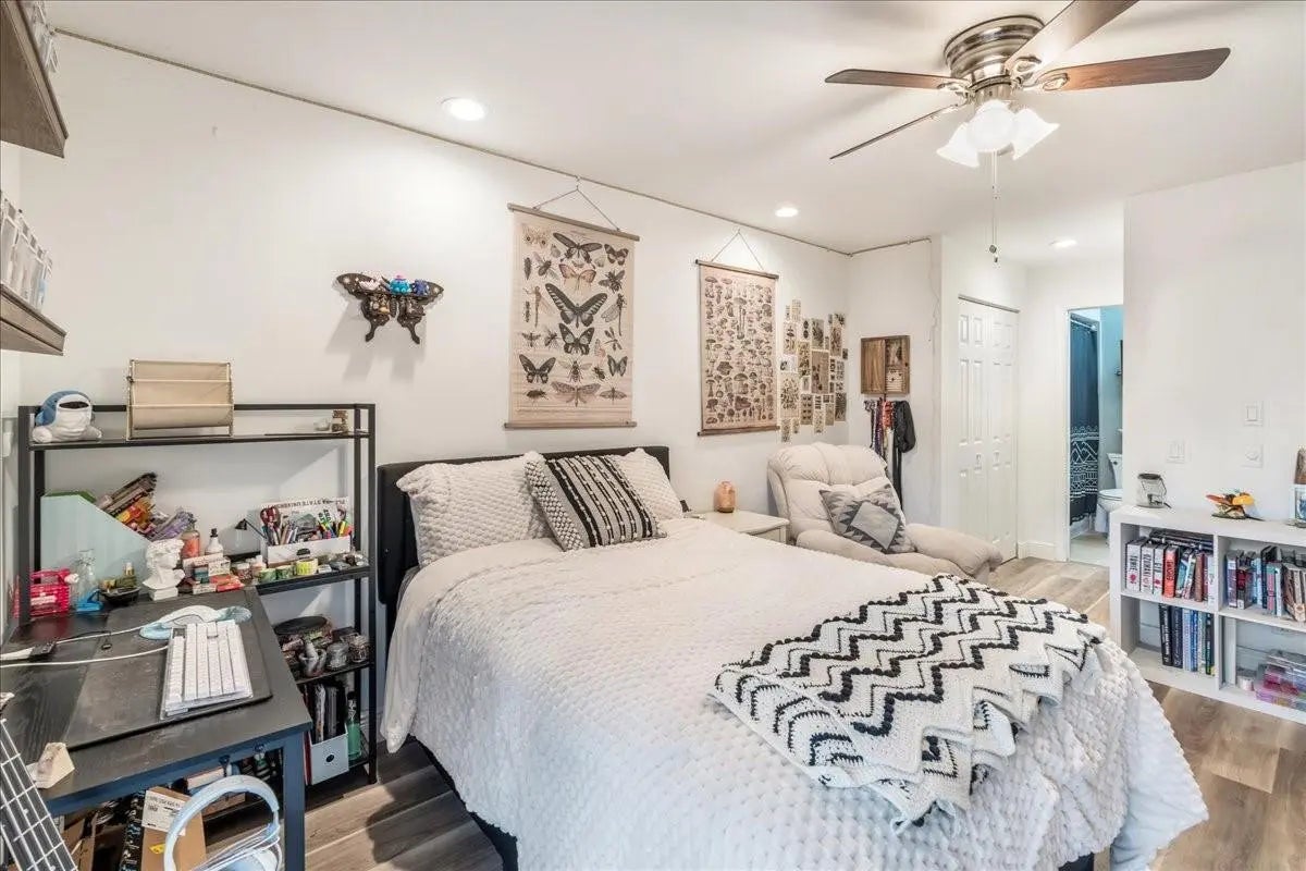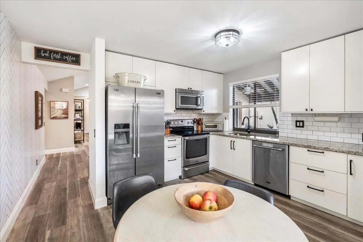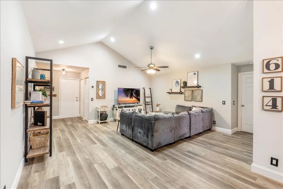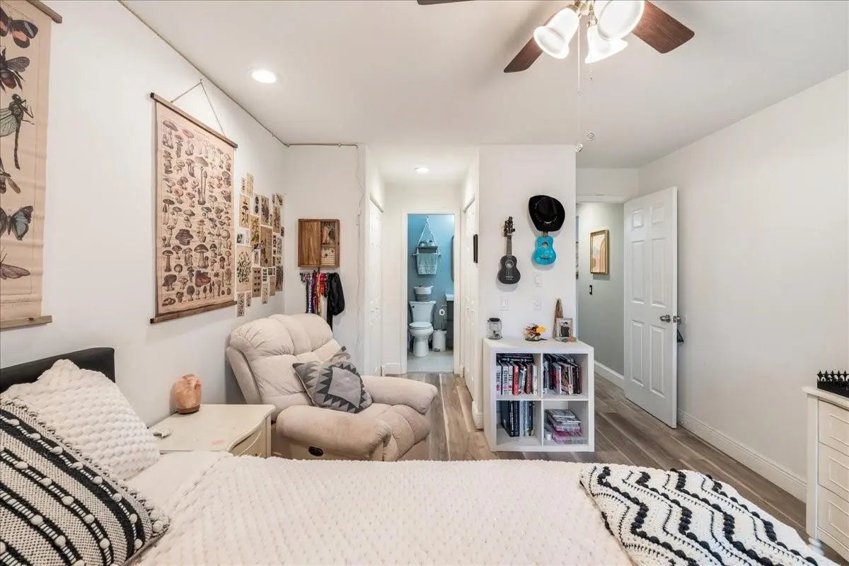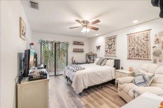 Beautifully curated and effortlessly livable, this 3 bed 2 bath home blends warmth, comfort, and modern updates. The updated floors, kitchen and baths anchor the home with style and function. Natural light, cozy textures, and thoughtful details create spaces that feel calm and welcoming. Step outside to an enormous screened patio that expands your living area and sets the stage for relaxing mornings and easy entertaining. Here you'll find flexible space for living, working, relaxing, and hosting. Smart home conveniences include upgraded electrical panel with Level 2 (240V) EV charging outlet, Nest thermostat, Ring doorbell, and accordion shutters, delivering efficiency and peace of mind. Welcome home to a space that feels collected, inviting, and quietly special from the moment you arrive.