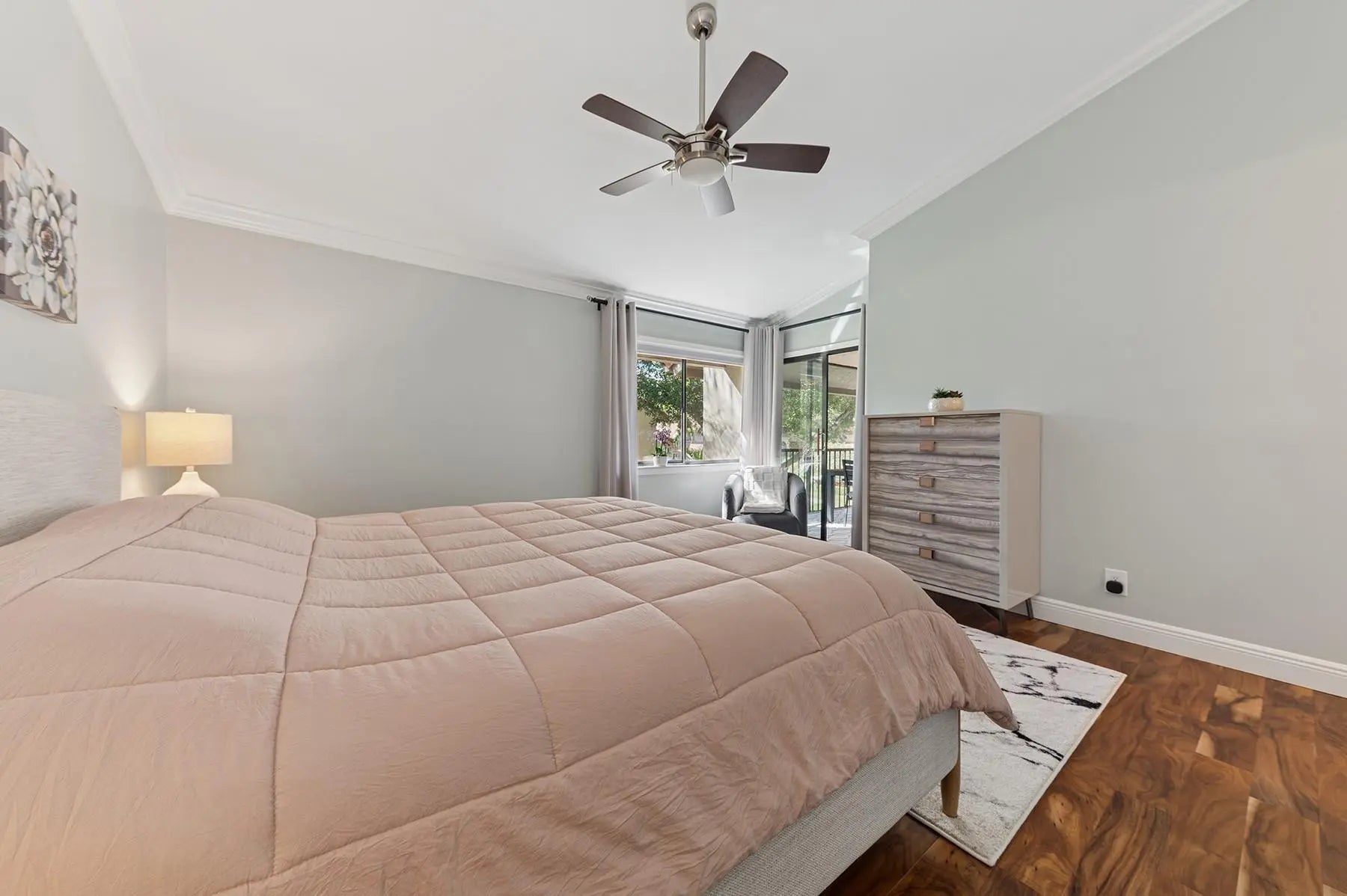 Rarely available fully renovated 2 bed 2 bath corner unit in the desirable Coach Houses of Town Place. This unit boasts a brand new 2025 kitchen (stainless steel appliances/quartz countertops), and primary bath renovation, engineered wood throughout main living areas, 2025 Ruud AC unit both handler and condenser, custom closets everywhere, vaulted ceilings, recessed lighting, large outdoor balcony, hurricane-impact garage door, 1 car garage + 1 driveway parking space, attic access with ample storage. There are only 4 units in this building. Centrally located to Town Center mall/restaurants + A rated schools system Omni Middle School & Spanish River High.
