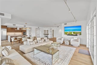 Experience elevated waterfront living in this Intracoastal-front residence within the boutique Mediterranea community. A new standard of waterfront architecture, this move-in-ready home features a private elevator entrance and modern interior designed for both style & comfort. Porcelain floors extend throughout the entire home. Impact windows & doors, built-in walk-in closets, and refined finishes are found throughout. The primary suite enjoys direct water views, complemented by two generous balconies ideal for sunset enjoyment. Additional highlights include two assigned garage parking spaces, a private storage room, pet-friendly living, and private deeded beach access—offering a rare blend of Intracoastal & beachside lifestyle.