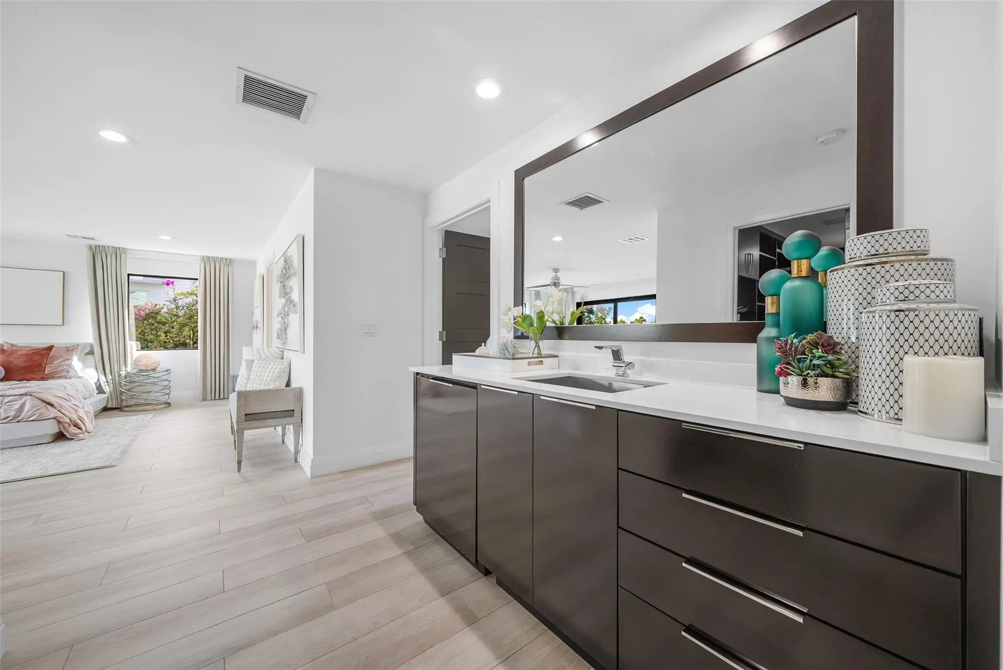 Say hello to PERFECTION!!! This COMPLETELY RENOVATED waterfront home in prestigious Boca Bay Colony is the ultimate blend of luxury and lifestyle, featuring an open floor plan and sliding floor-to-ceiling impact glass that creates seamless indoor-outdoor living. Set on an oversized 0.35-acre CORNER lot with an impressive 135 ft of waterfront, enjoy no fixed bridges, quick ocean access, and a true boater’s paradise. With almost 5,400 sq ft, this home was built for entertaining—complete with a resort-style pool, designer outdoor kitchen, a chef’s kitchen with Wolf & Sub-Zero appliances, a butler’s pantry, two dishwashers, plus a dedicated wine room and stylish wet bar. Just minutes to Mizner Park, Atlantic Ave, and the beach. Move-in ready—A rare GEM! Be the first to make an offer!!!