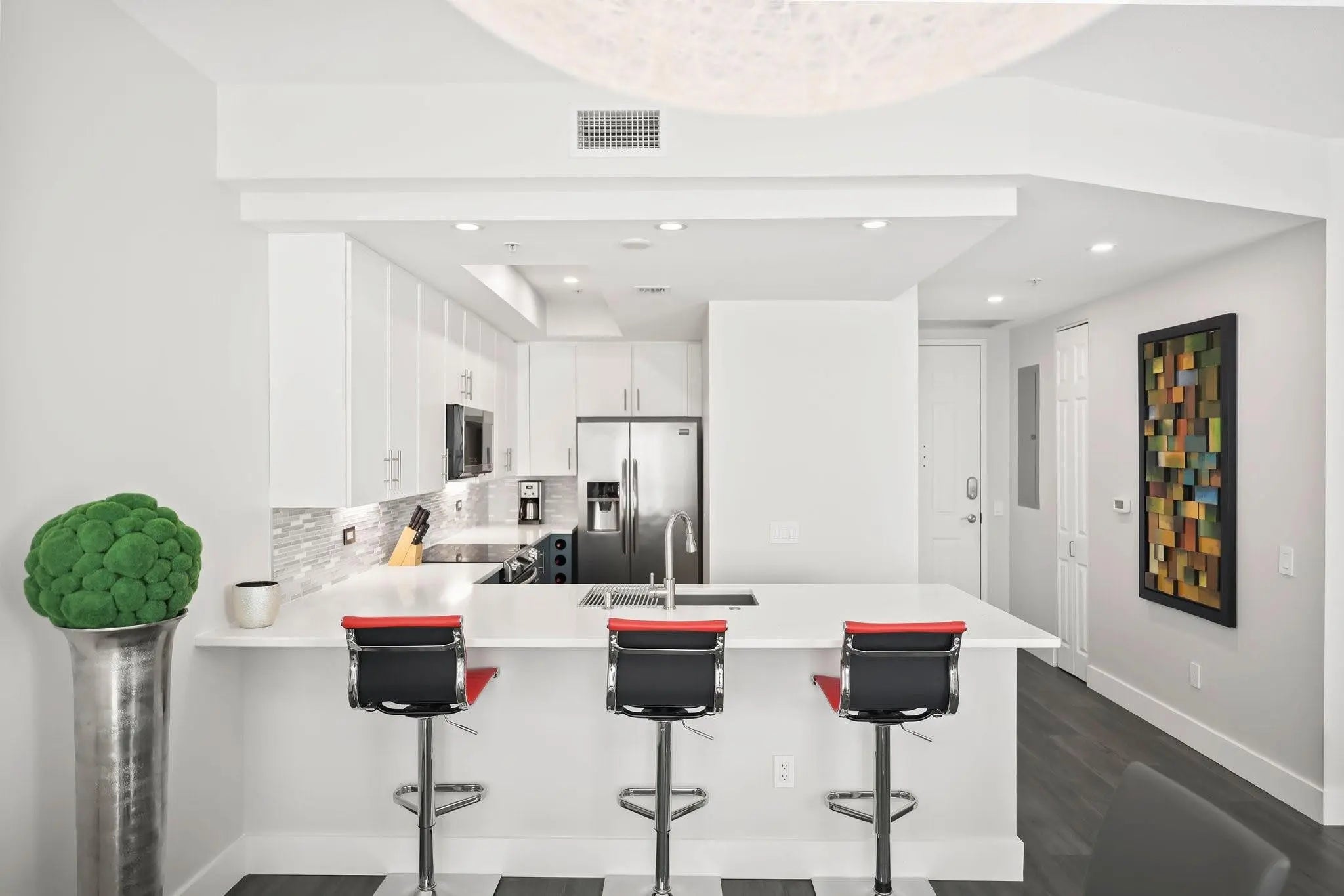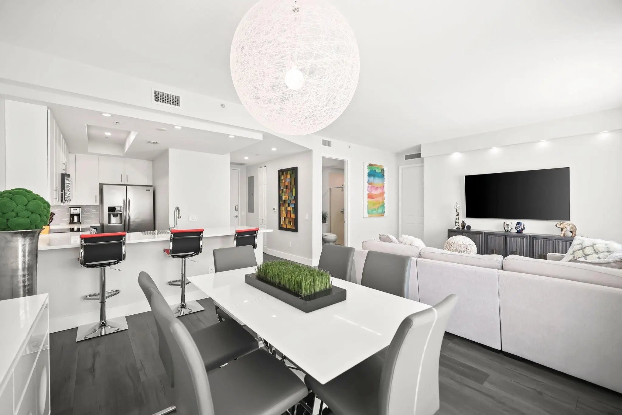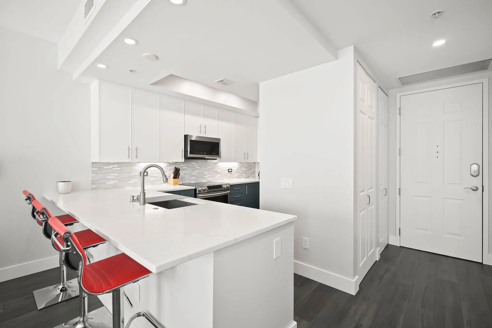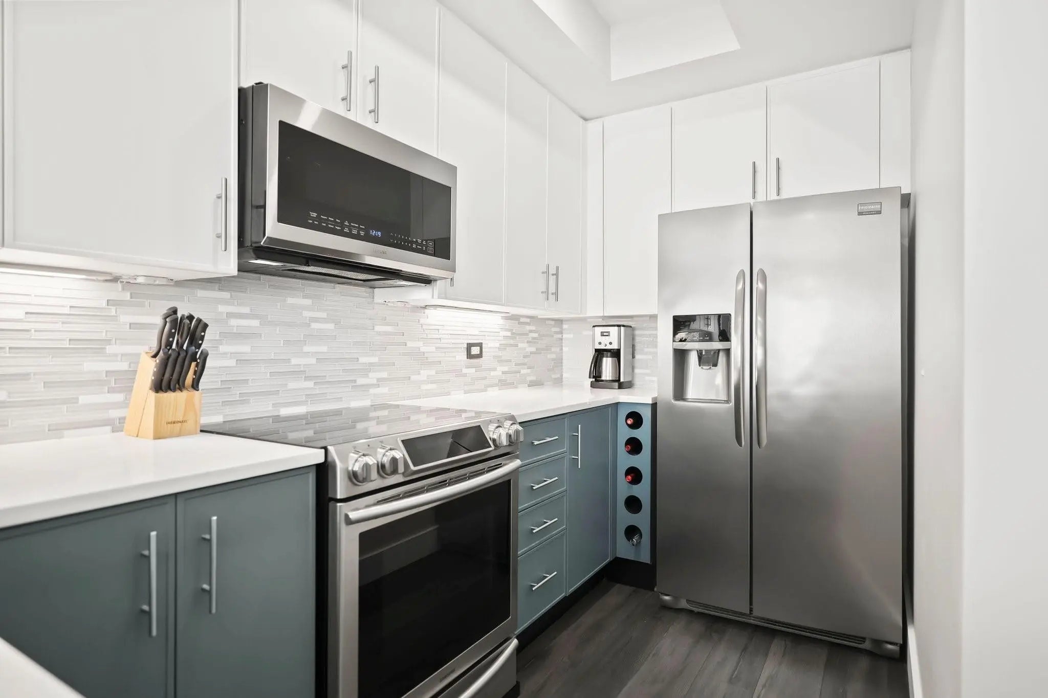 A MUST SEE! Move right in to this tastefully renovated and extra large one bedroom at Wilton Station! Premium vinyl flooring, plantation shutters, solid wood doors and designer fixtures are throughout the space. The stunning kitchen features a chef grade appliance package, designer cabinetry, upgraded quartz and a custom wine bottle holder. A spacious primary suite has electric black out blinds, a built out walk-in closet and duel vanity en-suite with separate tub and shower. A second full bath for guests and two balconies with city skyline views finish off this fantastic unit! Gated Wilton Station is a Resort Style Community with a waterfall pool, clubhouse, gym, riverwalk pier and 24 hour security. Steps from Wilton Dr and minutes to FLL Beach and Las Olas!