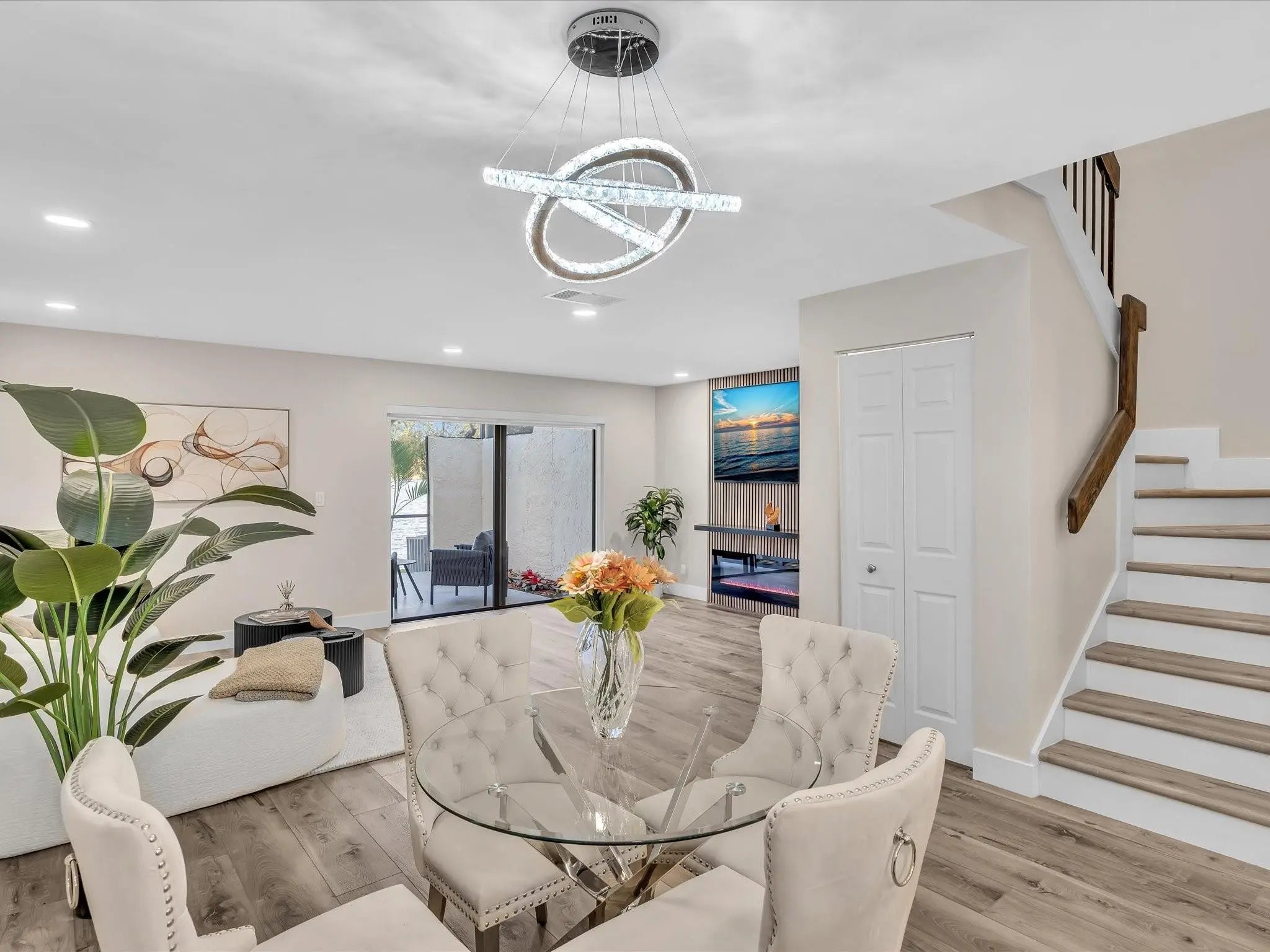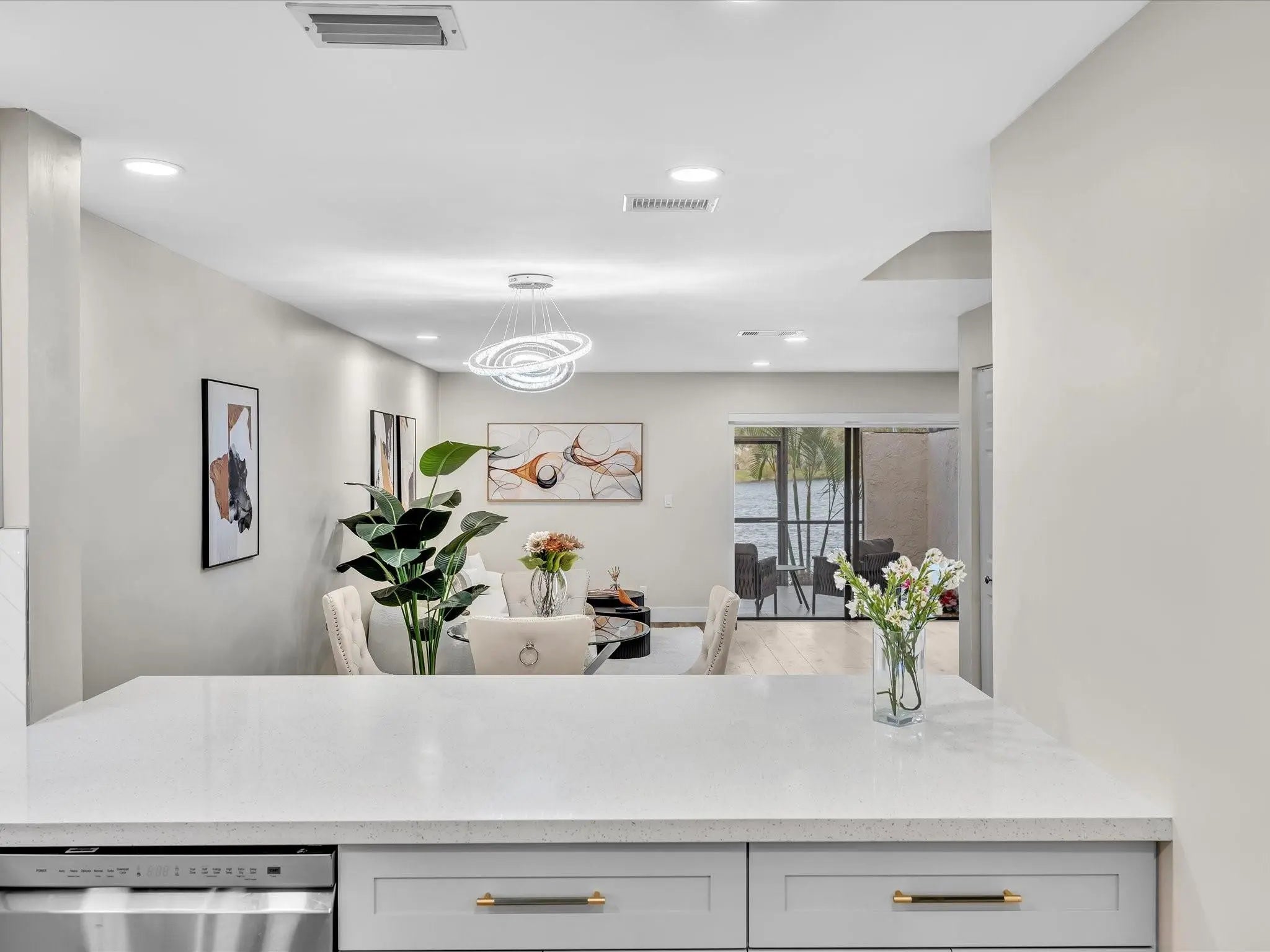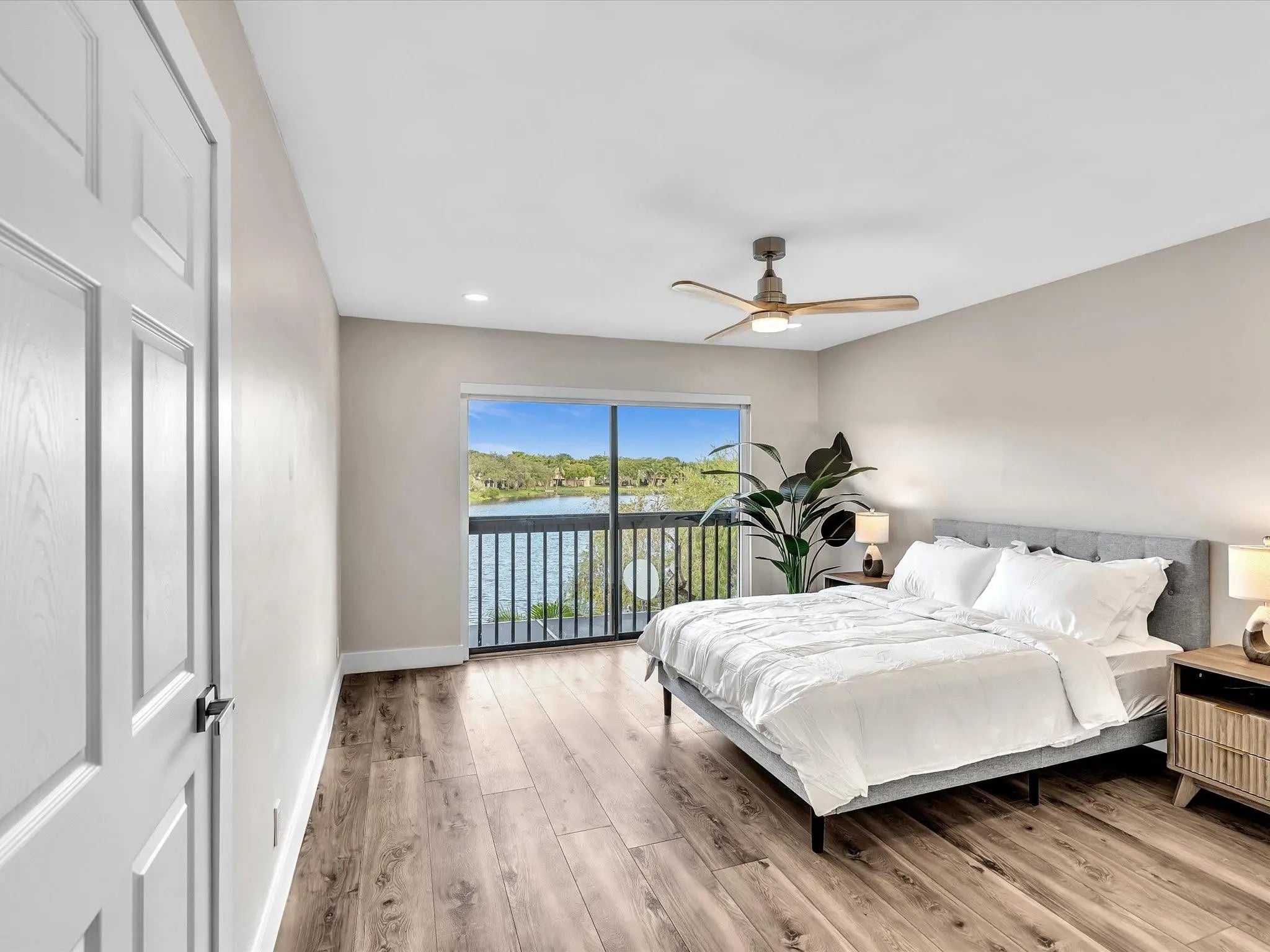 Welcome to Villa Agua, a stunning 3-bedroom, 2.5-bath corner unit townhome featuring impeccable manicured landscaping and breathtaking lake views from all over. Step inside to a beautifully decorated home with new kitchen cabinets, modern appliances, elegant flooring throughout, including the staircase and a beautiful screened, outdoor patio to enjoy the amazing lake views. This model-perfect home is move-in ready, waiting eagerly for its new owner and their toothbrush. Embrace the comfort, style, and tranquility of this exceptional residence — your dream home awaits!