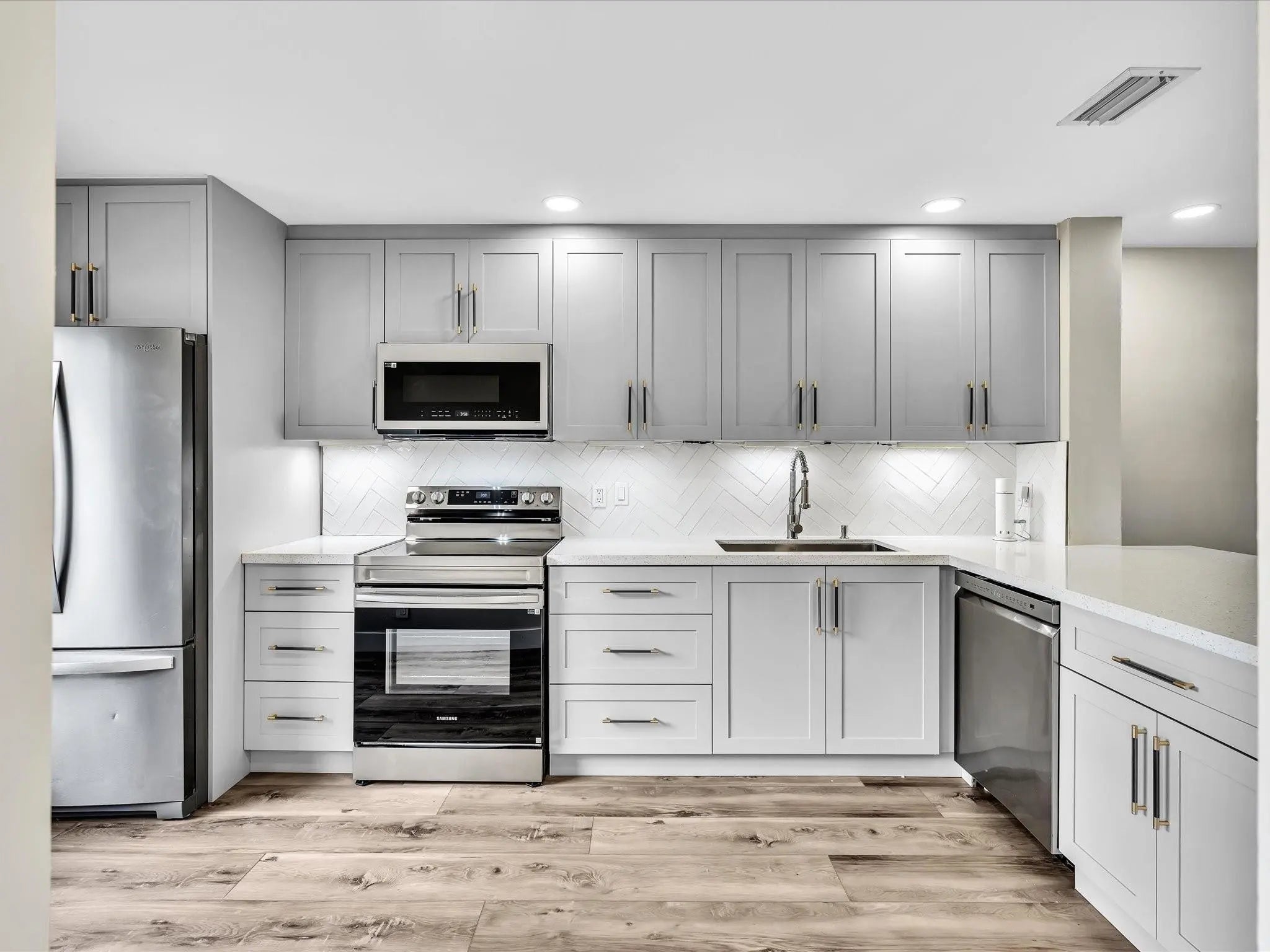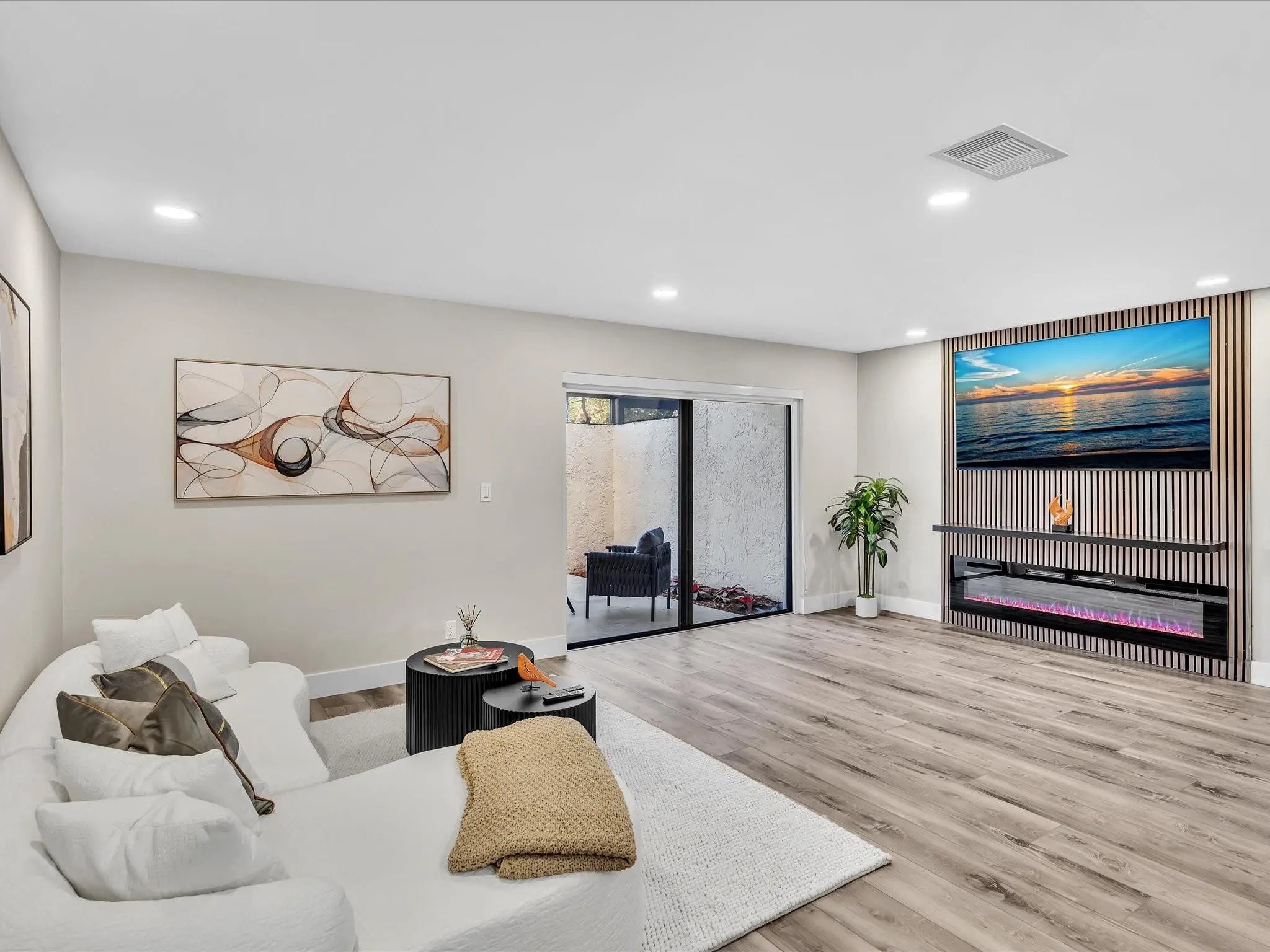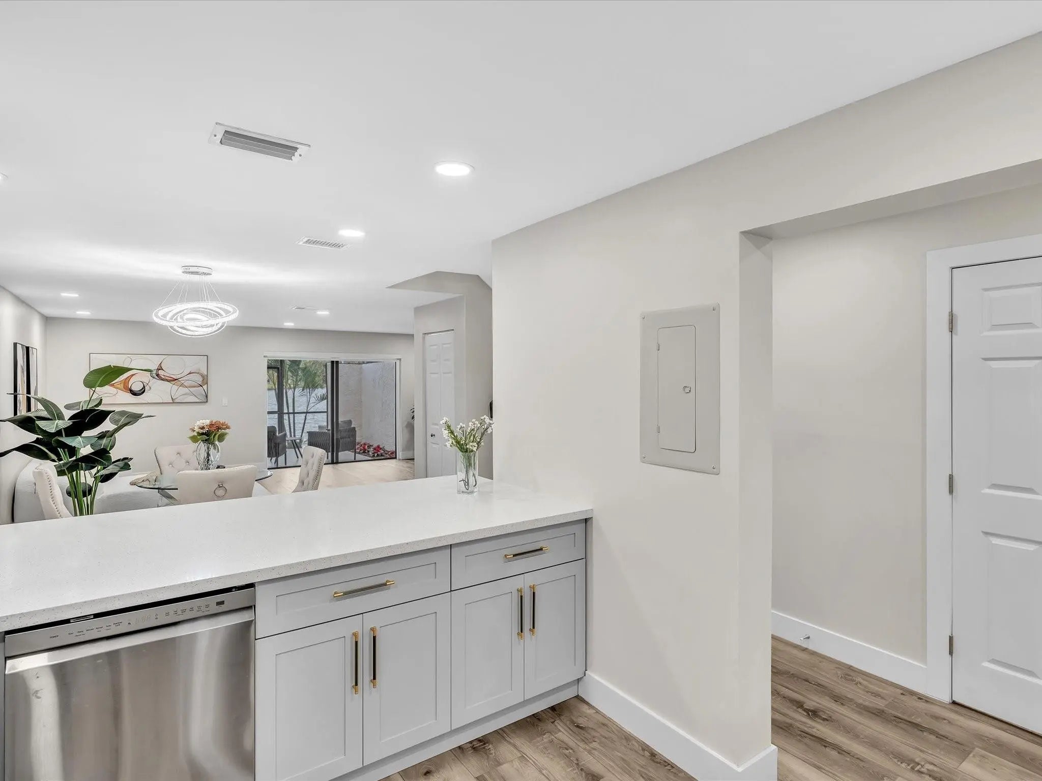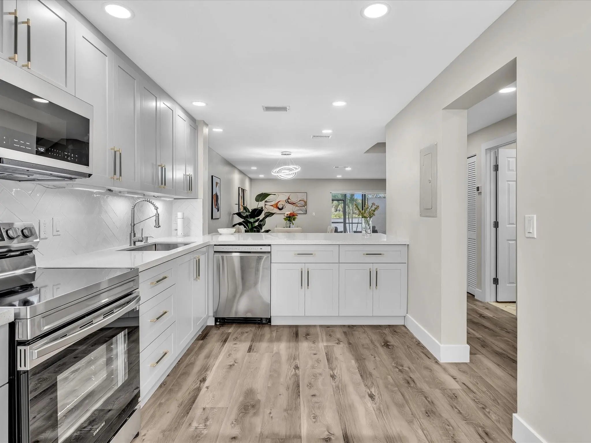 Welcome to Villa Agua, a stunning 3-bedroom, 2.5-bath corner unit townhome featuring impeccable manicured landscaping and breathtaking lake views from all over. Step inside to a beautifully decorated home with new kitchen cabinets, modern appliances, elegant flooring throughout, including the staircase and a beautiful screened, outdoor patio to enjoy the amazing lake views. This model-perfect home is move-in ready, waiting eagerly for its new owner and their toothbrush. Embrace the comfort, style, and tranquility of this exceptional residence — your dream home awaits!