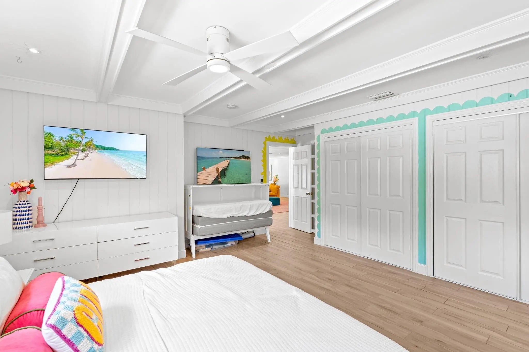 Available as a seasonal rental, this iconic, fully renovated ranch-style home, once owned by Connie Francis, offers a unique blend of history and modern comfort. The residence features dual primary suites, a bright white kitchen with a large island and open-concept design, and multiple living areas ideal for relaxing or entertaining. A private, fenced backyard with low-maintenance turf surrounds a heated saltwater diamond gunite pool, creating a perfect indoor-outdoor retreat. Spa-inspired bathrooms, multiple A/C units, and a brand-new 2024 roof ensure effortless, year-round comfort, making this home an exceptional option for a refined seasonal stay.
