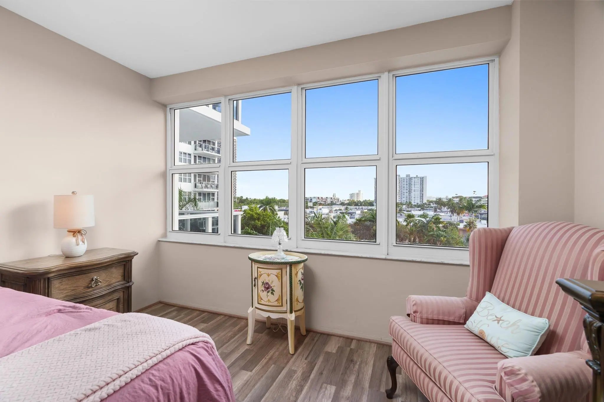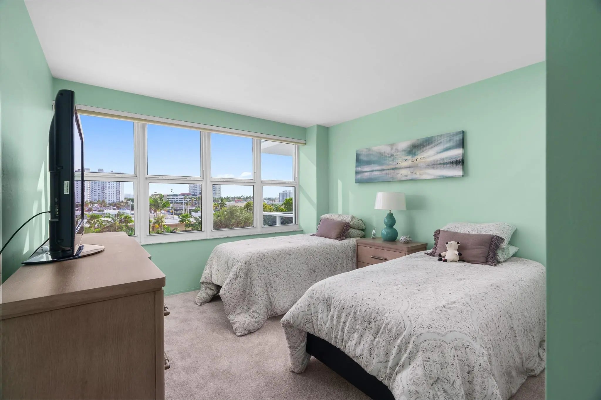 Enjoy the Resort Life at this spacious two bedroom and two bathroom corner apartment at Coral Ridge Towers South - a financially stable 55+ Cooperative offering Affordable Luxury Housing for Seniors. This home has a beautifully updated kitchen and charming mid-century bathrooms and lush resort and intracoastal views. Conveniently located facing the south between the Intracoastal and beautiful Fort Lauderdale Beach. Near shopping and dining and grocery stores. When home you get to enjoy the fitness center, clubhouse, resort landscaping, barbecue area and a heated and chilled pool and the views from your spacious balcony and every window. Cash only, no pets. Cable and Internet Included.