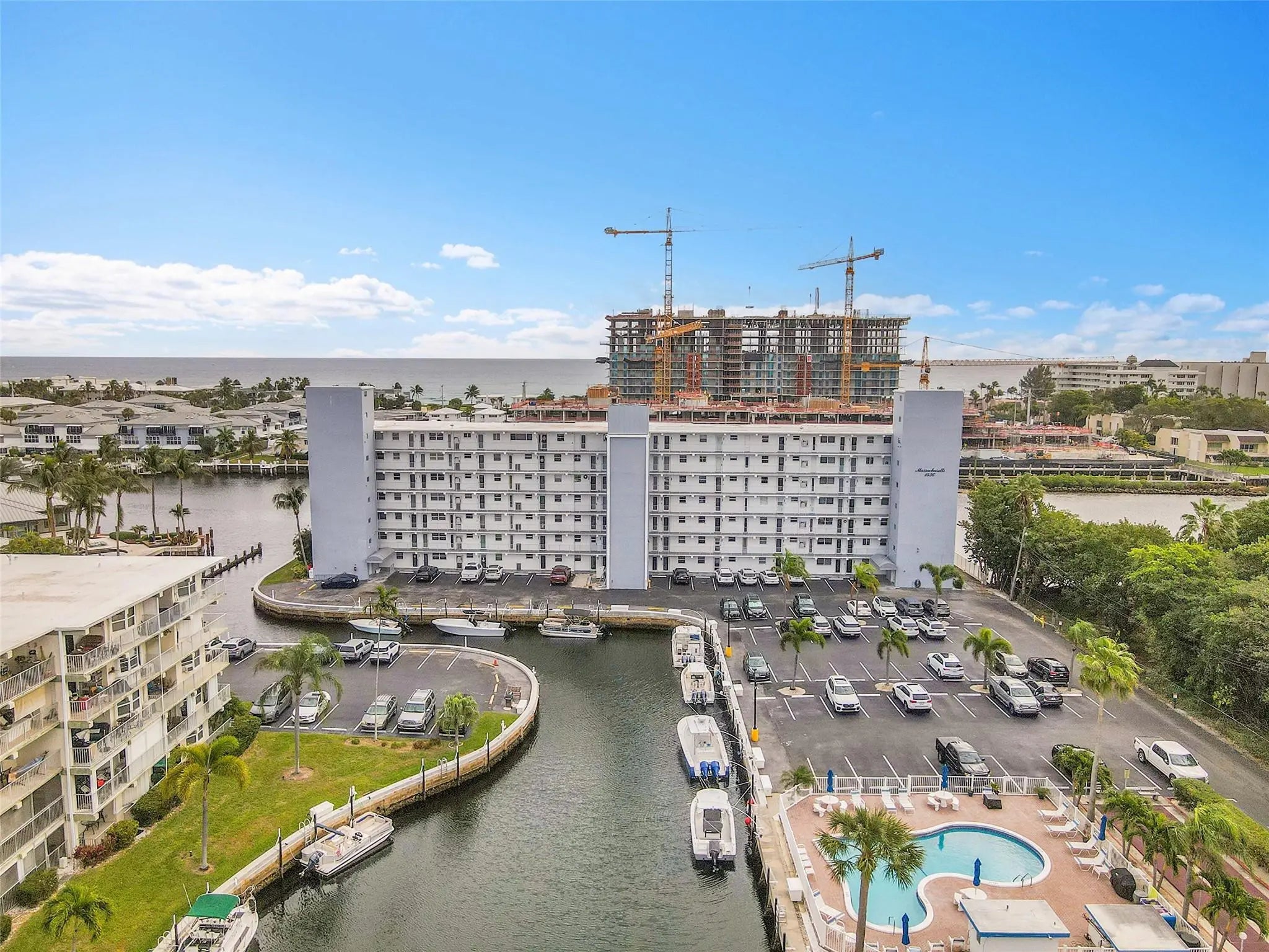 Direct Intracoastal views from this corner condo in desirable Lighthouse Point. This condo features a rare wrap-around balcony, offering seamless indoor-outdoor living with stunning water views. The kitchen offers granite countertops, stainless steel appliances, a brand-new dishwasher, & granite breakfast bar accented by high-hat lighting—ideal for entertaining. Recessed lighting enhances the kitchen area, while the entry welcomes you with matching cabinetry & a granite shelf, perfectly designed for an elegant bar setup. The primary suite offers Intracoastal views & a walk-in closet. A guest bedroom & bath provide comfortable accommodations for visitors. Residents enjoy a waterfront community lifestyle with a pool & boat docks, just minutes from dining, shopping, & beaches.