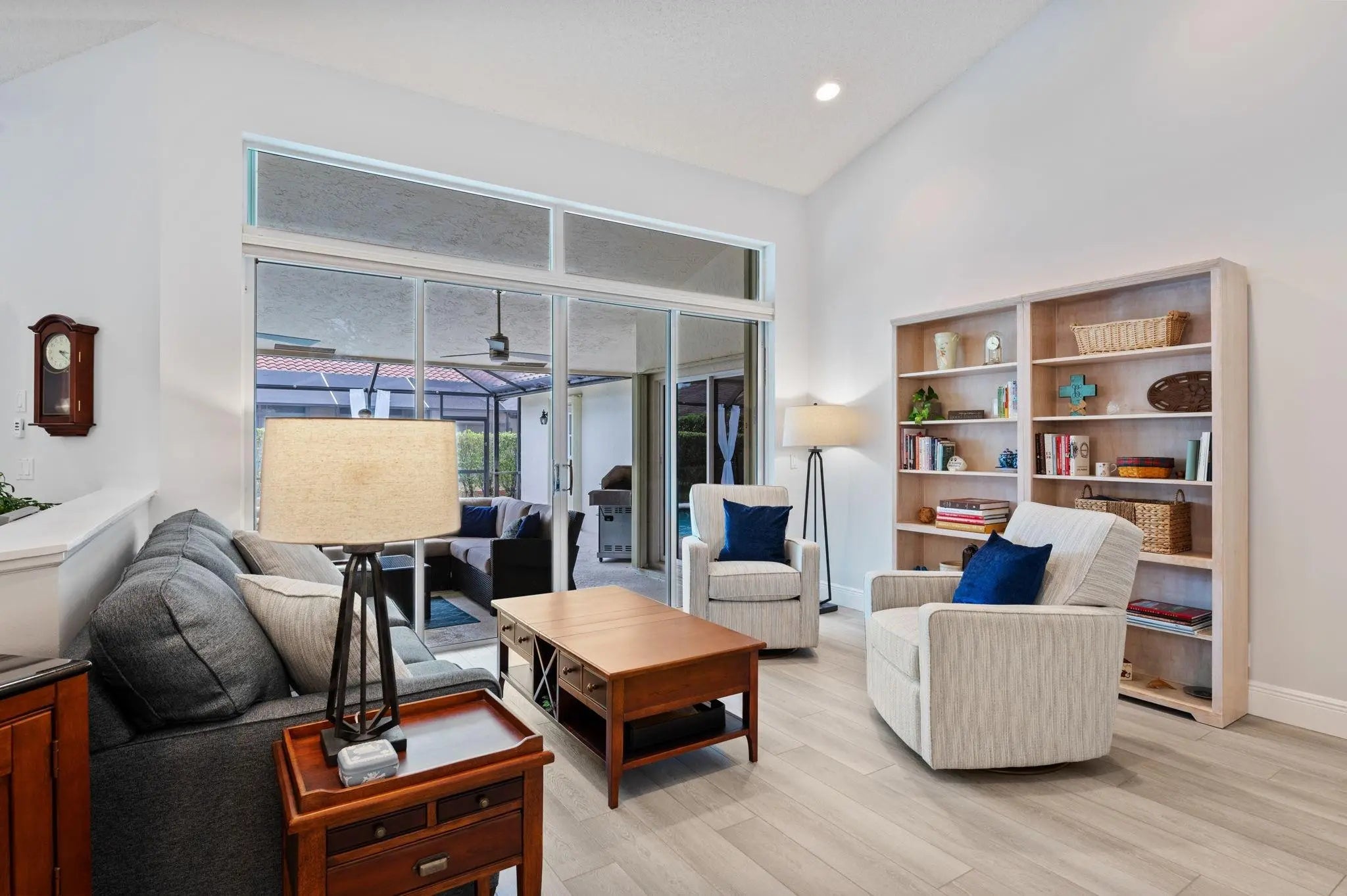 Welcome to this beautifully updated Smart Home featuring luxury vinyl flooring throughout and bright, open living areas filled with natural light. The remodeled kitchen and baths showcase stylish finishes creating a move-in-ready experience. Kitchen features New Refrigerator 2025, Dishwasher 2024, Quartz counter tops, pullouts & soft close cabinets/drawers. New A/C 2020, Water Heater 2019, Accordion Shutters 2019 & exterior painted in 2023. The oversized main bedroom serves as a private sanctuary, complete with a walk-in, storage closet & overlooking the screened solar heated pool. Designed for comfort and convenience, this home blends modern upgrades with everyday functionality. Highly desirable neighborhood with tennis/pickle ball courts, basketball & tot lot. Hurry to this one!!