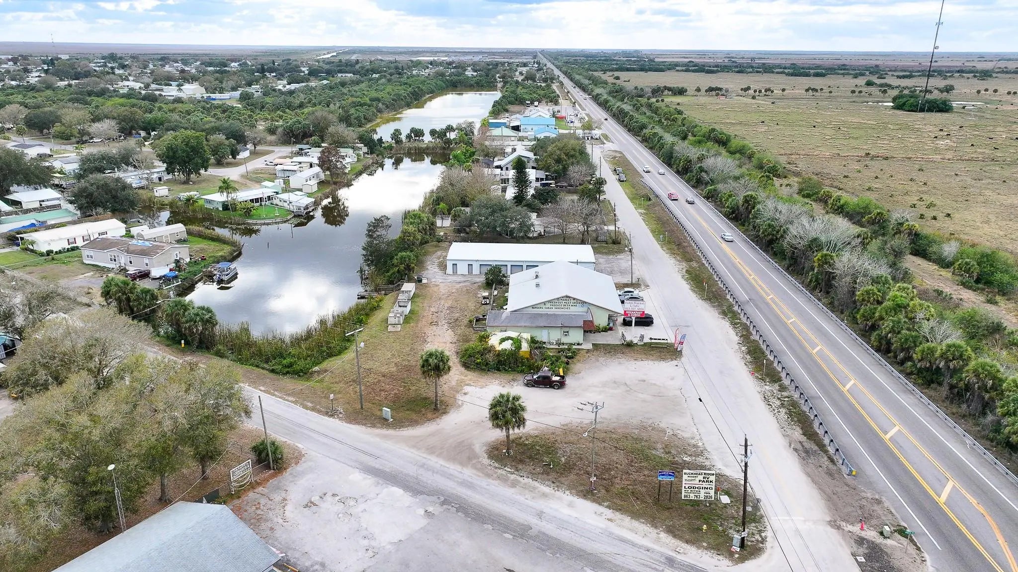 Exceptional Business Opportunity to own a multi use waterfront commercial property located directly on the canal with access to Lake Okeechobee. This unique offering includes 3 waterfront lots, retail store, diner/ restaurant, 22-income producing storage units and 2 on site apartments creating multiple streams of revenue in one investment. The Ridge Market has been a staple in the community since 1976 and is currently operating. Located 1 mile from the Kissimmee River and the proposed Bass Pro Development on 78W. Call the listing agent for your private showing today.