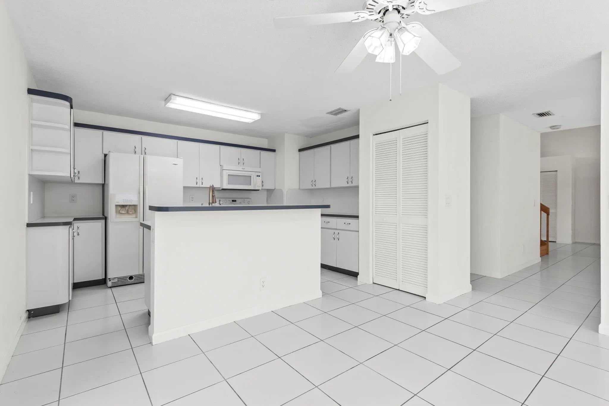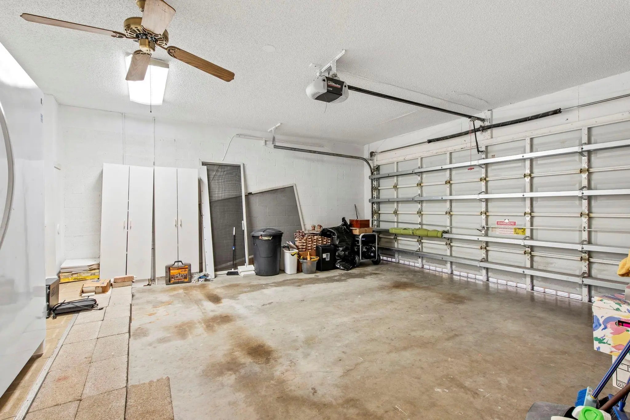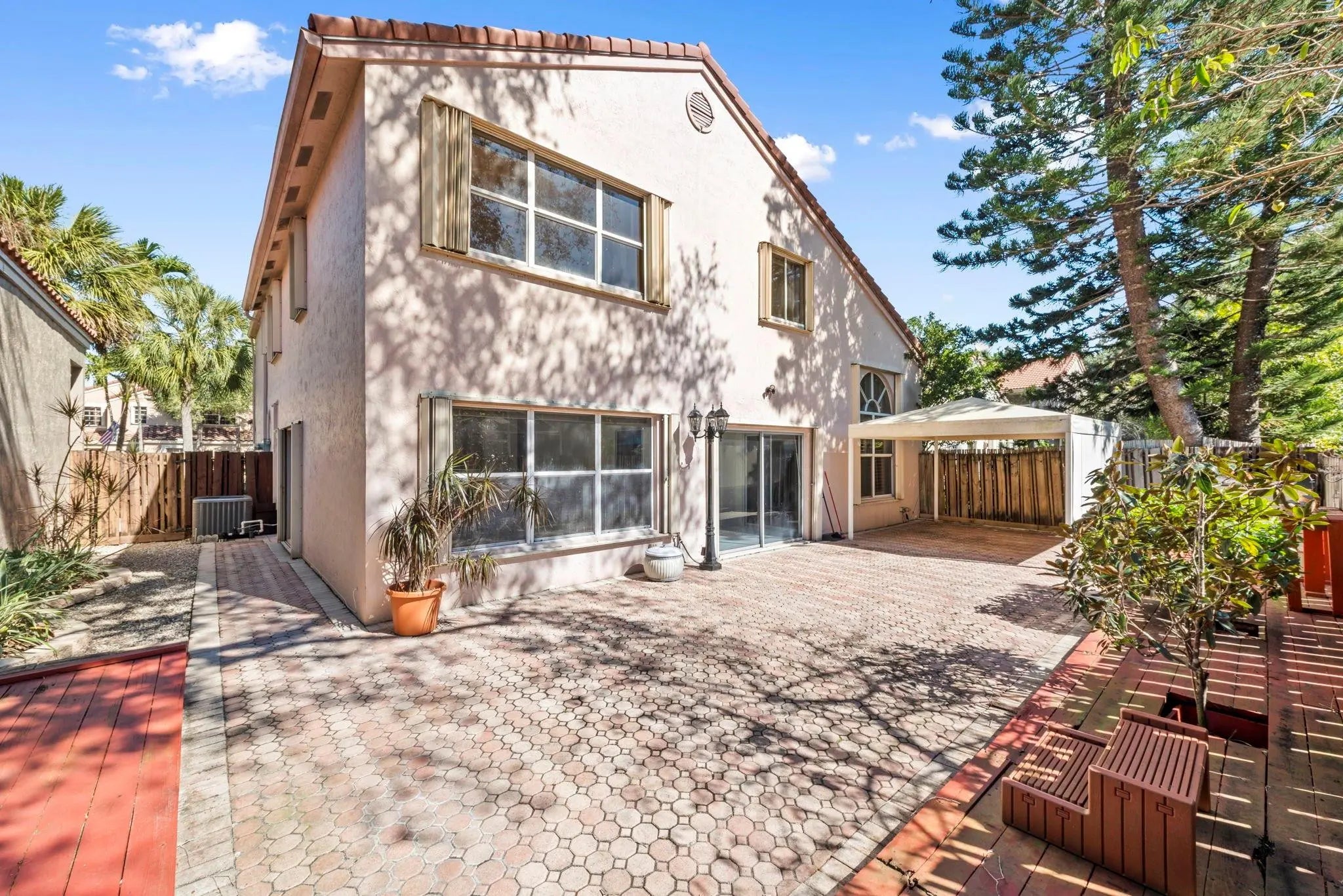 This light-filled home welcomes you into a spacious living room with soaring, voluminous ceilings and a freshly painted interior. Offering 3 bedrooms, 2.5 baths, plus an office/den that can easily convert into a 4th bedroom. The layout is both flexible and functional. Enjoy abundant parking with a beautifully pavered driveway, entry walkway, and fenced backyard—perfect for low-maintenance outdoor living with exceptional privacy. Additional highlights include accordion shutters, ample storage throughout, and an interior laundry room with newer washer and dryer. Located in a beautiful community close to the lakefront pool and city park, this home blends comfort, convenience, and lifestyle.
