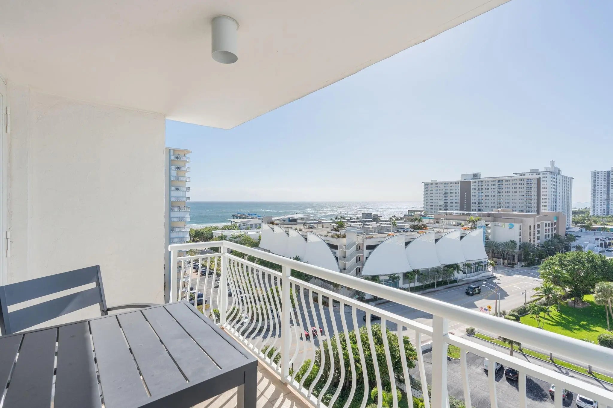 Unit is NOT VIRTUALLY STAGED. Most furniture can stay with the unit. Discover your dream coastal retreat at this stunningly remodeled apartment located just a block from the beach and right by the Pompano Beach Pier. Enjoy breathtaking ocean views from your private balcony and the convenience of being steps away from local restaurants. This beautifully remodeled home features elegant marble floors, updated bathrooms with granite countertops and glass shower doors. The primary bathroom has dual sinks. The remodeled kitchen has granite countertops, breakfast bar and stainless steel appliances. Enjoy interior lighting throughout the apartment, impact windows and door with power-operated blinds for added convenience. The two walk-in closets provide ample storage.