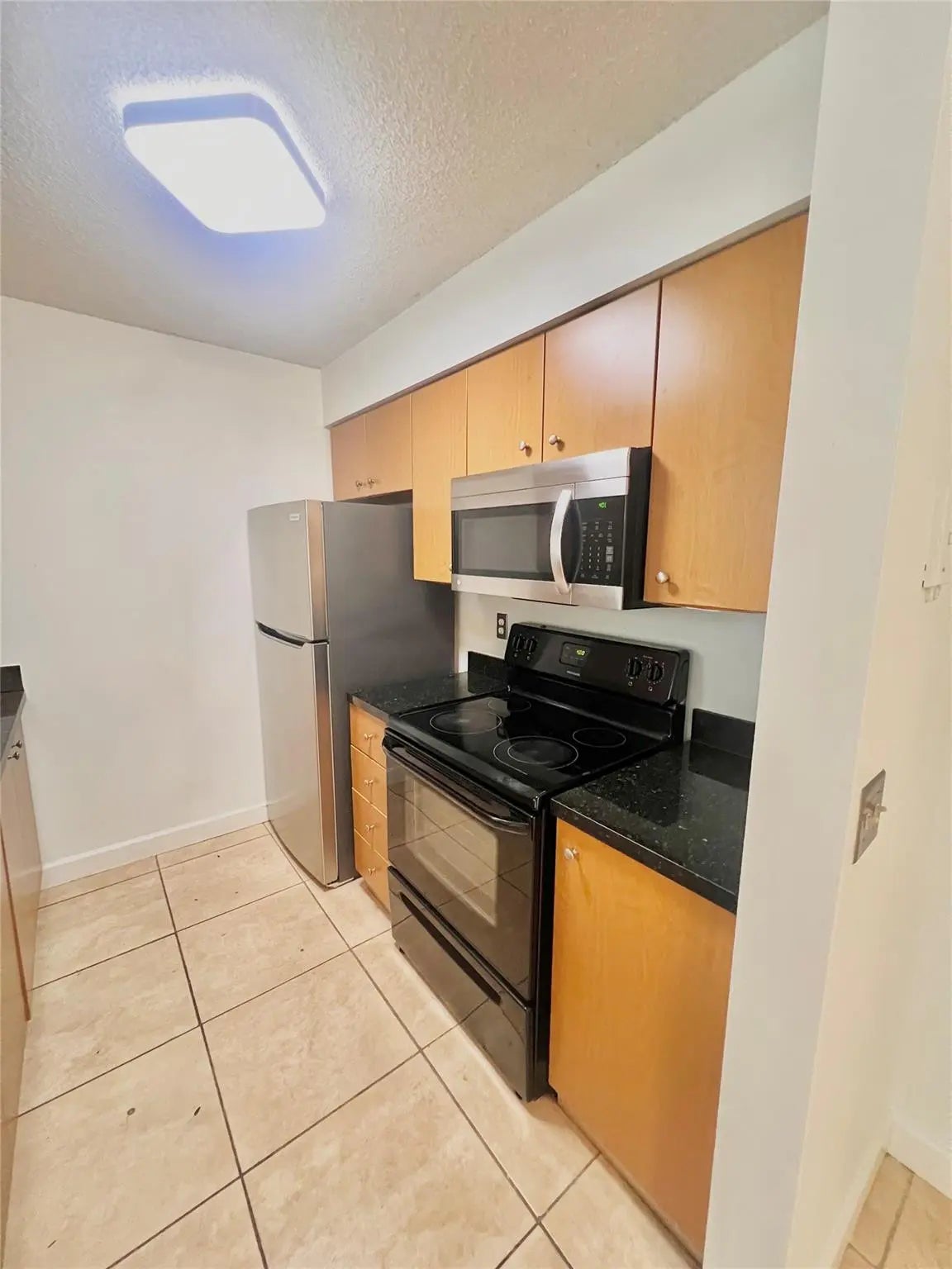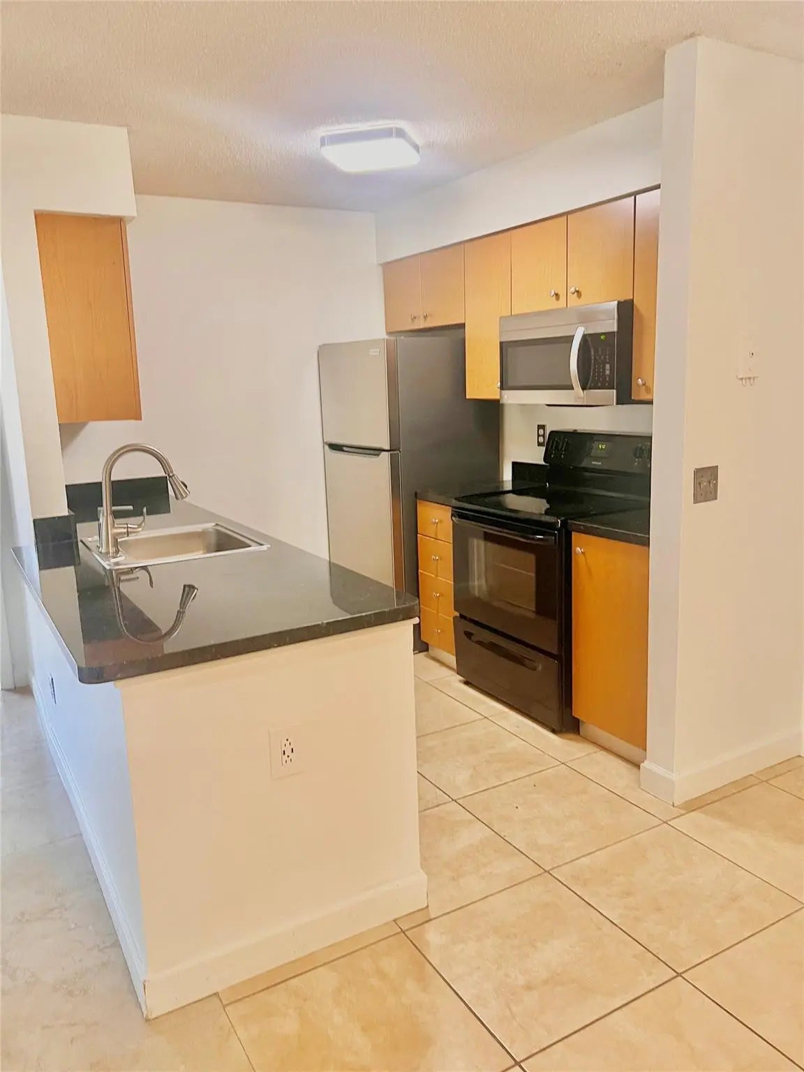 Vacant. all tile , granite countertop, 2 parking spaces, accordion shutters.