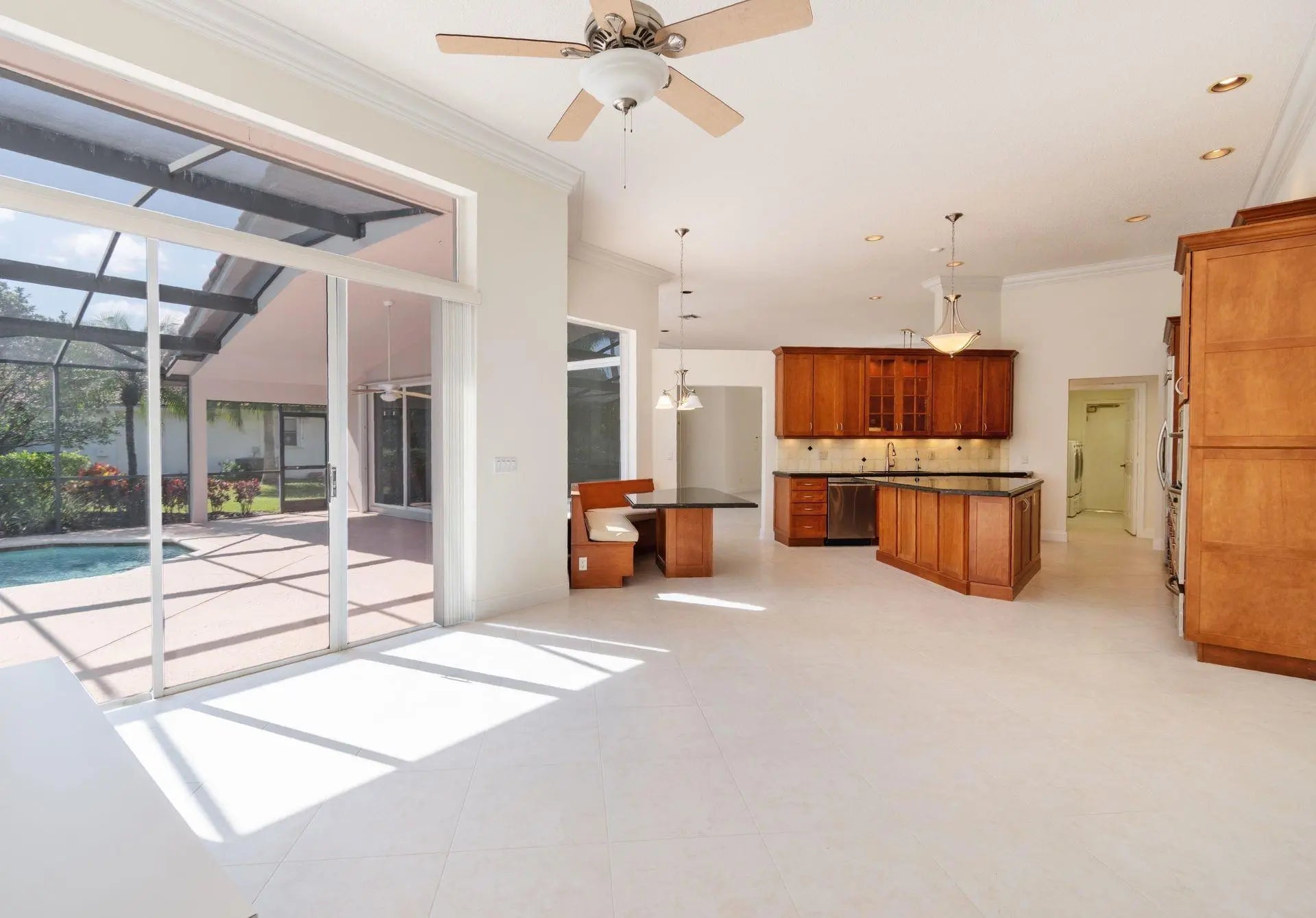 Beautiful pool home in The Lakes, located on an oversized lakefront lot with peaceful and private water views in a gated community offering a park, community pool, and soccer field. This one-story residence features a 2-car garage, new roof, and accordion shutters, and offers 4 bedrooms plus an office and 3 full bathrooms. Tile flooring throughout all living areas and new laminate wood flooring in all bedrooms. Bathrooms have been partially renovated with white cabinetry/doors and quartz countertops. The kitchen features wood cabinets, stainless steel appliances, a large island, and a breakfast nook. Walking distance to shops with easy access to I-75. Very well maintained and move-in ready.