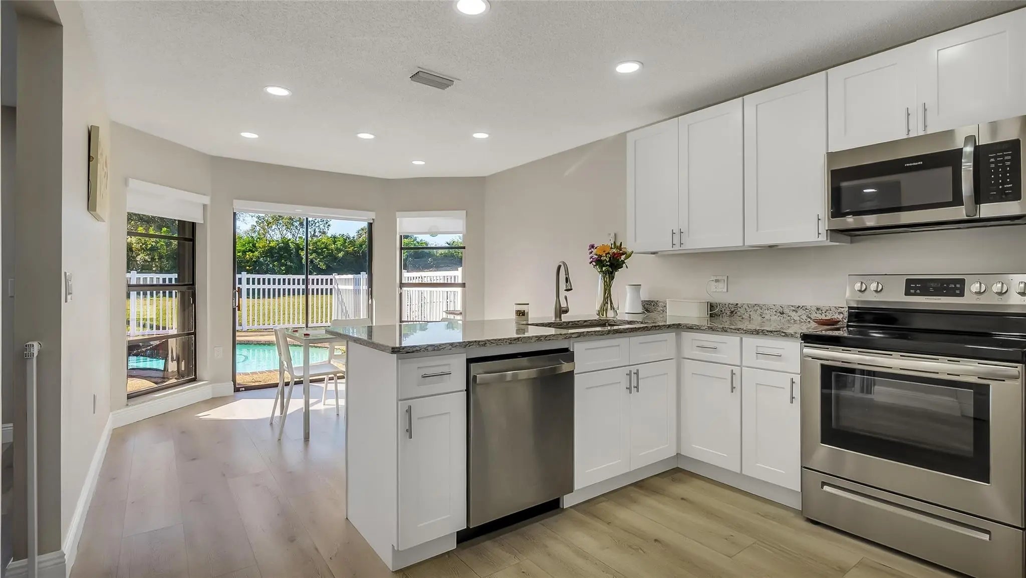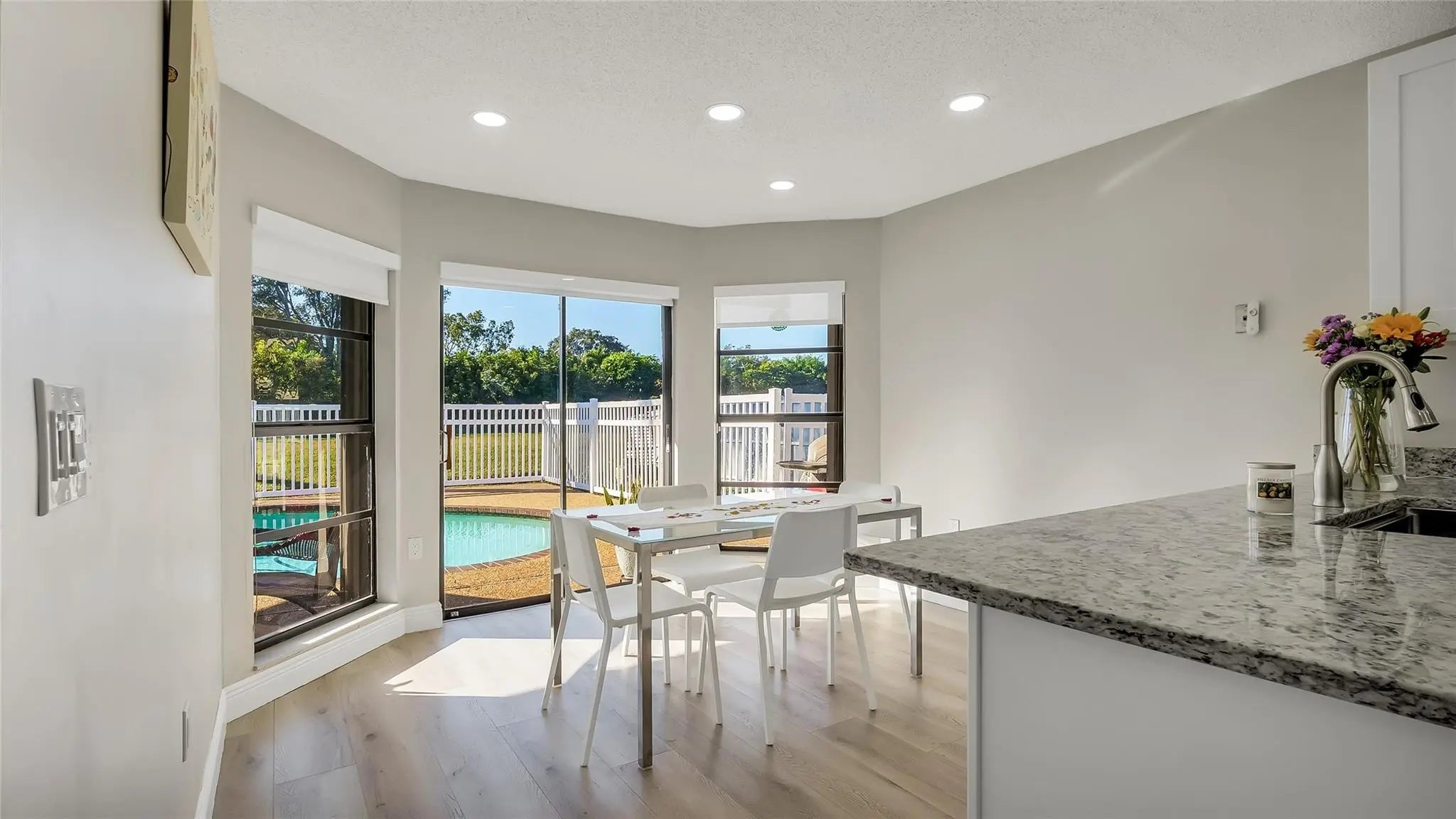 Beautiful 4bed, 2bath pool home w/1-car garage located in fantastic Bonaventure neighborhood zoned for A+ schools. Move-in-ready home features updated kitchen w/granite counters, pantry, Frigidaire SS appliances, plus new laminate flooring throughout. Fully fenced, private pool w/water views,& covered patio perfect for entertaining/relaxing year-round. Residents have access to the highly sought-after Bonaventure Town Center Club, offering 2 pools, fitness center, fitness & lifestyle classes, tennis & pickleball courts, indoor bowling, basketball/skating rink, billiards, business center, playgrounds & summer & holiday programs. 2021 A/C, 2023 Washer & Dryer in Garage, 2024 Water Heater, updated plumbing, new storm rated garage door & accordion hurricane shutters for full insurance discount.