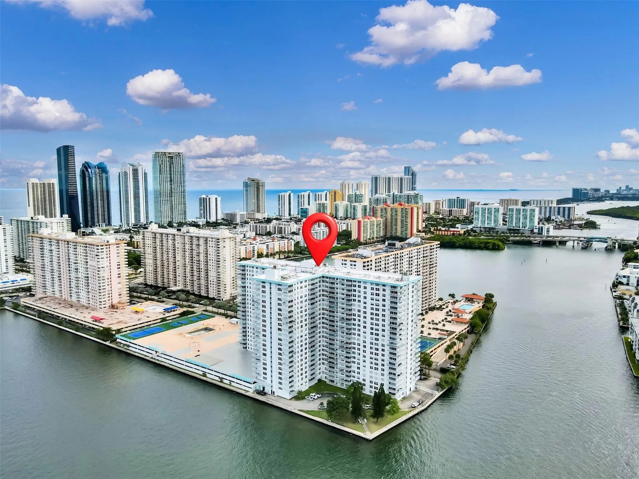 Enjoy stunning direct Intracoastal water views from this spacious 2 bedroom, 2 bathroom residence in desirable Winston Towers 500. Offering 1,488 SF of well-designed living space, this bright condo features split bedrooms, tile floors, generous room sizes, abundant storage, and a flowing layout for everyday living and entertaining. Sold partially furnished for added convenience. Ideally located just minutes from the beach, premier shopping, dining, and everyday essentials. A fantastic opportunity to own a waterfront condominium with abundant recreation facilities in the heart of Sunny Isles Beach! Please note that HOA does not permit corporate buyers or leasing of units.