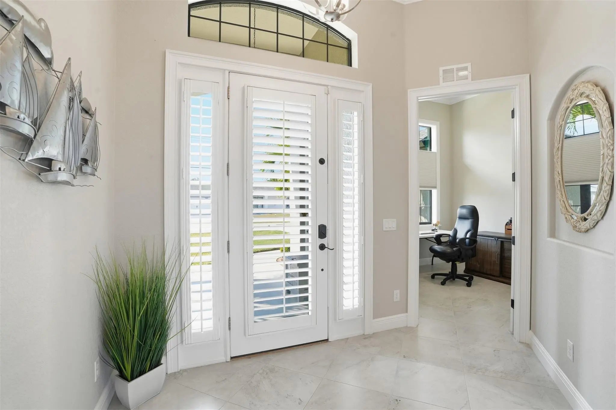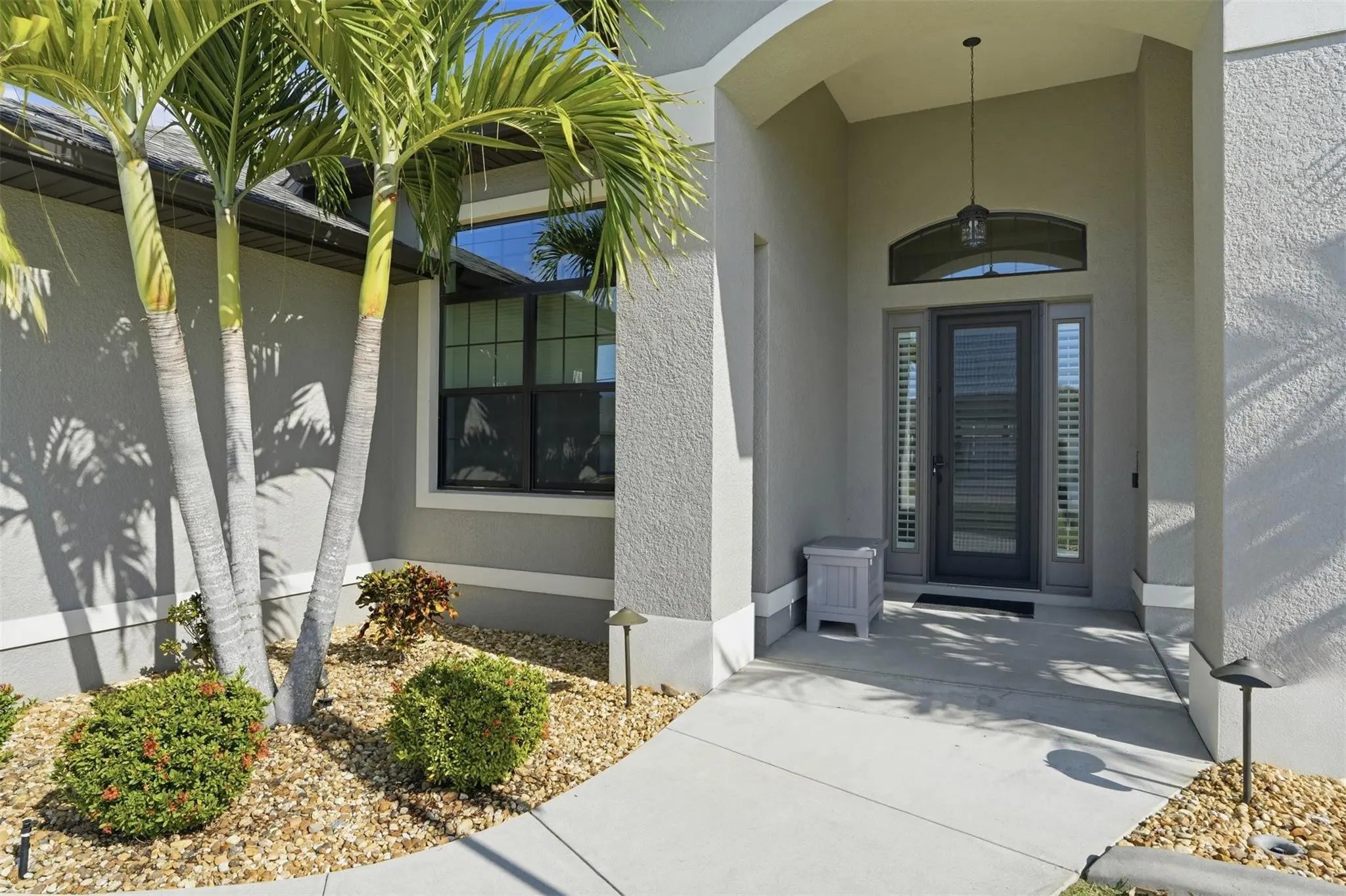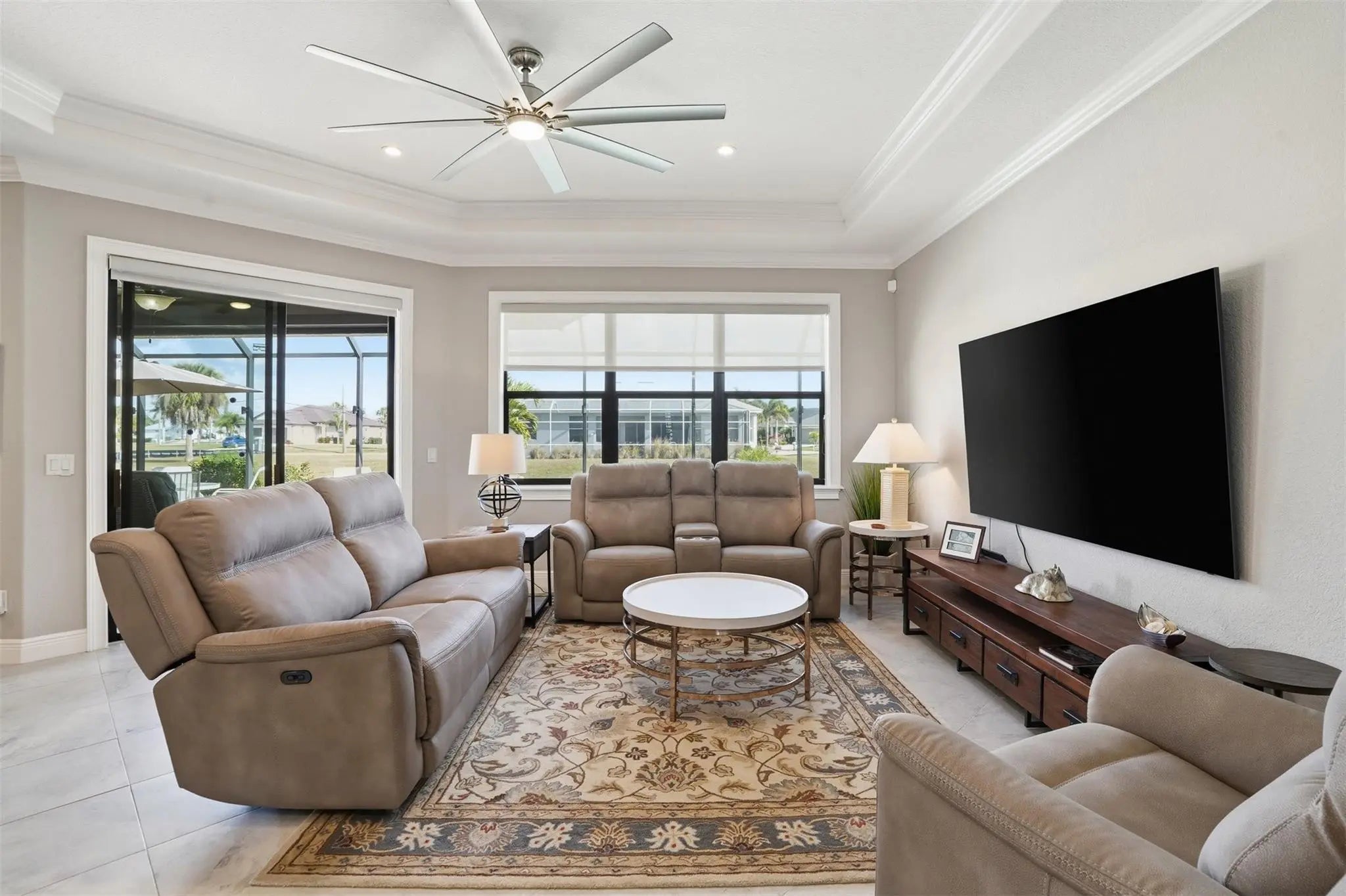 IMMACULATE, FULLY TURNKEY/FULLY FURNISHED luxury home with extensive high-end upgrades throughout. This meticulously maintained residence has been exceptionally cared for and is truly move-in ready, offering refined finishes, modern systems, and designer furnishings that elevate every space. Interior features include crown molding throughout, elegant window casings, and 5 ¾-inch designer baseboards, complemented by soaring ceilings ranging from approximately 9.4 feet to 14 feet, creating a bright and expansive feel. To add even more elegance, all doors in the home are 8 feet high! The expansive lanai is designed for entertaining and relaxation, featuring a high-end outdoor kitchen with a Cal Flame grill and professional exhaust system, making it a rare and exceptional setup. IMMACULATE, FULLY TURNKEY/FULLY FURNISHED luxury home with extensive high-end upgrades throughout. This meticulously maintained residence has been exceptionally cared for and is truly move-in ready, offering refined finishes, modern systems, and designer furnishings that elevate every space. Interior features include crown molding throughout, elegant window casings, and 5 ¾-inch designer baseboards, complemented by soaring ceilings ranging from approximately 9.4 feet to 14 feet, creating a bright and expansive feel. To add even more elegance, all doors in the home are 8 feet high! The home is tastefully styled with contemporary décor, making it adaptable to virtually any design preference. Custom plantation shutters add both style and functionality. The kitchen and living areas are equipped with premium LG appliances, all approximately only a few years old, and the home is being offered fully furnished with high-end pieces, including an 85-inch 8K Samsung television, providing true turnkey convenience. Outdoor living is a standout feature of this property. The expansive lanai is designed for entertaining and relaxation, featuring a high-end outdoor kitchen with a Cal Flame grill and professional exhaust system, making it a rare and exceptional setup. The pool area is enhanced by ambient outdoor lighting, a brand-new Hayward pool pump, and a pool heater installed just a few years ago, ensuring comfort and efficiency year-round. This home is exceptionally well-equipped for storm protection and security, including Impact-rated front windows, Accordion and roll-down hurricane shutters, and 13 Ring security cameras for comprehensive coverage. Additional upgrades include a whole-house water softener and a five-filter reverse osmosis water system, providing superior water quality throughout the home. A full irrigation system supports beautifully maintained landscaping. With 10-foot ceilings in the 3-car garage, you have maximum storage capabilities. Ideally located near multiple golf courses, marinas, shopping, dining, and major commuter routes, this property offers both luxury living and everyday convenience. Every detail has been thoughtfully considered, making this one of the most pristine, well-appointed, and turnkey homes available in the area. A rare opportunity to own a fully furnished, extensively upgraded, and impeccably maintained home—schedule your private showing today.