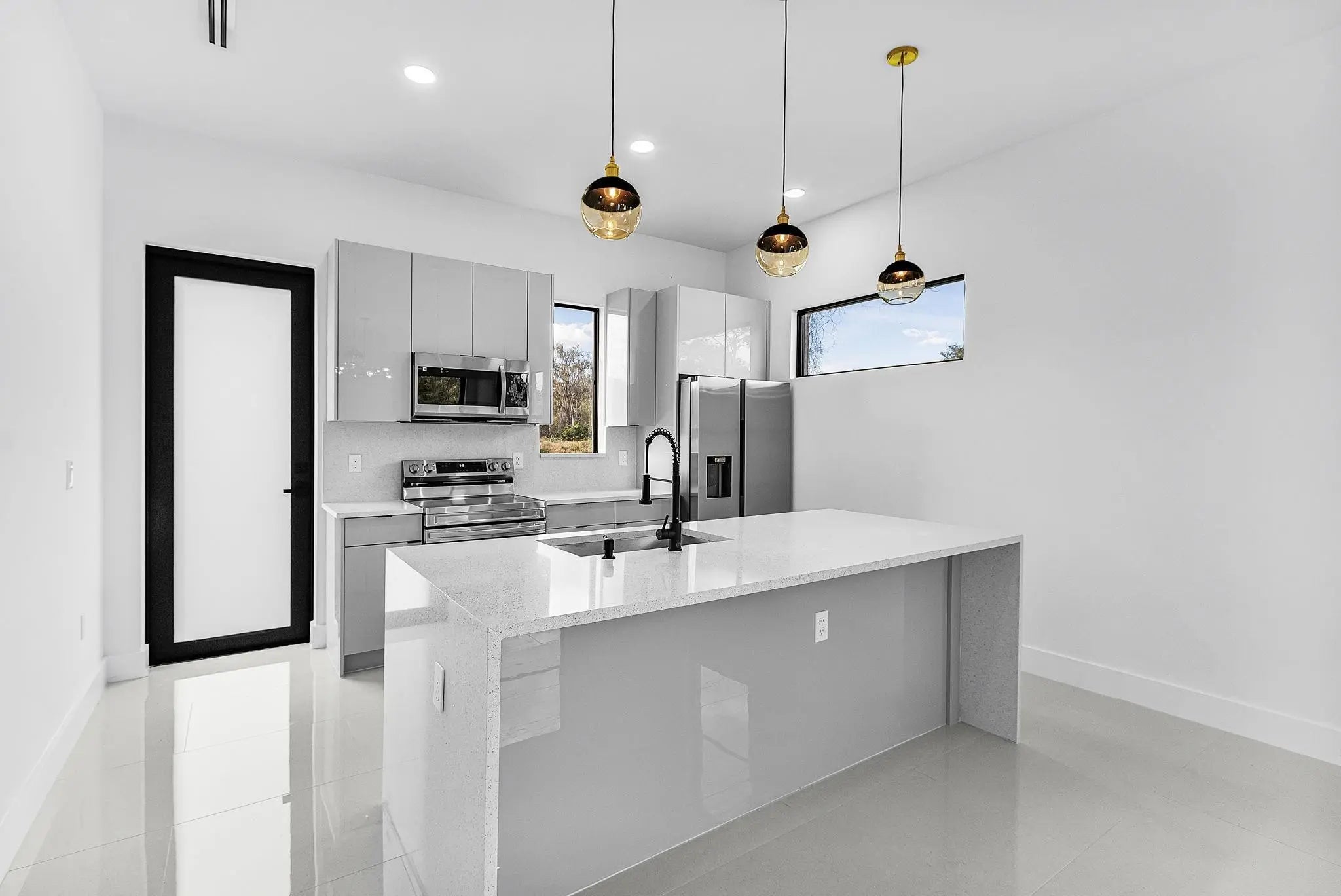 Brand-new construction! This beautifully crafted home, 3 bedroom, 2 bathroom & 1 car garage sits on a spacious 1/4 acre lot. Every detail curated with premium style & lasting quality. The oversized luxury tile flooring flows throughout, as impact-rated windows fill interior with natural light. High-end modern kitchen displays custom cabinetry w/soft-close doors, waterfall-edge quartz countertops, & Stnls Steel Appliances. The open-concept floor plan allows for great flow between kitchen, dining & living areas, making it ideal for entertaining or relaxing at home. Each oversized spa-like bathroom displays custom-designed tile work & cabinetry w/quartz vanity tops. Spacious backyard with canal view to enjoy & relax. With NO Homeowners Association, you can enjoy flexibility & peace of mind.